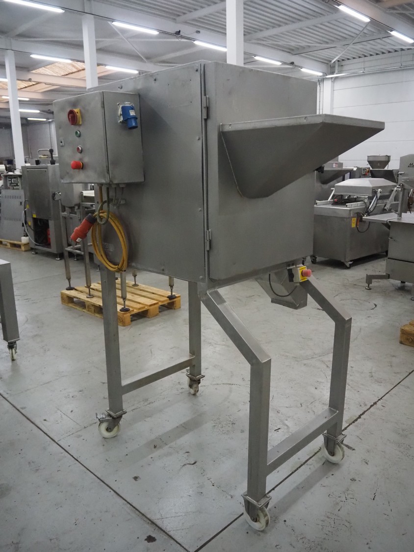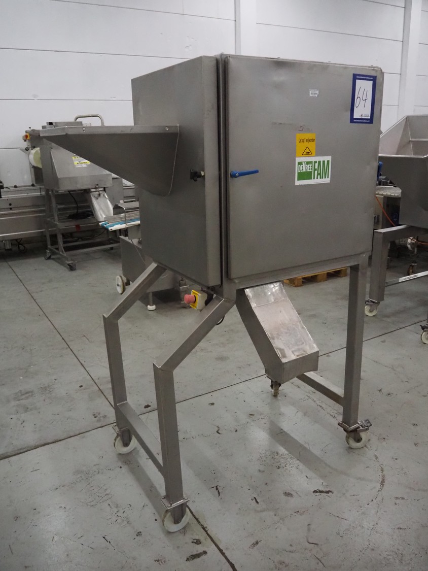 FAM mobile vegetable slicer, model: STD 3D, cutting set: 10 mm x 10 mm, total dimensions: 1420 mm x 980 mm x 1880 mm.