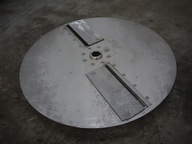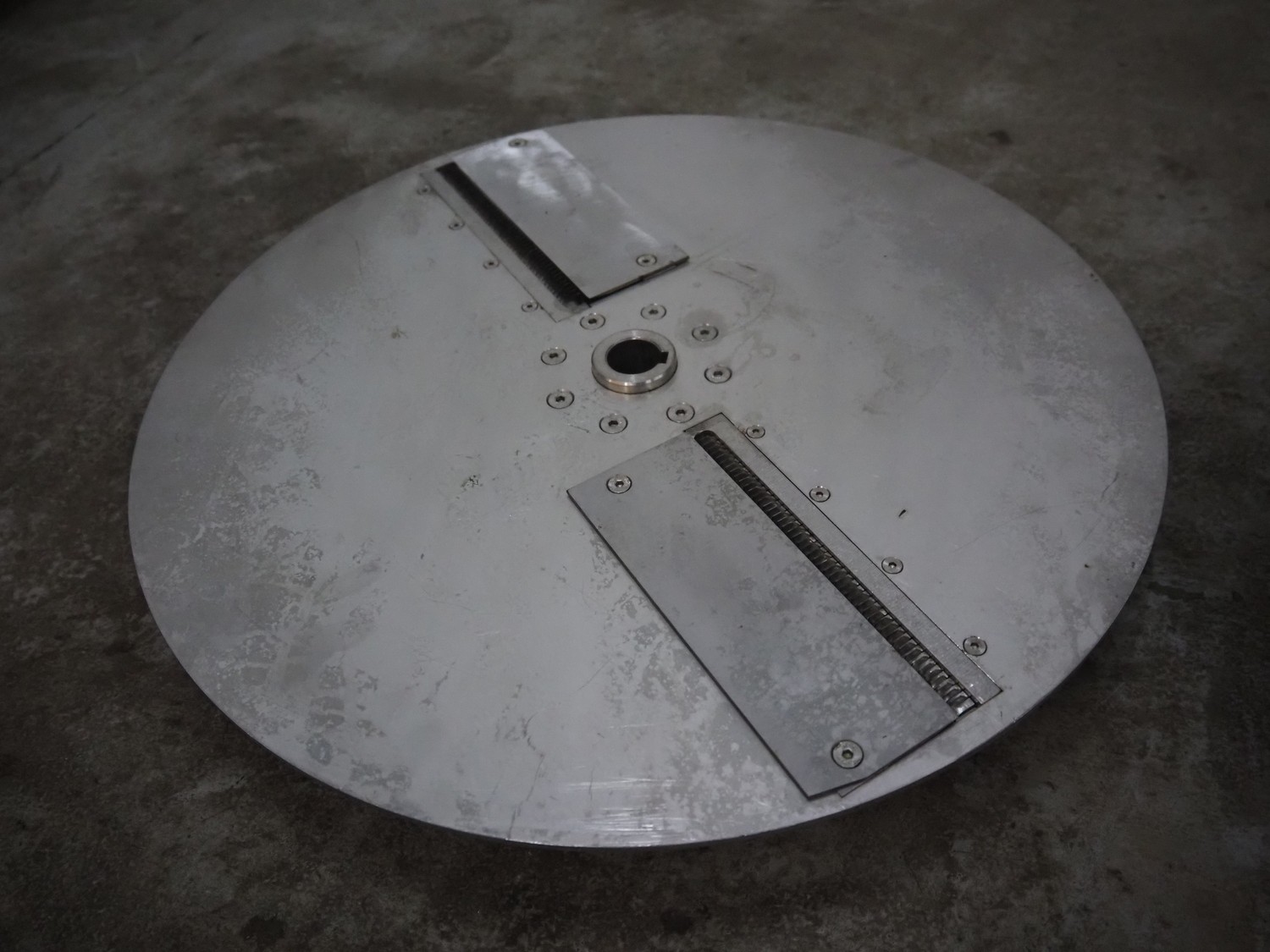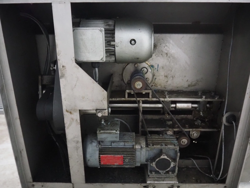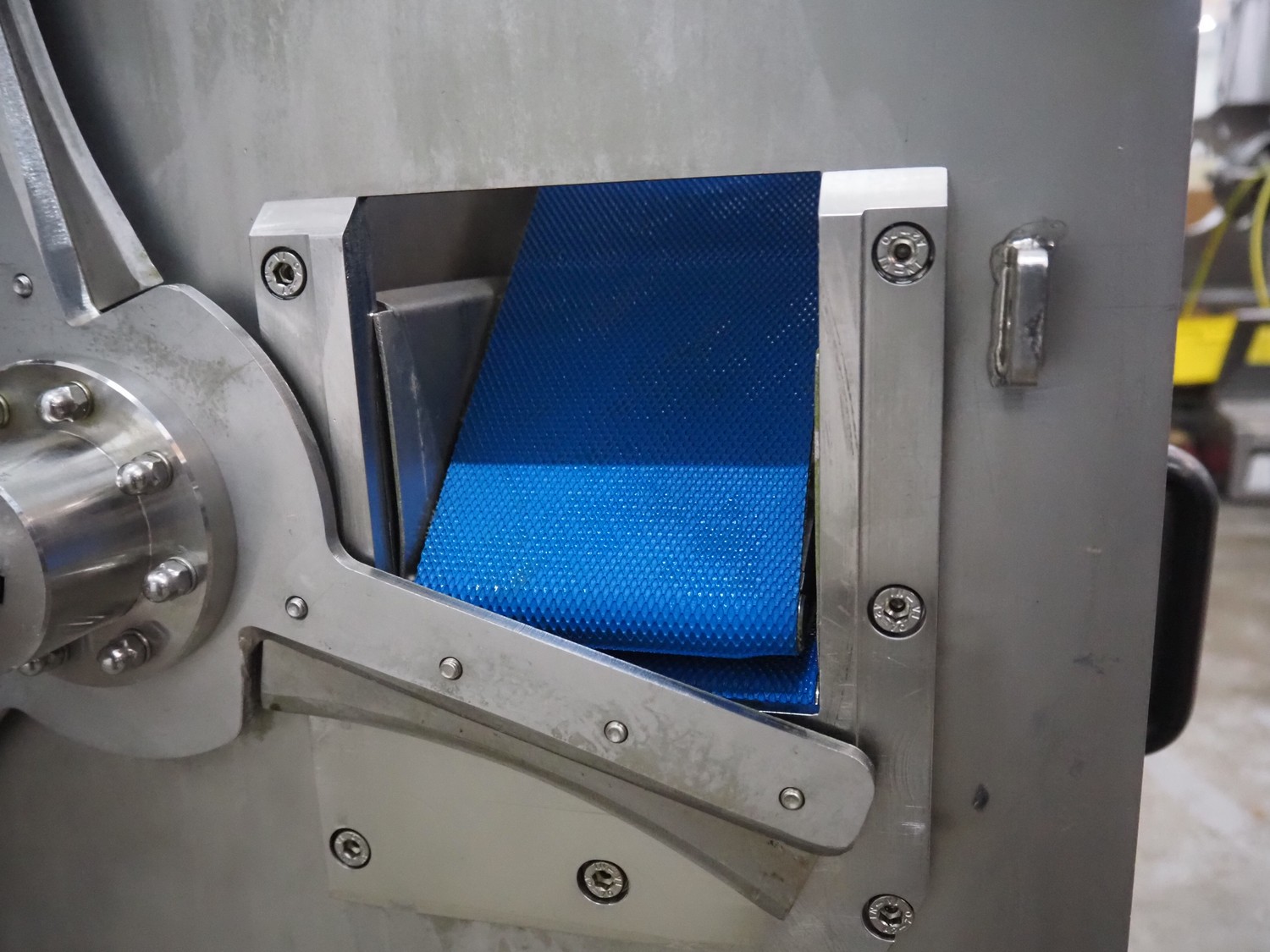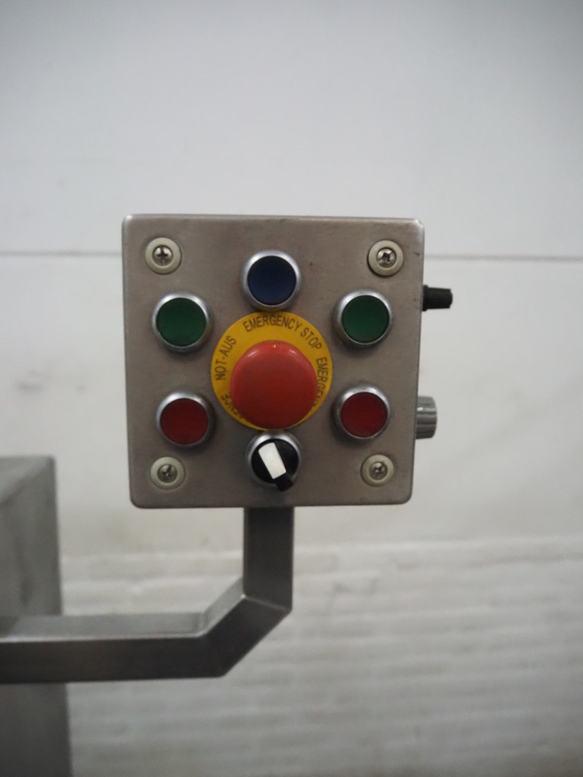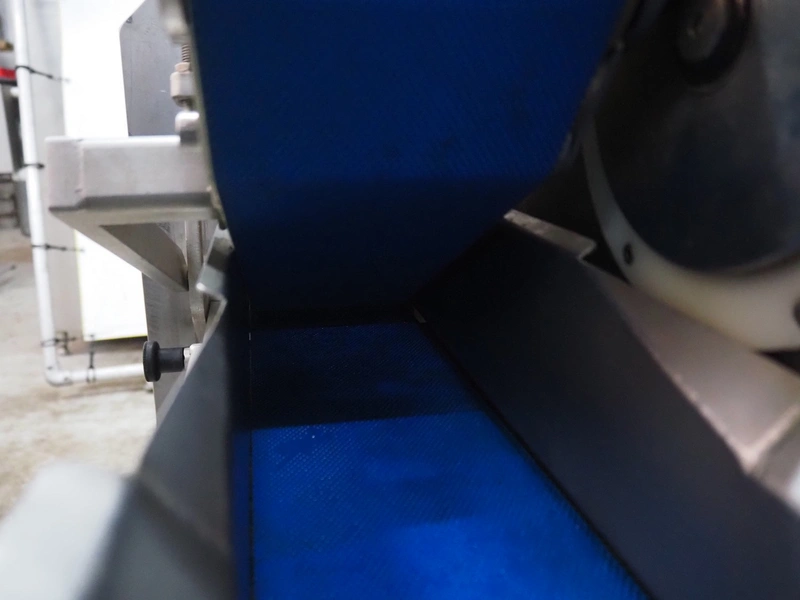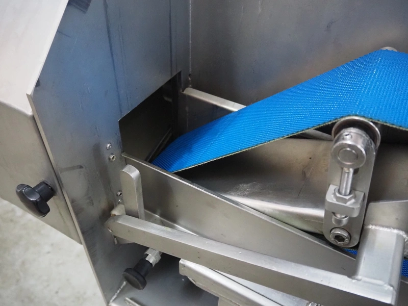 FMT mobile vegetable slicer, type: BS-1500, serial number: 9001-01, year of construction: 2005, 230 V, 1 Ph, 50 Hz, 16 A, 1.65 kW, plastic belt, belt width: 125 mm, clearance: 140 mm x 125 mm, total dimensions: 1400 mm x 650 mm x 1500 mm.
