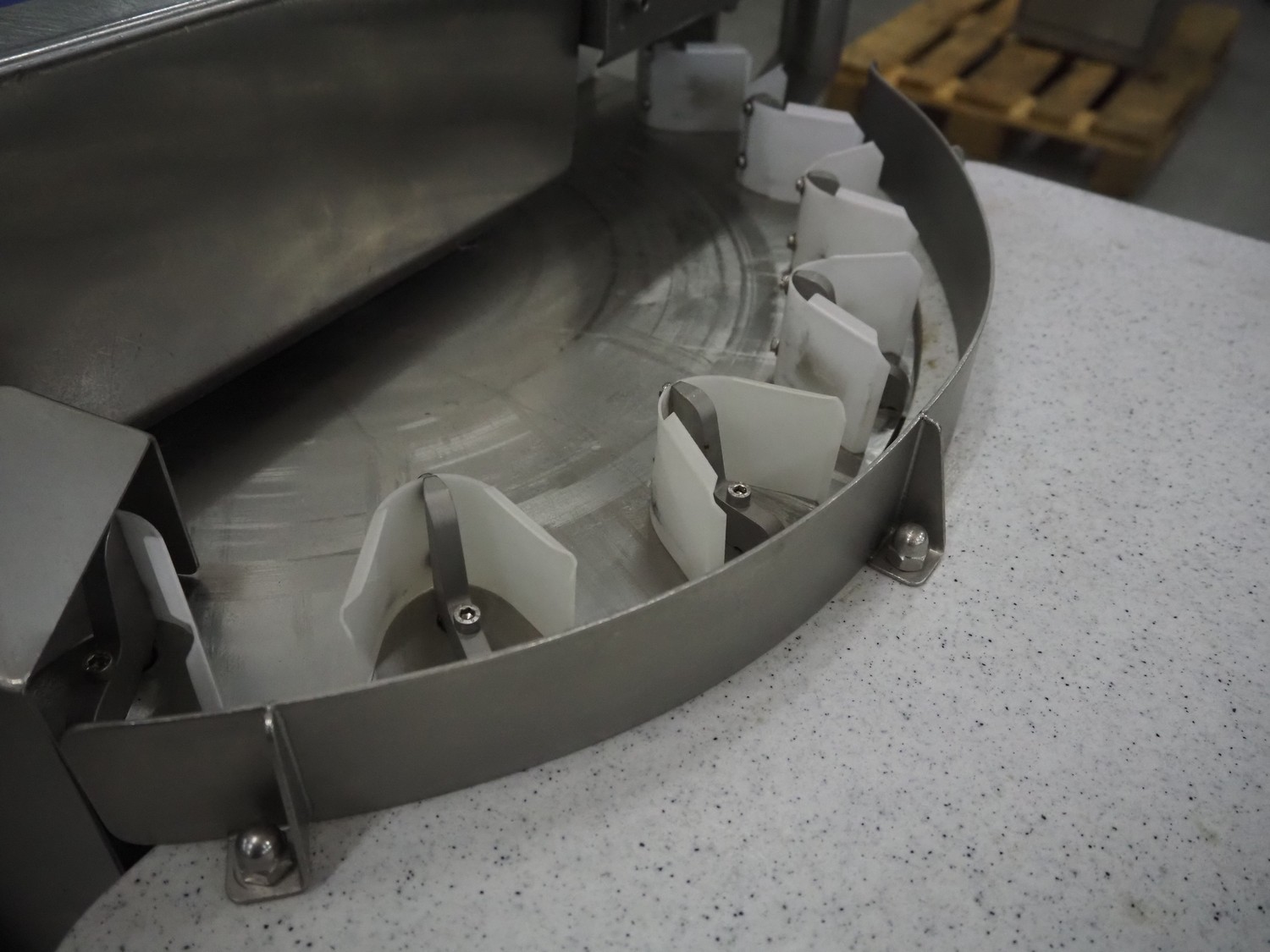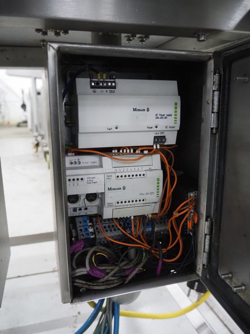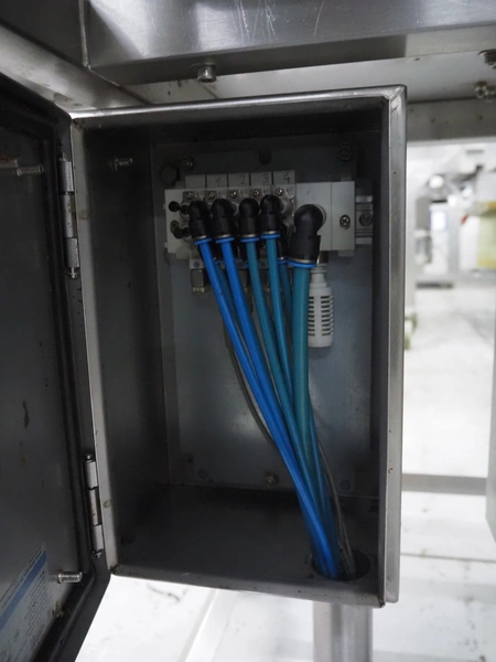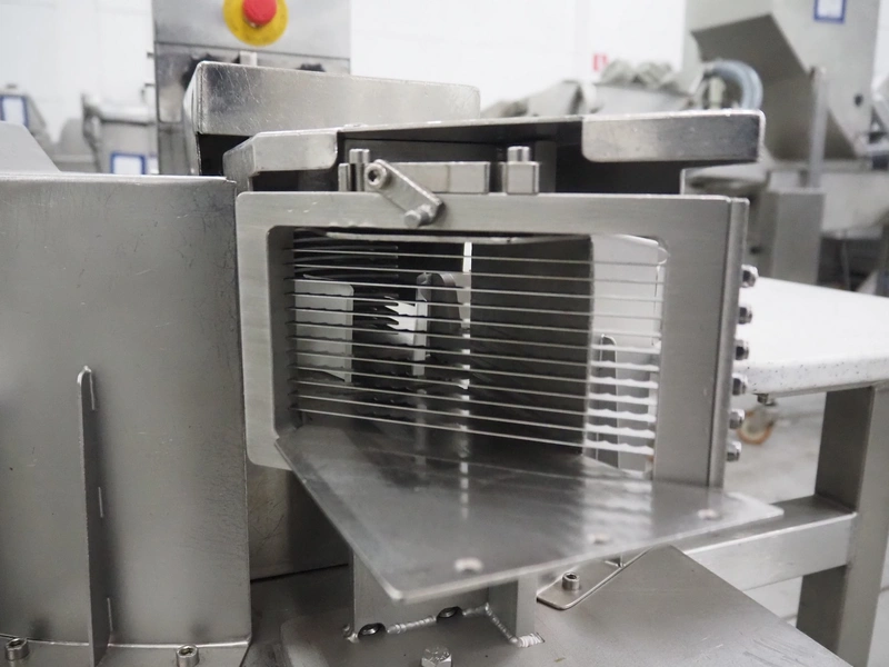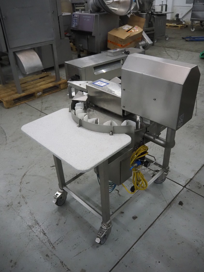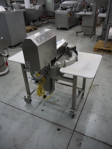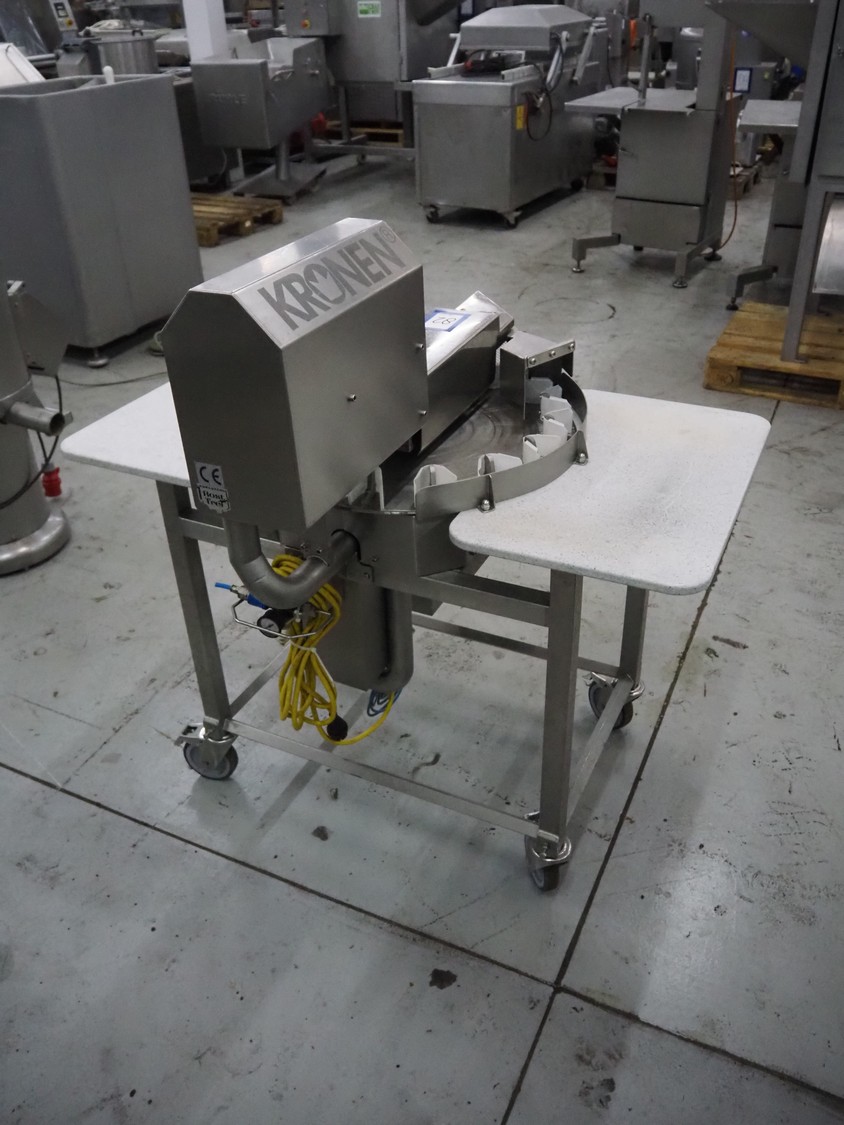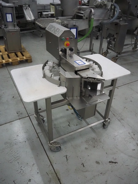 Kronen mobile automatic tomato slicer, working width: 75 mm, distance between knives: 6 mm, total dimensions: 1200 mm x 1000 mm x 1200 mm.