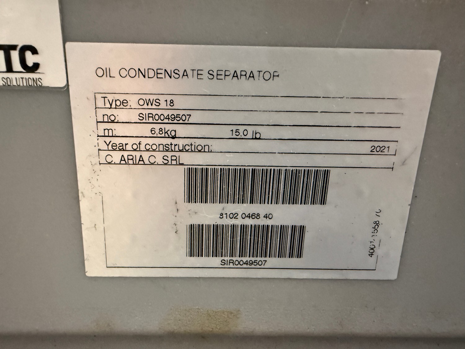 Alup Kompressoren GmbH oil-condense seperator, dimensions: 370 mm x 270 mm x 400 mm.