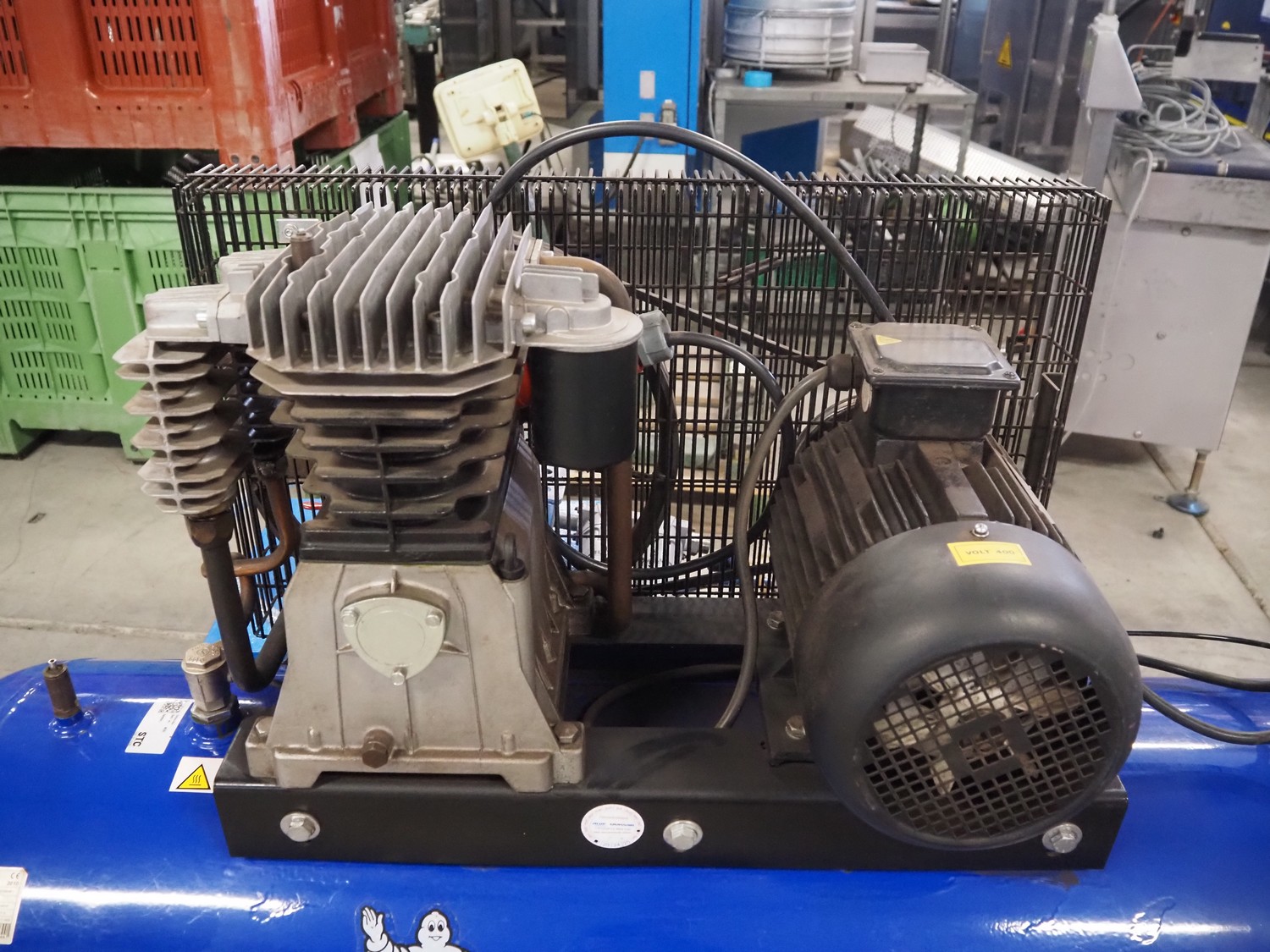 Michelin air compressor, serial number: 421005677, year of construction: 2010, 400 V, 3 Ph, 50 Hz, 8.5 A, 5.5 kW, dimensions: 1500 mm x 500 mm x 1000 mm.