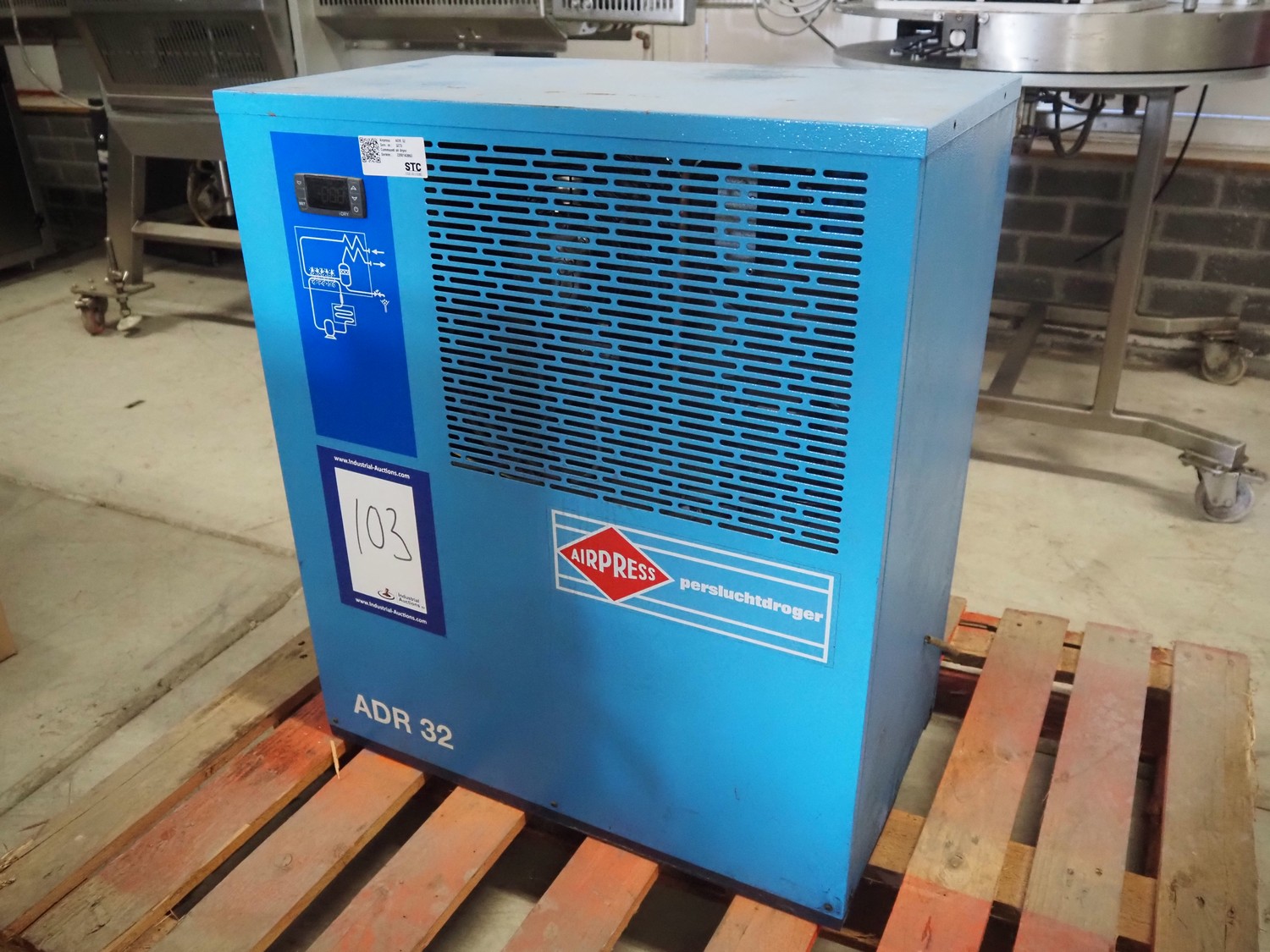 Airpress compressed air dryer, model: ADR 32, serial number: 2200143993, year of construction: 2009, 230 V, 1 Ph, 50 Hz, dimensions:650 mm x 500 mm x 750 mm.