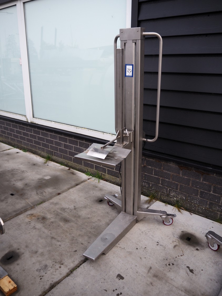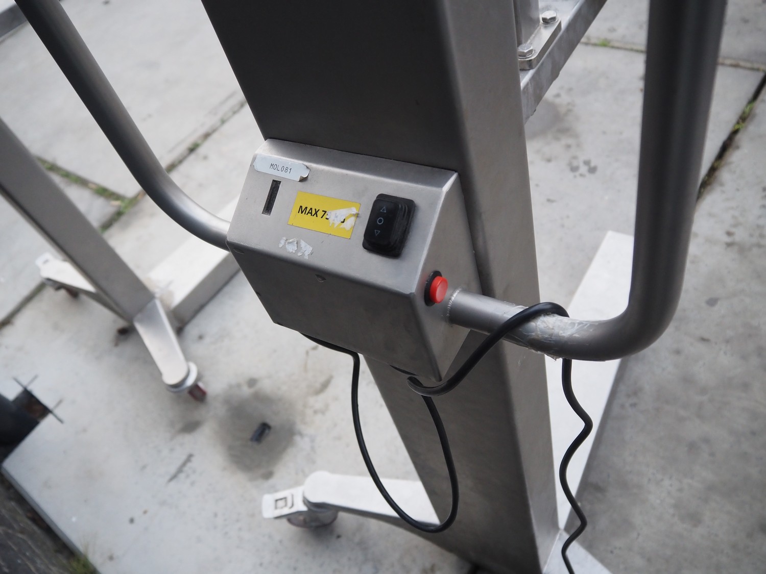 Mobile lifter for film rolls, dimensions: 900 mm x 860 mm x 1700 mm.
