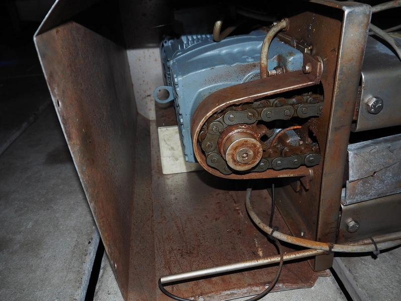 Cabinplant lifter for 200 liter meat bins, lifting height: 5430 mm, total dimensions: 1460 mm x 900 mm x 6430 mm.