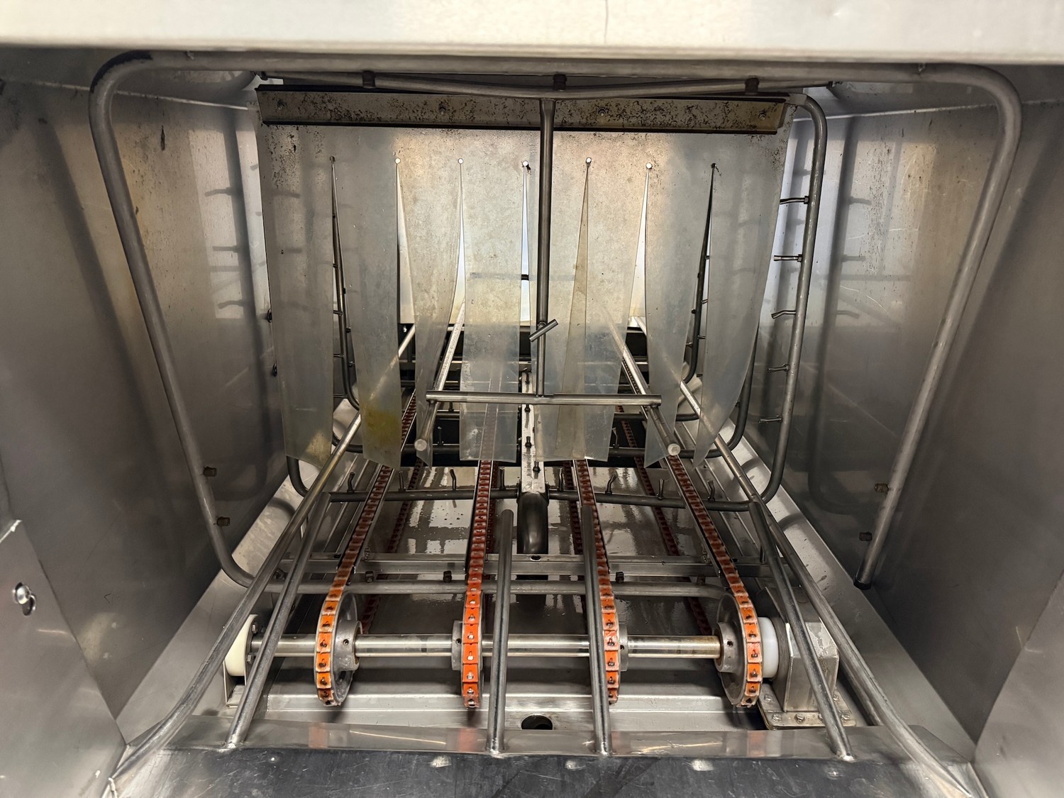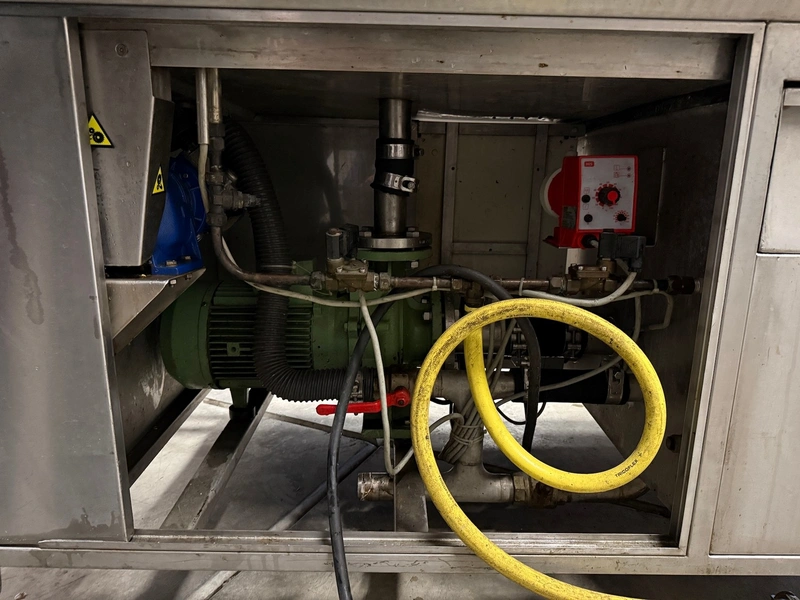 Unikon mobile crate washing machine, type: UN-100SL, machine number: 96124, 380 V, 3 Ph, 50 Hz, 35 A, 5.5 kW, clearance: 850 mm x 600 mm, total dimensions: 2600 mm x 1000 mm x 1650 mm.