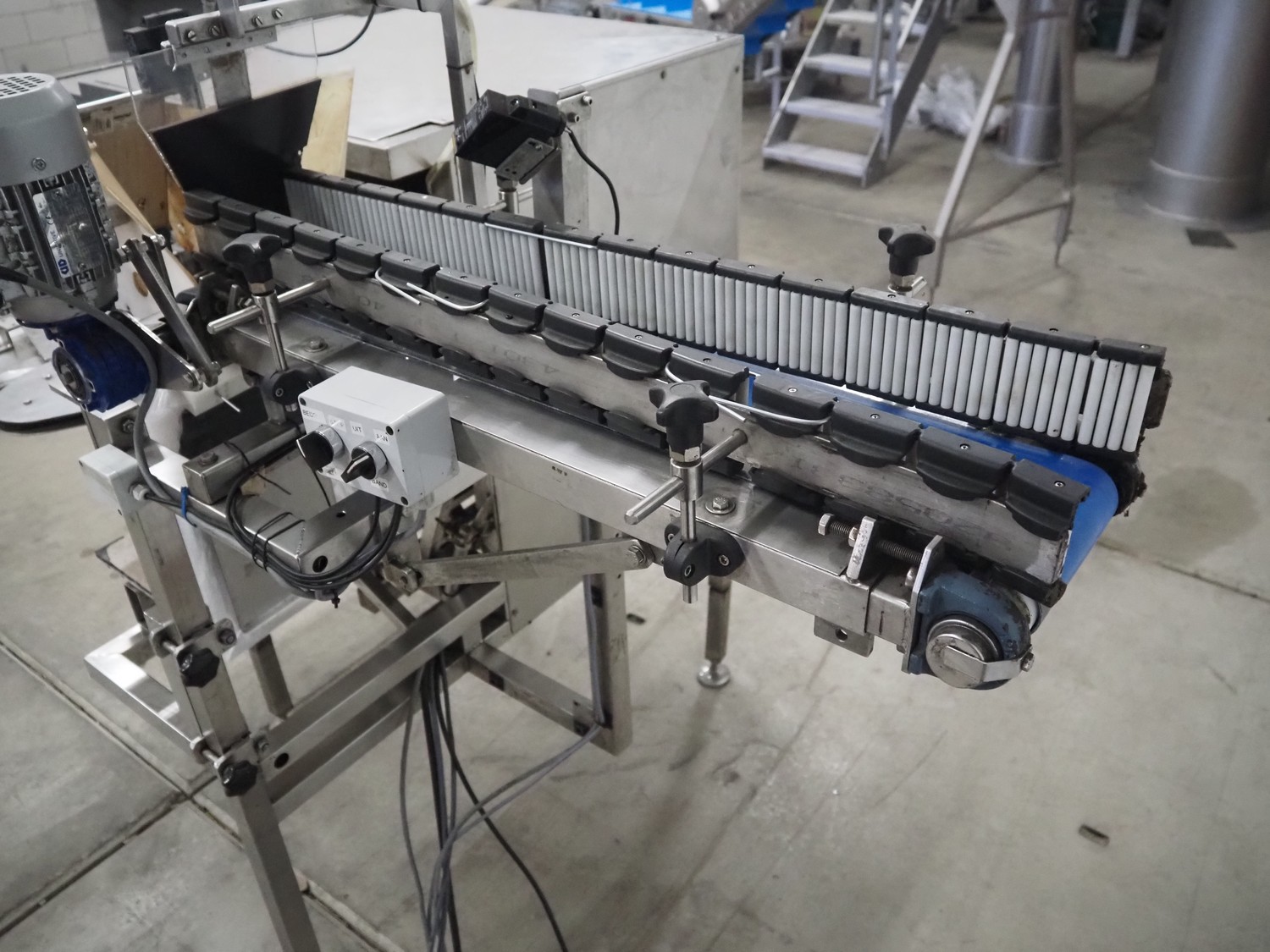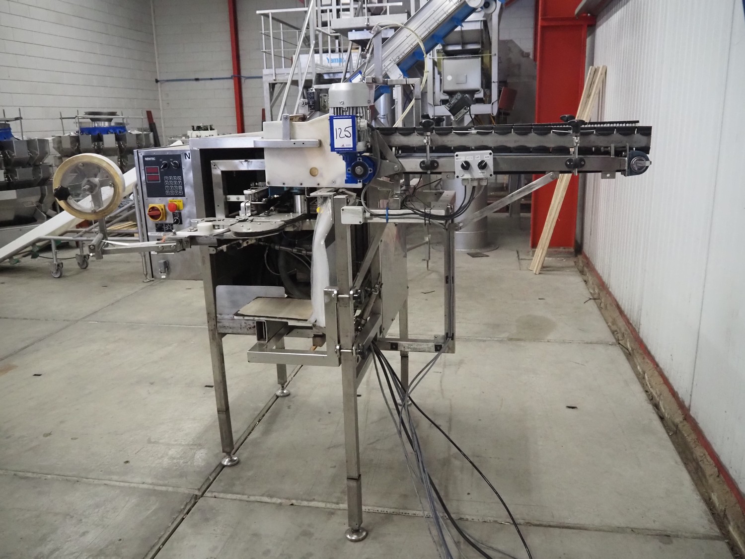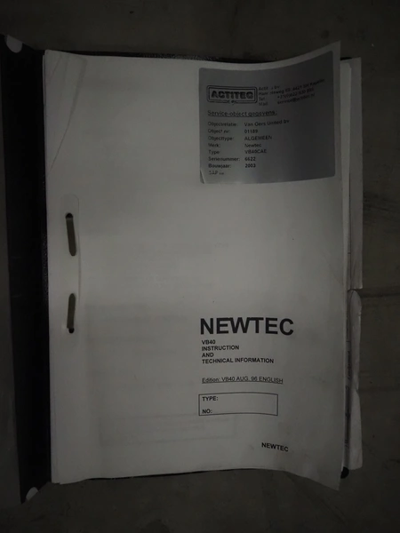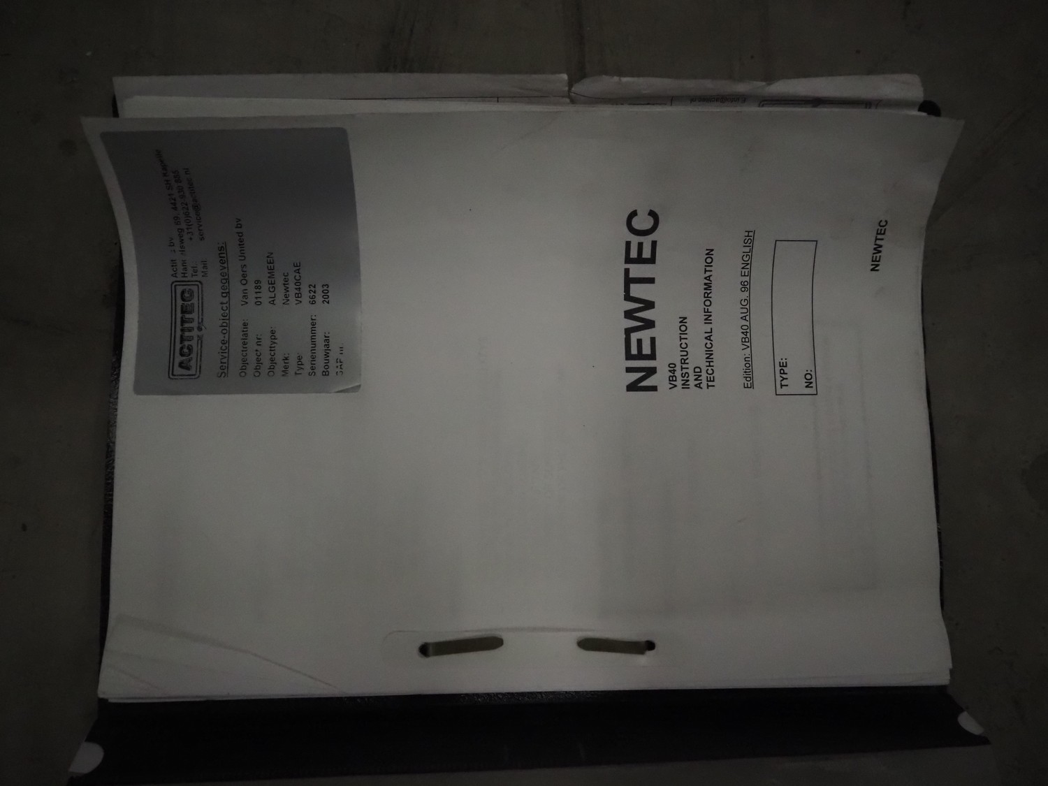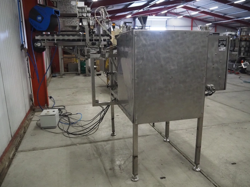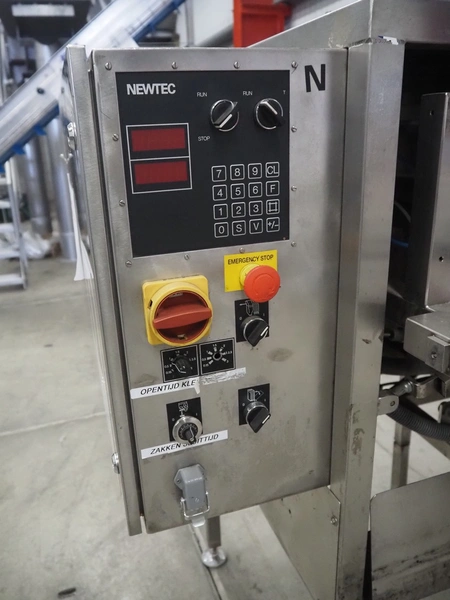 Newtec bag filling and closing machine, type: VB40CAE, number: 6622, year of construction: 2003, 400 V, 3 Ph, 4 A, 1.1 kW, plastic belt, belt width: 150 mm, total dimensions: 1900 mm x 1350 mm x 1520 mm.