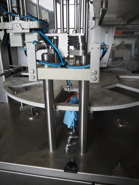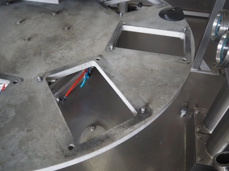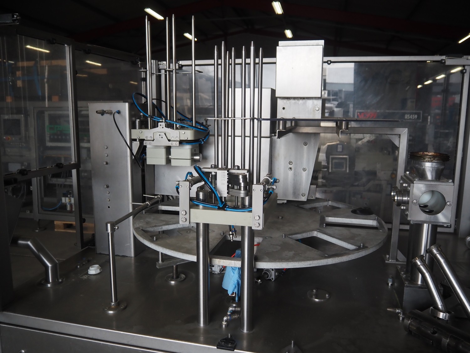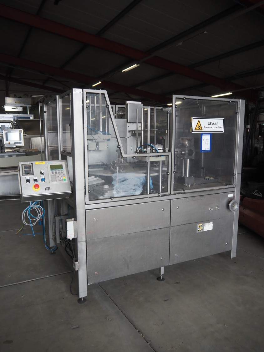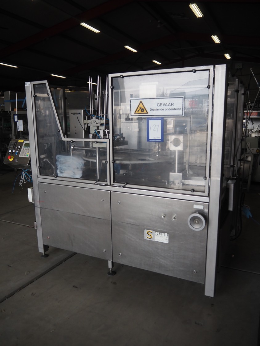 Schutten Machines BV filling and closing machine, 8 stations, total dimensions: 2350 mm x 1400 mm x 1950 mm. Incomplete, technical condition unknown.