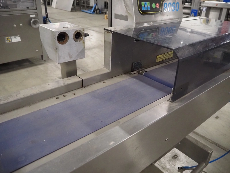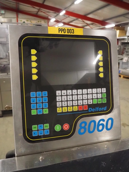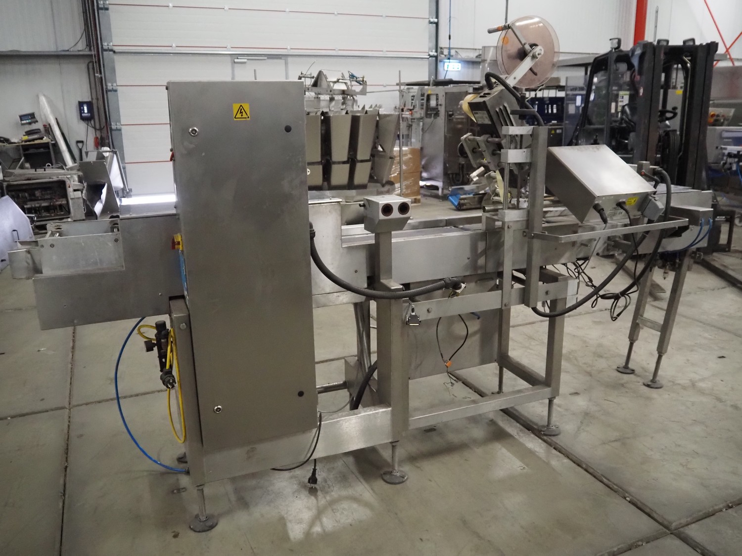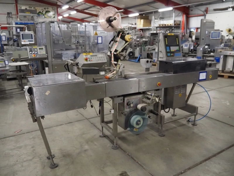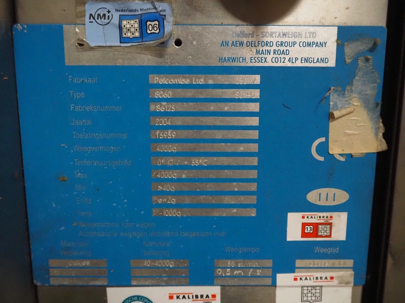AEW Sortaweigh LTD weighing and labelling machine, type: 8060, factory number: 86125, year of construction: 2004, temperature range: 0/+35 °C, maximum: 4000 gram, minimum: > 40 gram, e= 2 grams, weighing speed: 58 pieces per minute, BBK labeller, serie: Rapid "S", serial number: SR 120/0404-3115 S, machine number: 24201118, year of construction: 2004, belt width: 200 mm and (2x) 90 mm, total dimensions: 3100 mm x 1000 mm x 1850 mm.