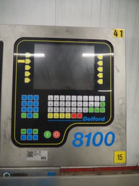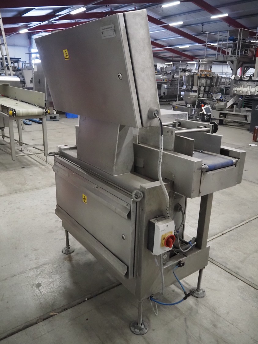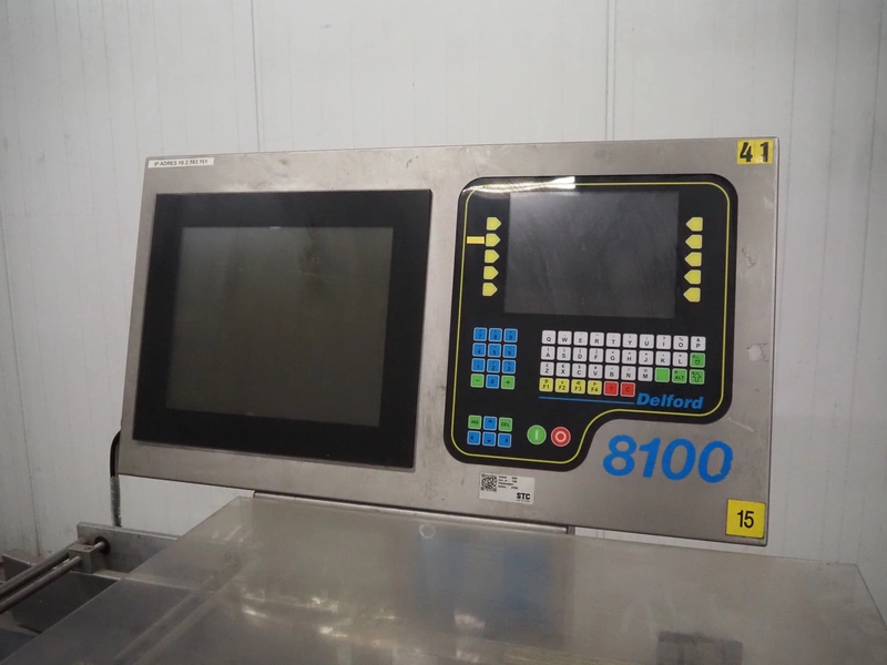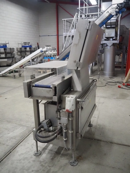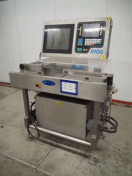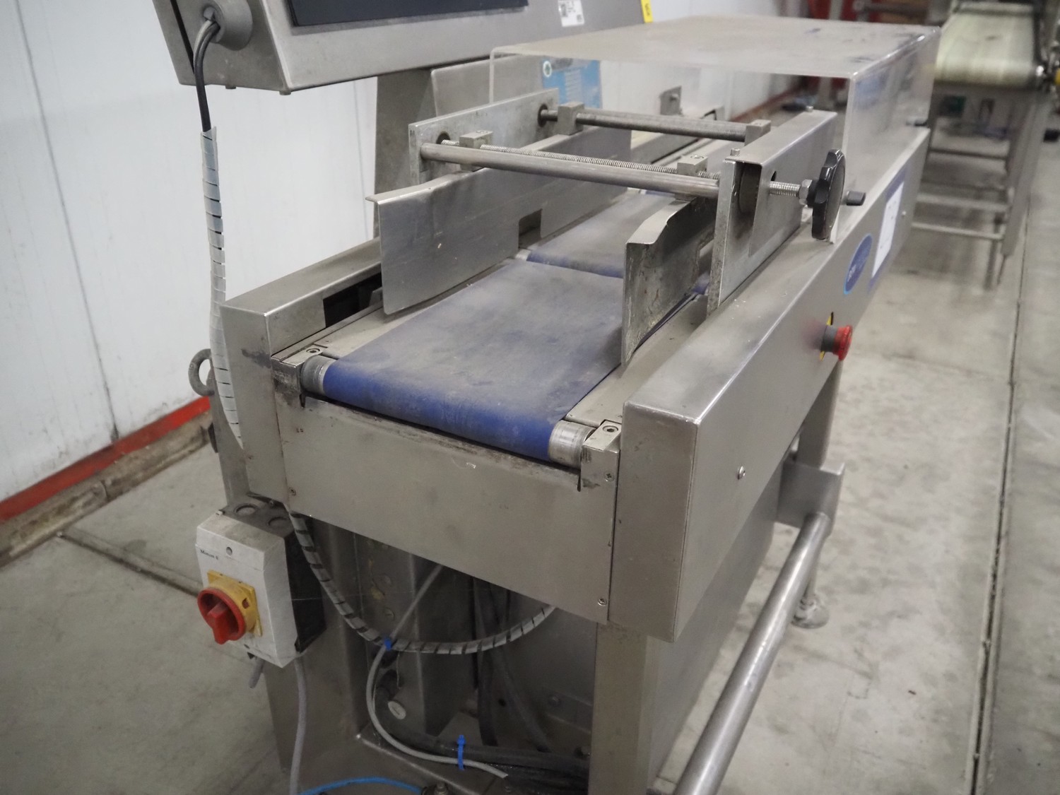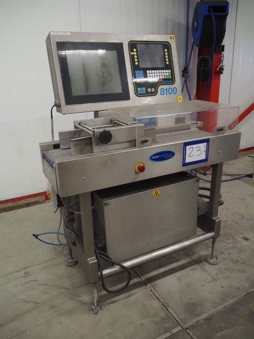 AEW Delford checkweigher, type: 8060, fabrication number: 81056, year of construction: 2004, 230 V, 50 Hz, weighing range: 40-4000 g, e=2g, temperature range: 0-35 °C, plastic belt, belt width: 195 mm, total dimensions: 700 mm x 1200 mm x 1600 mm.
