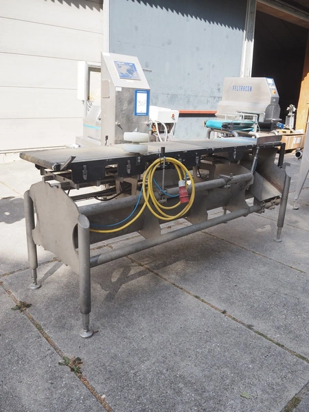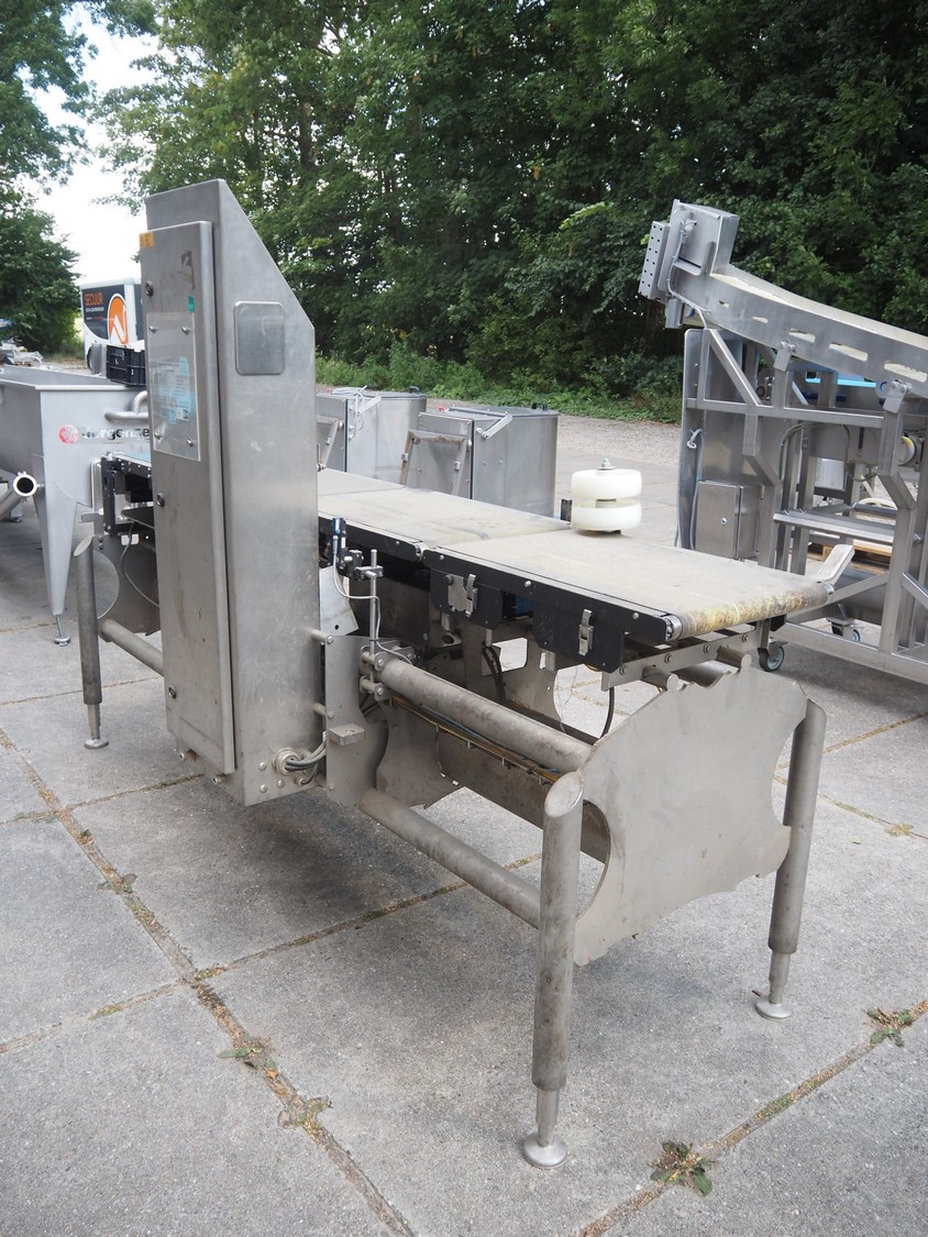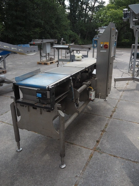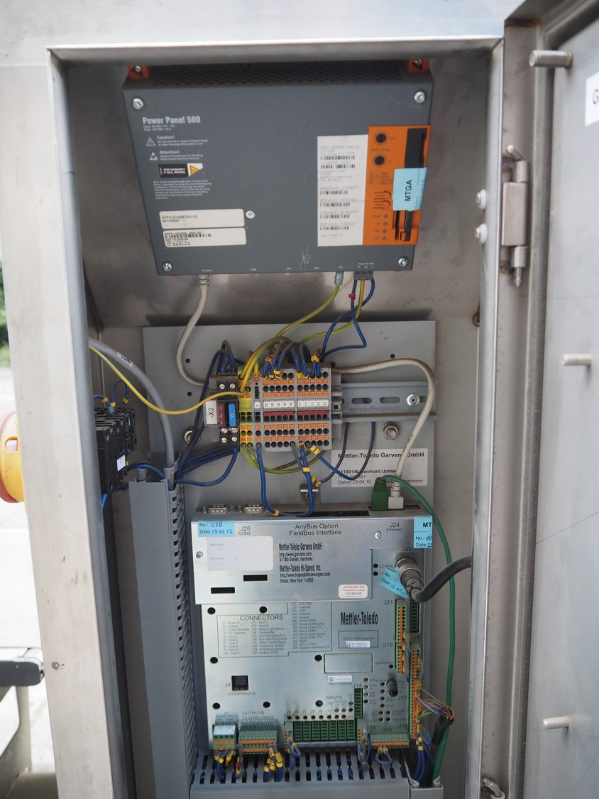 Mettler Toledo Garvens GmbH checkweigher with rejector, type: XE3, serial number: 35002093, year of construction: 2010, 100-240 V, 50-60 Hz, weighing range: 10 g- 5500 g, e= 2 g, d= 2 g, speed: 65 m/min, capacity: 94 pieces/min, plastic belt, belt width: 400 mm, total dimensions: 900 mm x 2400 mm x 1650 mm. Technical condition unknown.