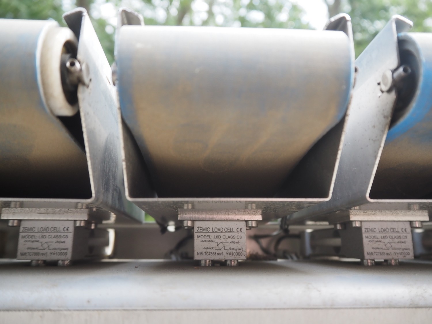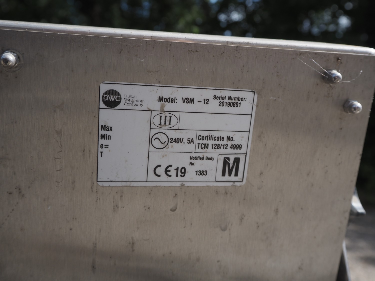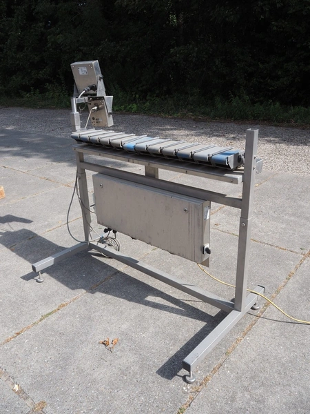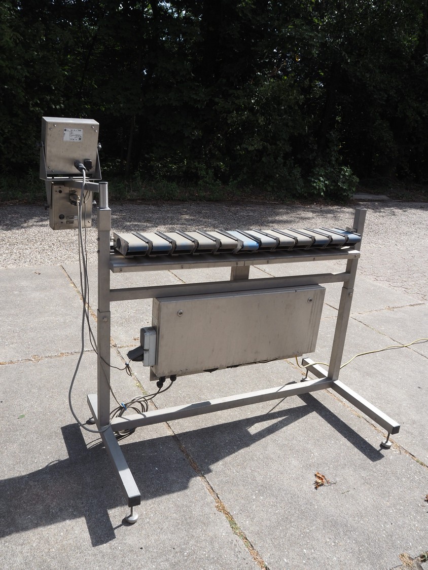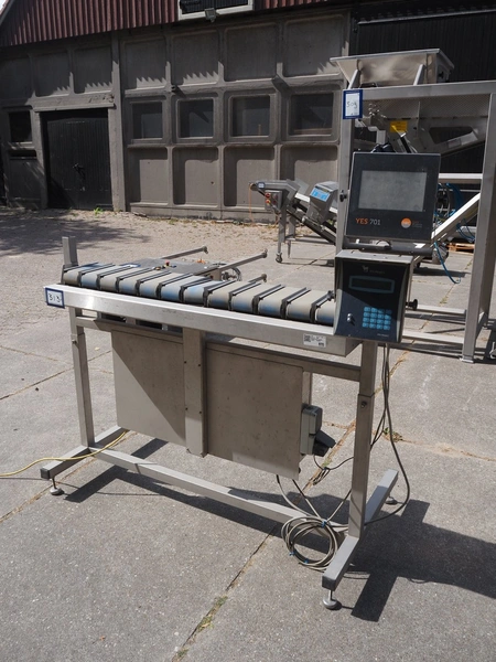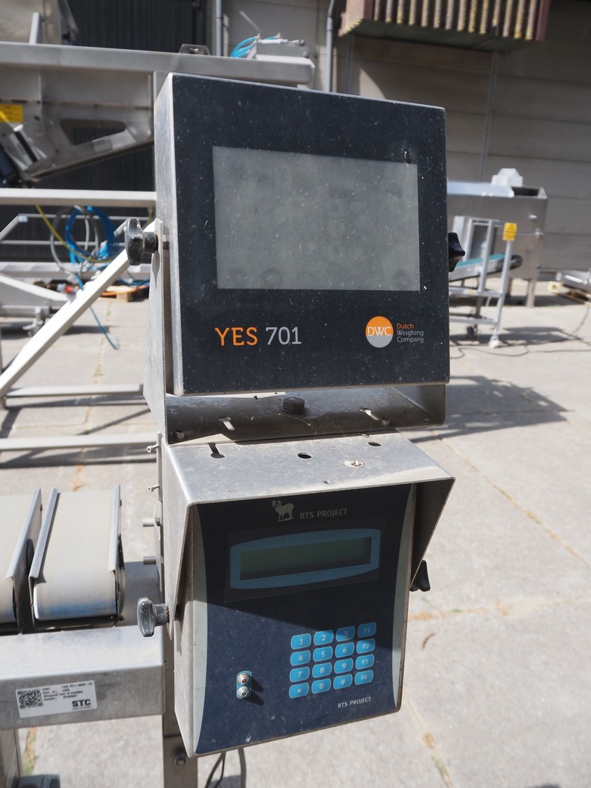 DWC checkweigher, model: VSM-12, serial number: 20190891, year of construction: 2019, 240 V, 5 A, 12 lanes, plastic belt, belt width: (12x) 75 mm, total dimensions: 1850 mm x 1000 mm x 1600 mm.