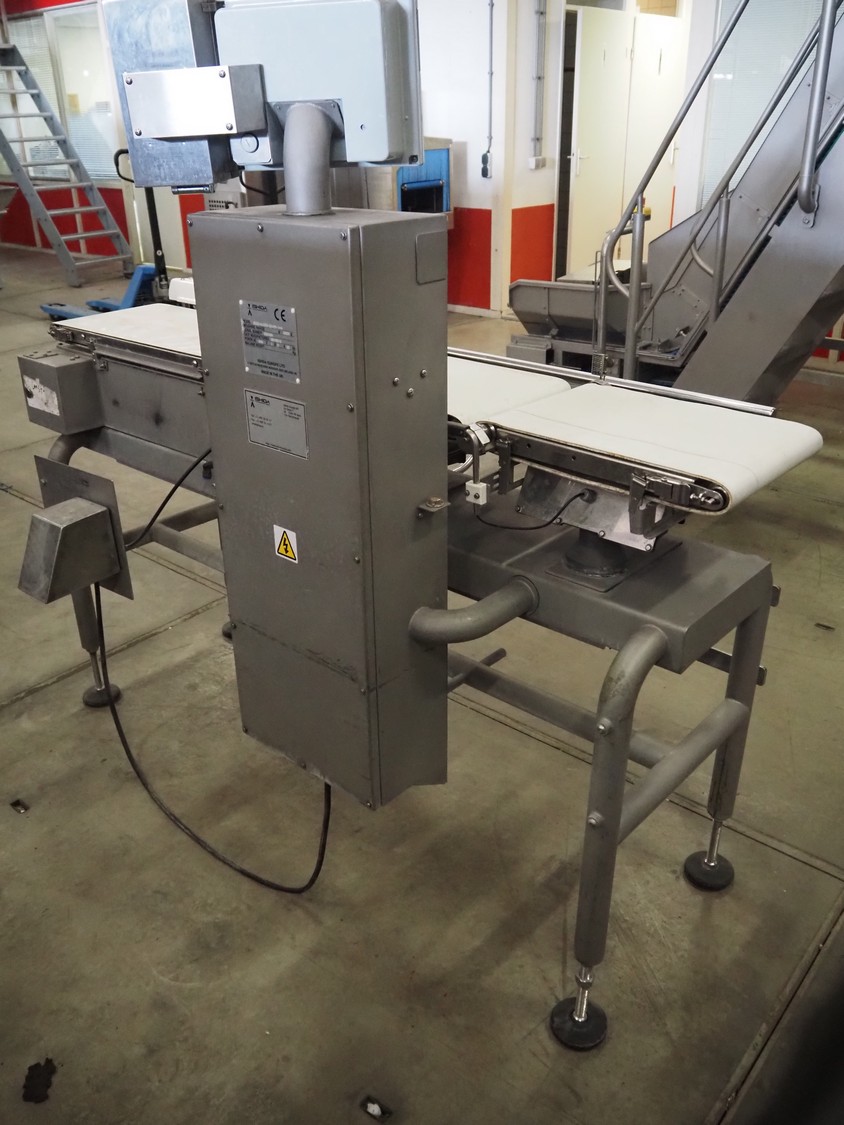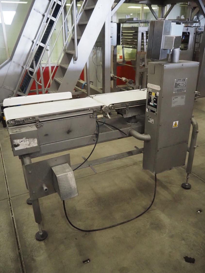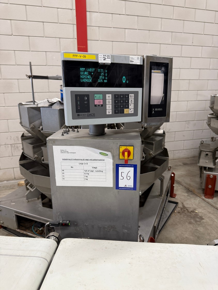 Ishida checkweigher with rejecter, type: DACS-W-030-SB/WP-I-N, serial number: 562484, year of construction: 2012, 240 V, 50 Hz, 2A, maximum weight: 3300 mm, minimum weight: 125 gram, plastic belt, belt width: 300 mm, total dimensions: 1800 mm x 810 mm x 1600 mm.