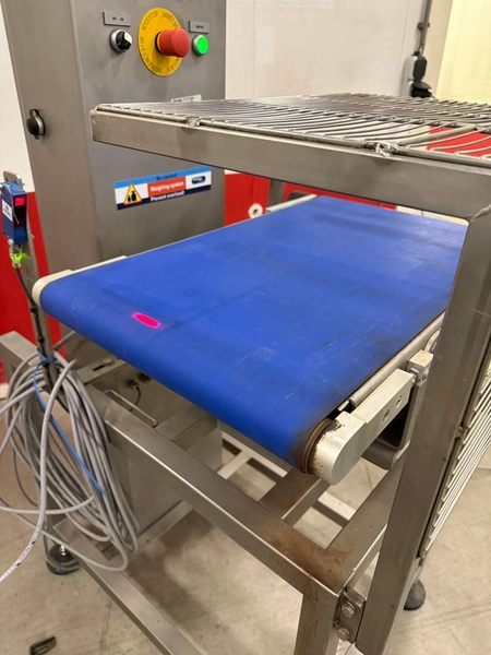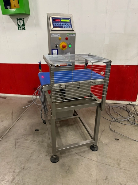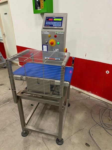 HENK MAAS Scales checkweigher, type: CW-100, serial number: 73304449, 230 V, maximum: 6 kg, minimum: 100 gram, e - 5 gram, total dimensions: 820 mm x 650 mm x 1510 mm.