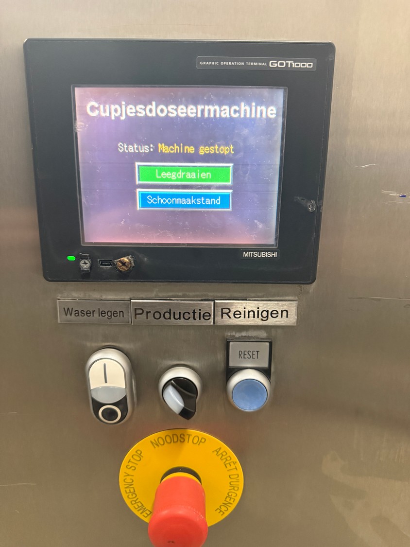 Steven BV dosing machine for cups, serial number: CUPJESDOSEUR, machine number: 16016, year of construction: 2016, 400 V, dimensions: 1000 mm x 1250 mm x 1950 mm.