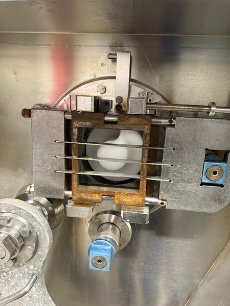 Holac dicer, chamber dimensions: 150 mm x 150 mm, total dimensions: 2200 mm x 1050 mm x 2200 mm.