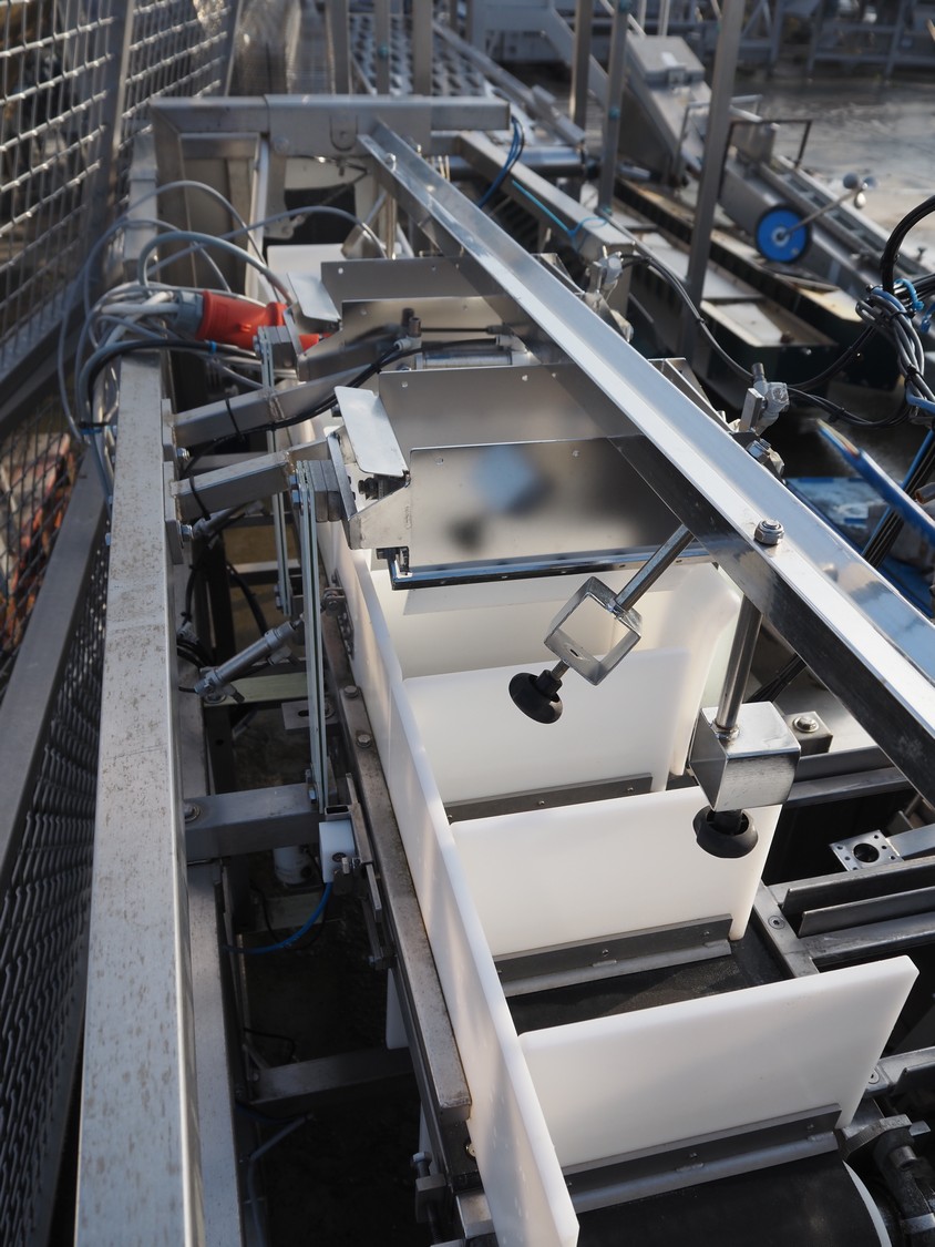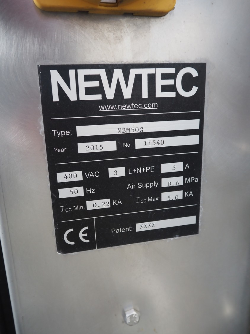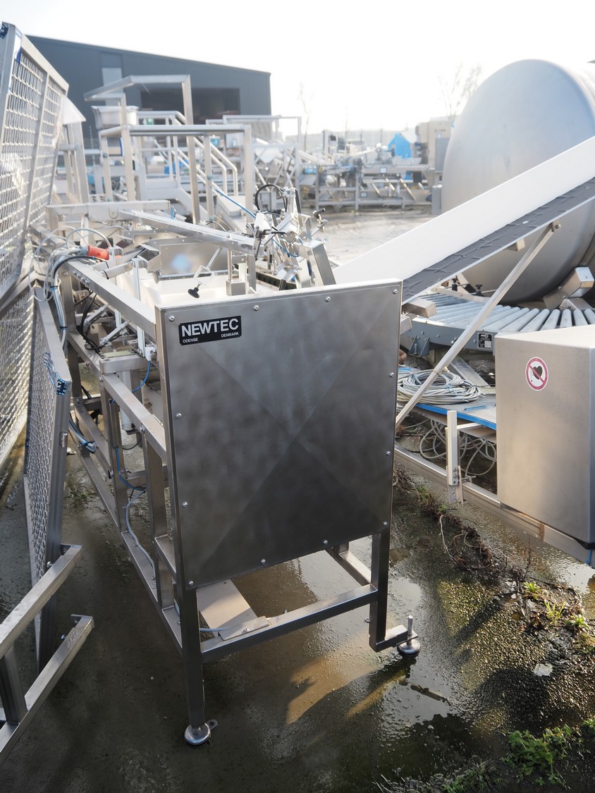 Newtec tray filler, type: NBM50G, number: 11540, year of construction: 2015, 400 V, 3 Ph, 50 Hz, 3 A, dimensions punnet filler: 2100 mm x 2200 mm x 1600 mm.