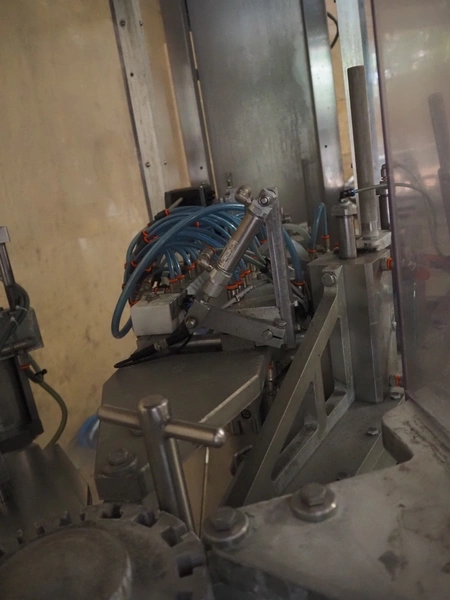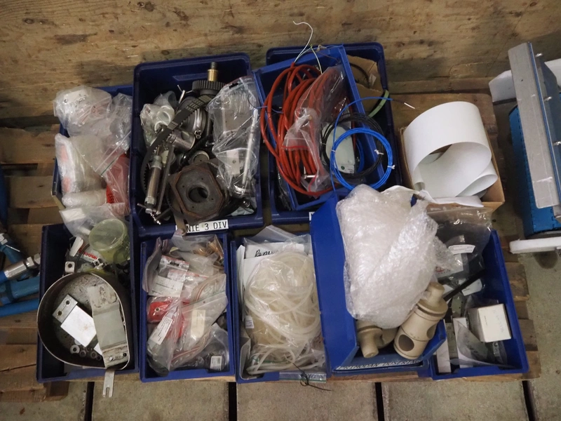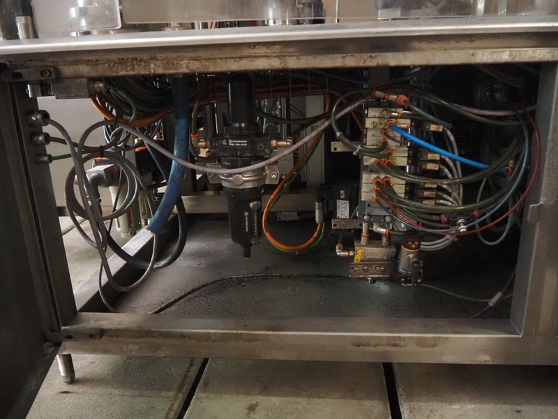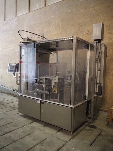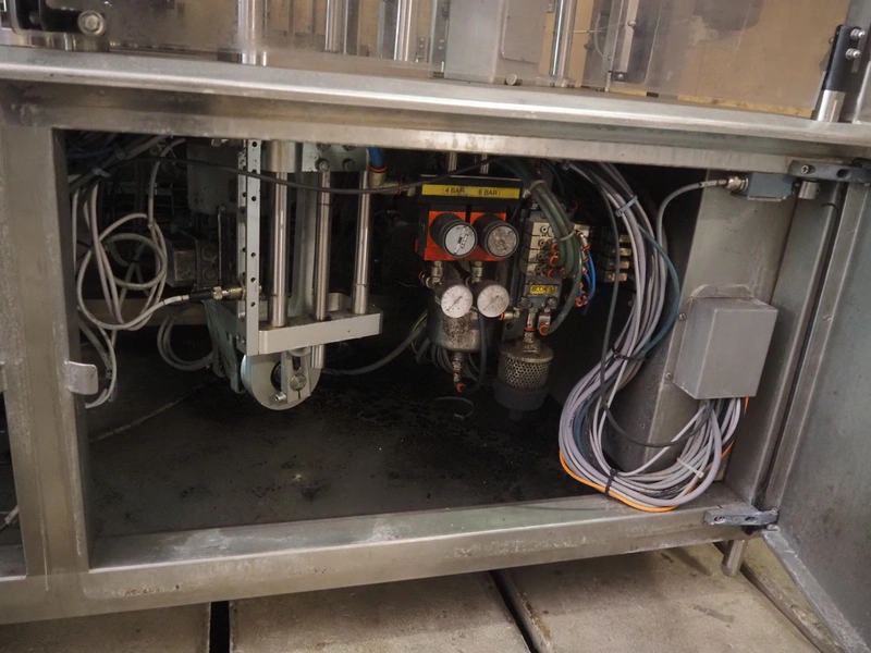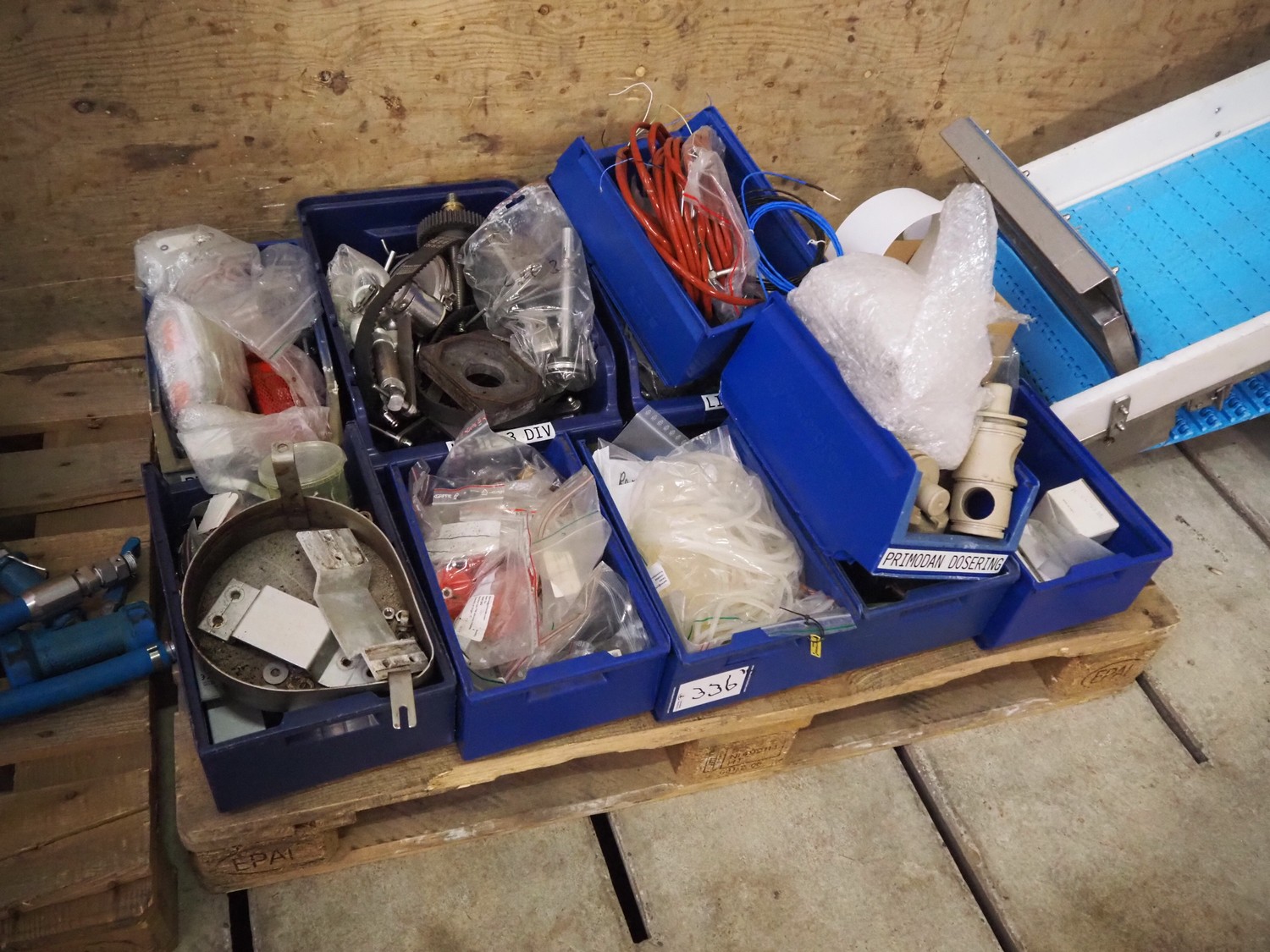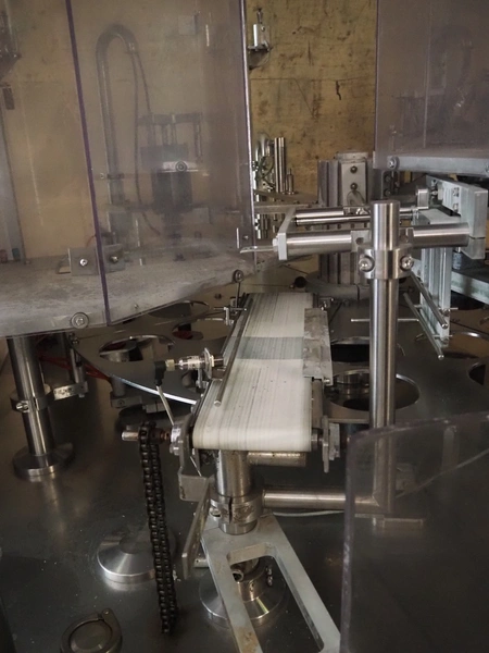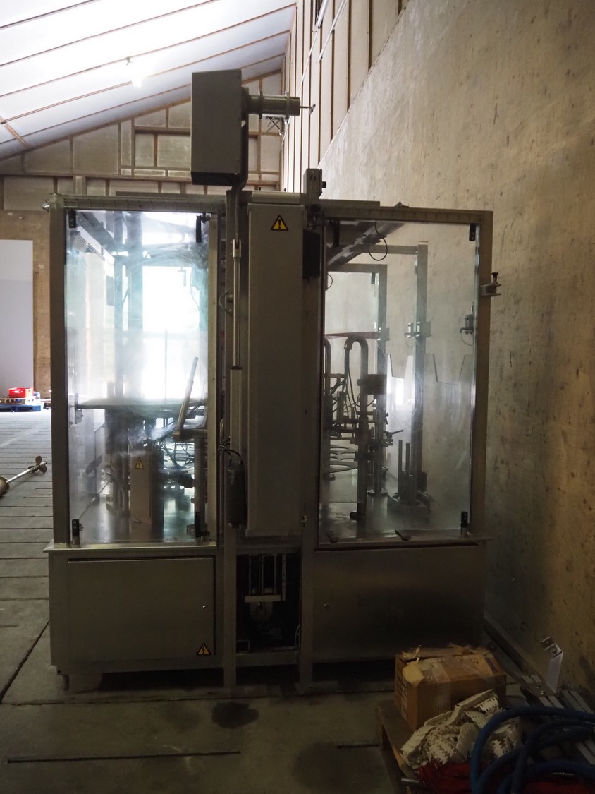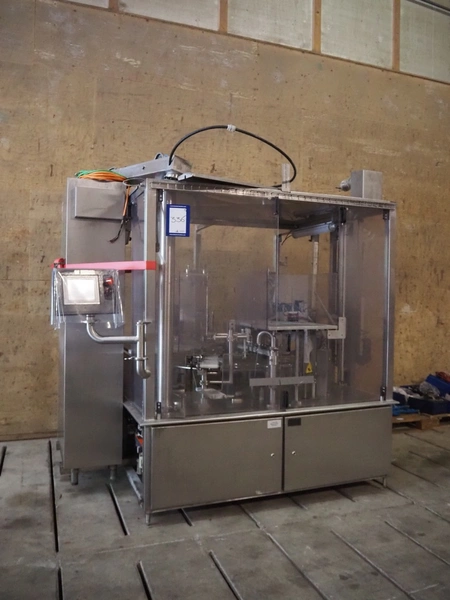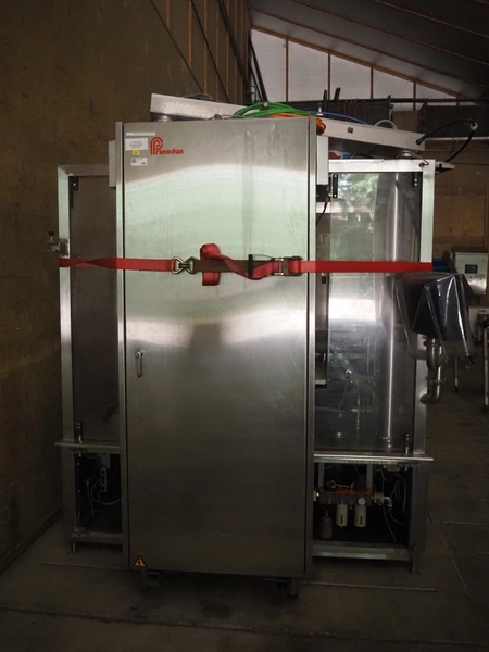 Primodan filling machine, plastic belt, belt width: 130 mm, total dimensions: 2700 mm x 2000 mm x 2600 mm. Including two pallets with parts. Machine incomplete.
