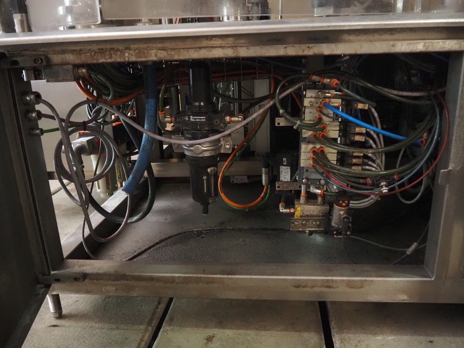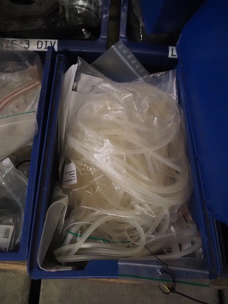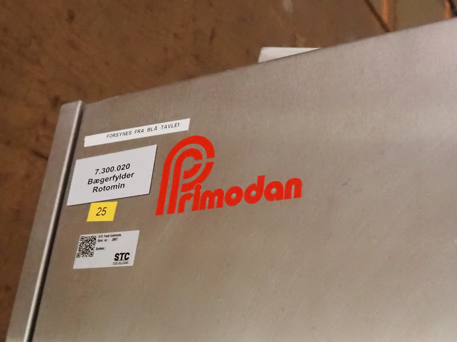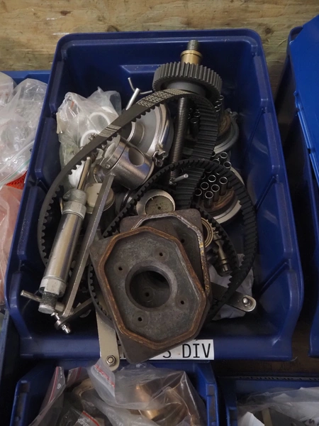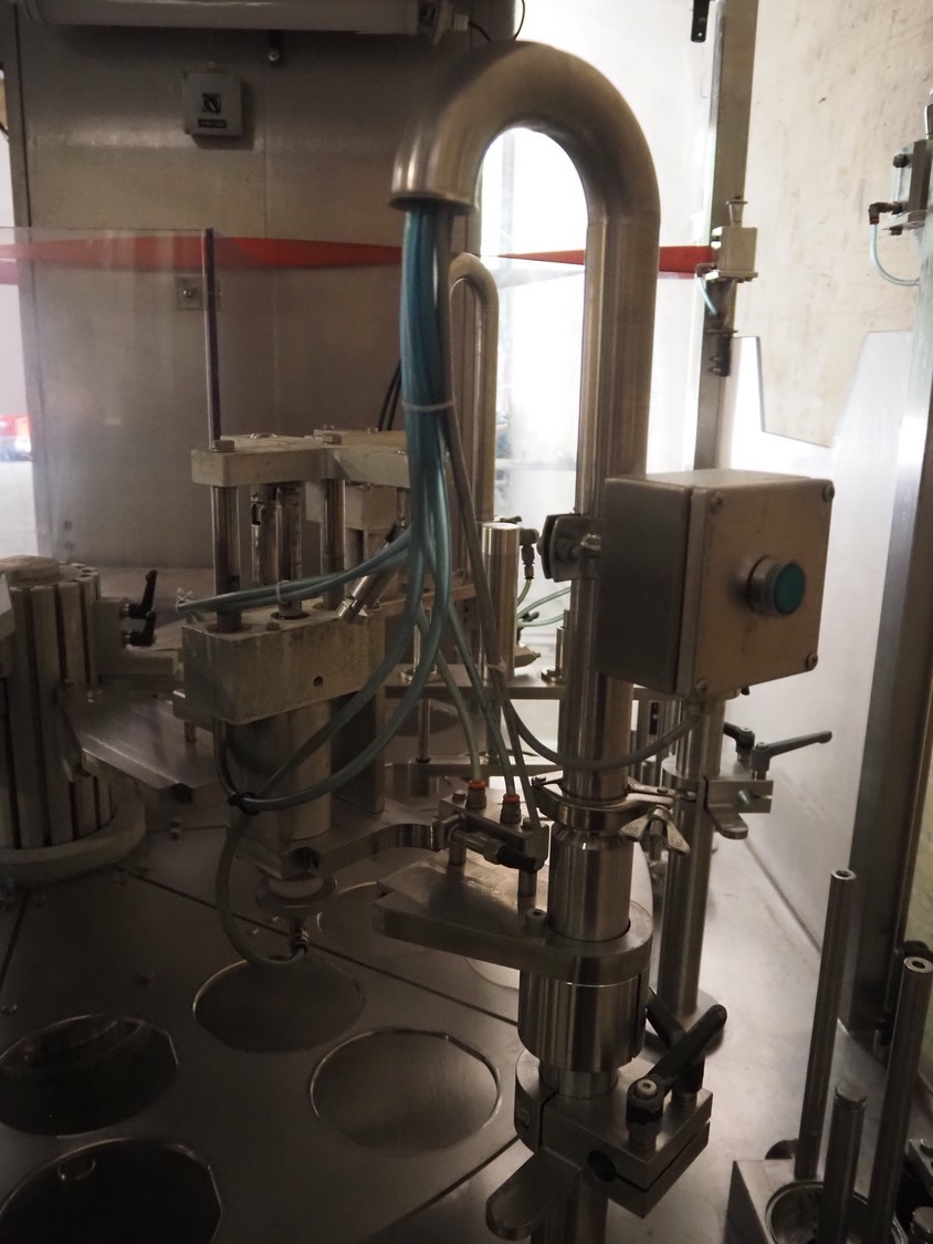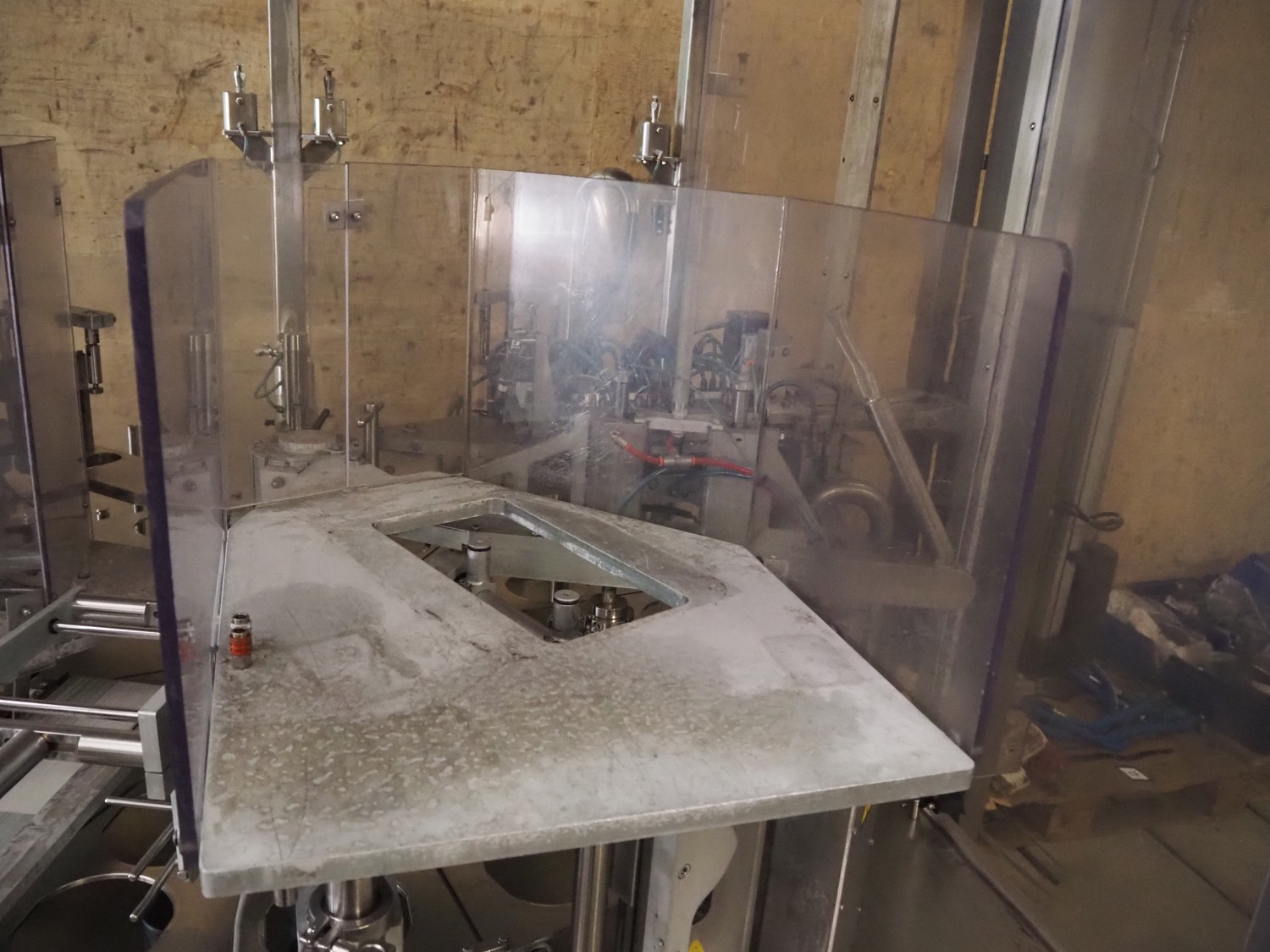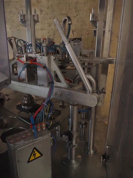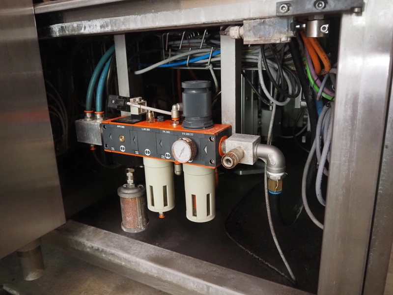 Primodan filling machine, plastic belt, belt width: 130 mm, total dimensions: 2700 mm x 2000 mm x 2600 mm. Including two pallets with parts. Machine incomplete.