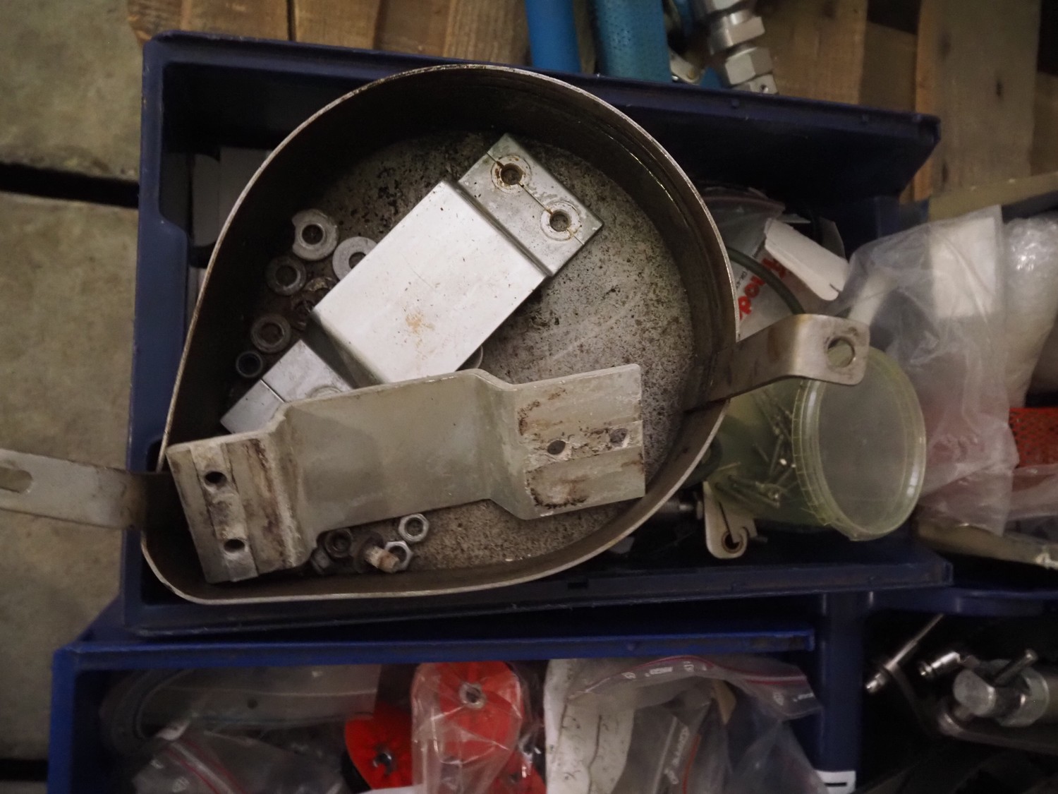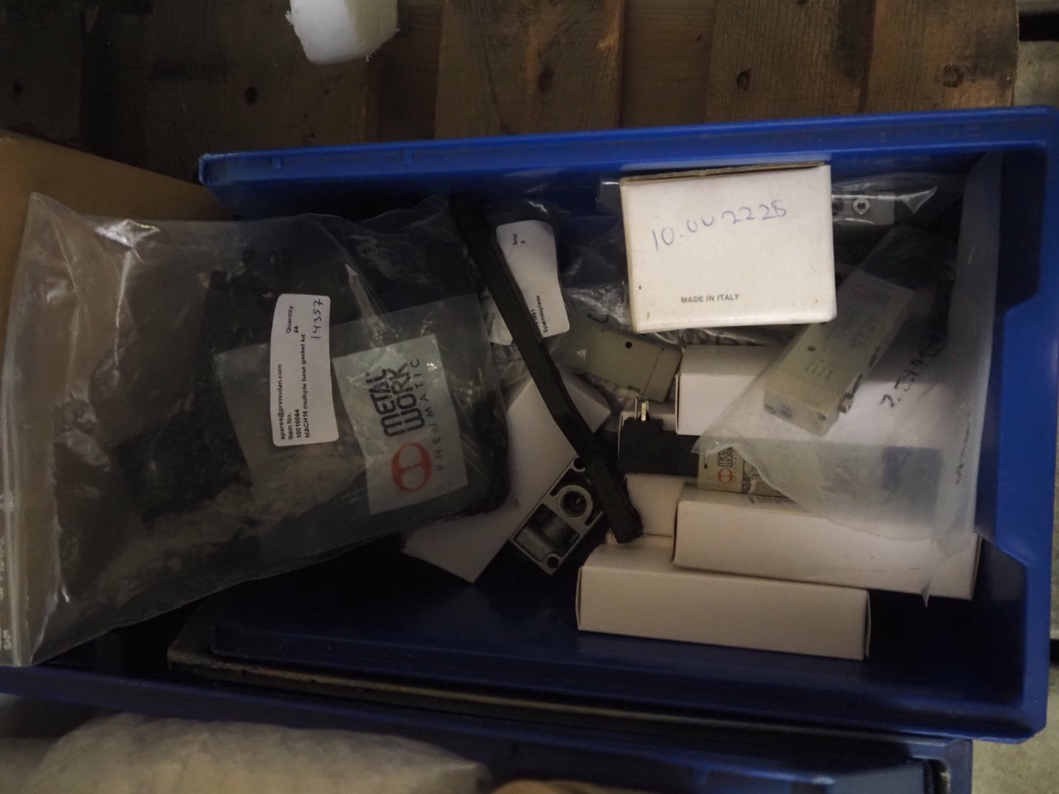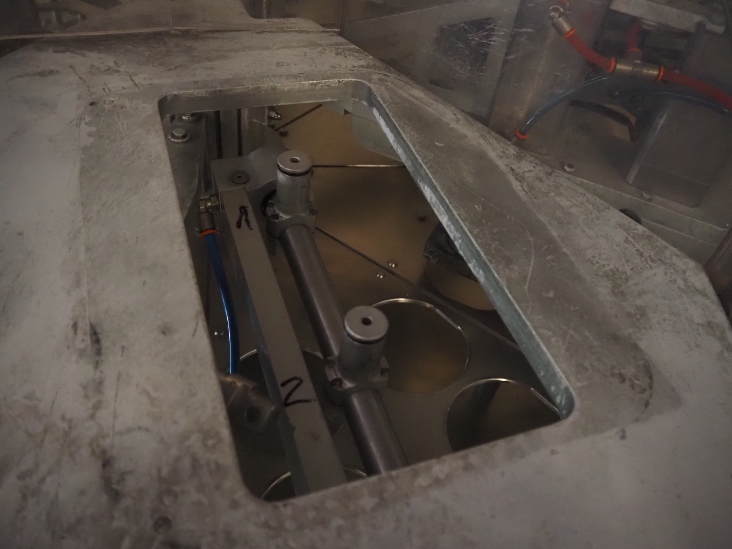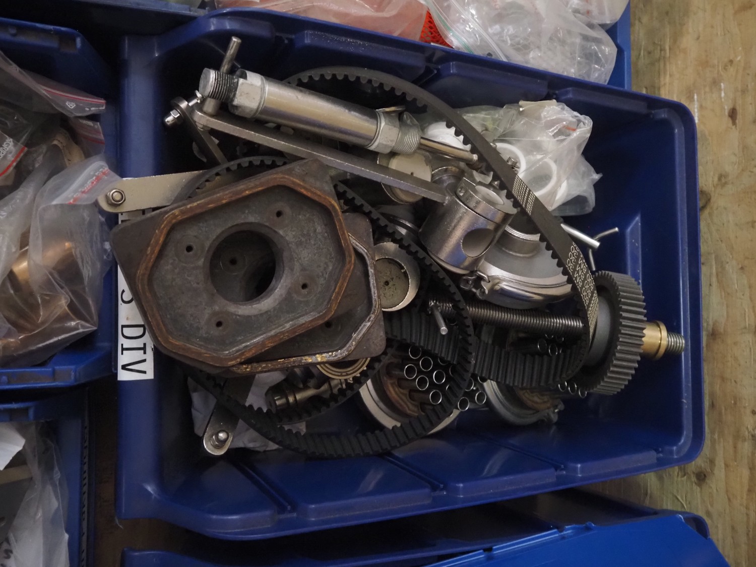 Primodan filling machine, plastic belt, belt width: 130 mm, total dimensions: 2700 mm x 2000 mm x 2600 mm. Including two pallets with parts. Machine incomplete.