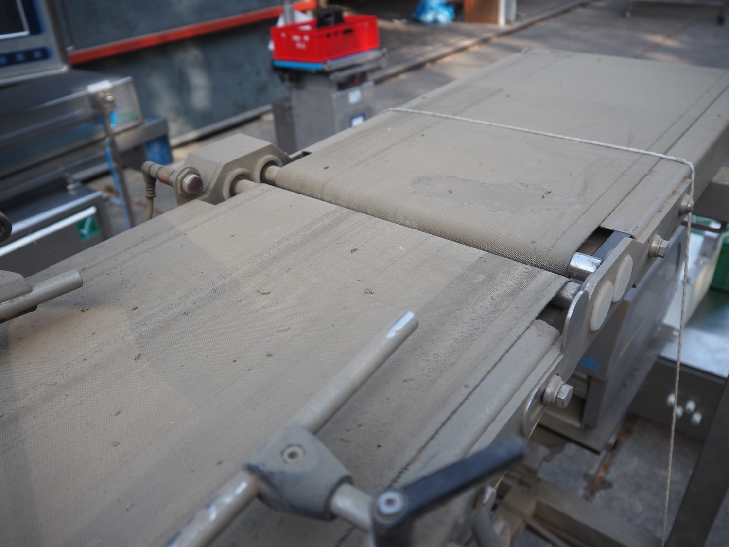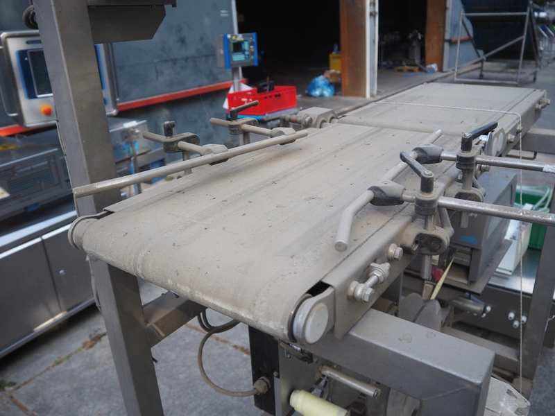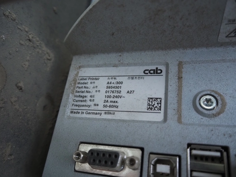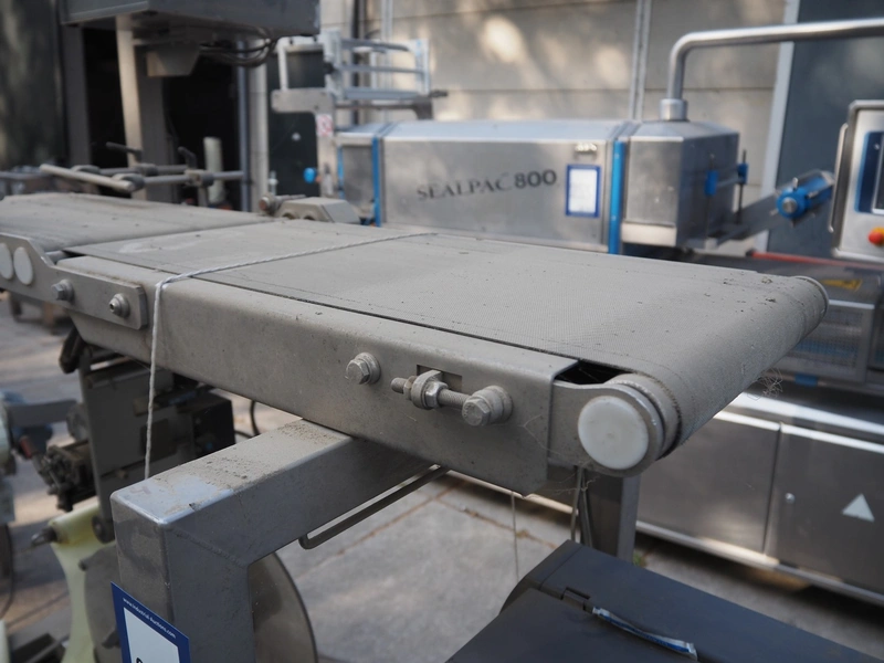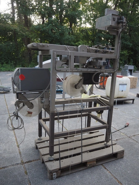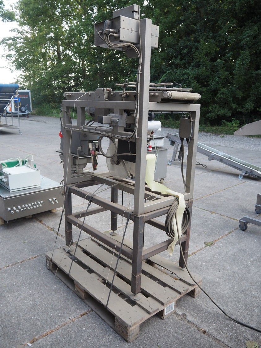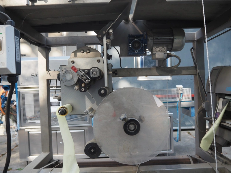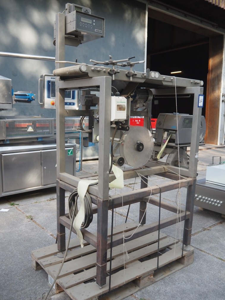 Labelling machine, plastic belt, belt width: 300 mm, total dimensions: 1600 mm x 800 mm x 2100 mm.
