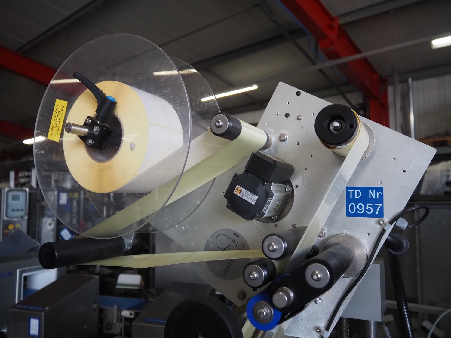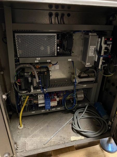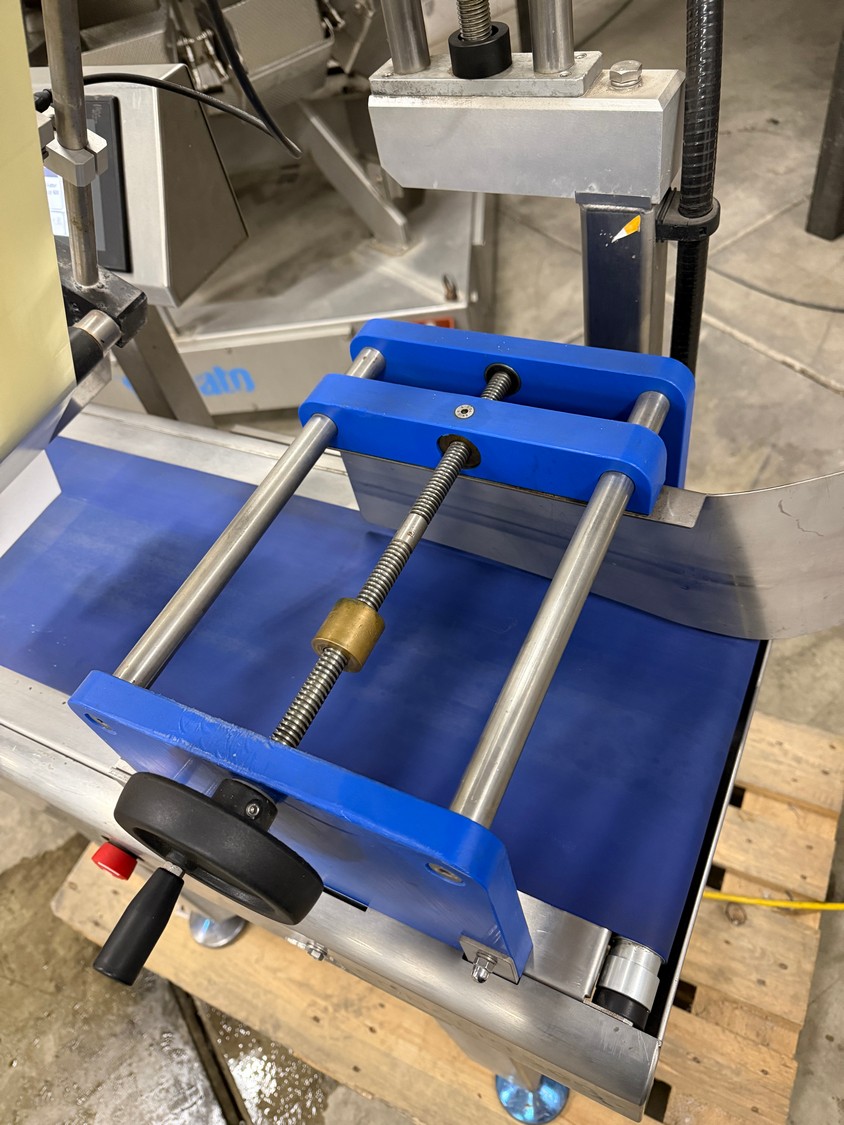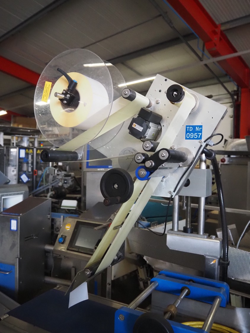 Marel labelling machine, model: CONCEPT 500, serial number: LA0700, year of construction: 2016, 230 V, 50/60 Hz, 4 A, 1 kW, weight: 160 kg, plastic belt, belt width: 240 mm, total dimensions: 900 mm x 700 mm x 1800 mm.