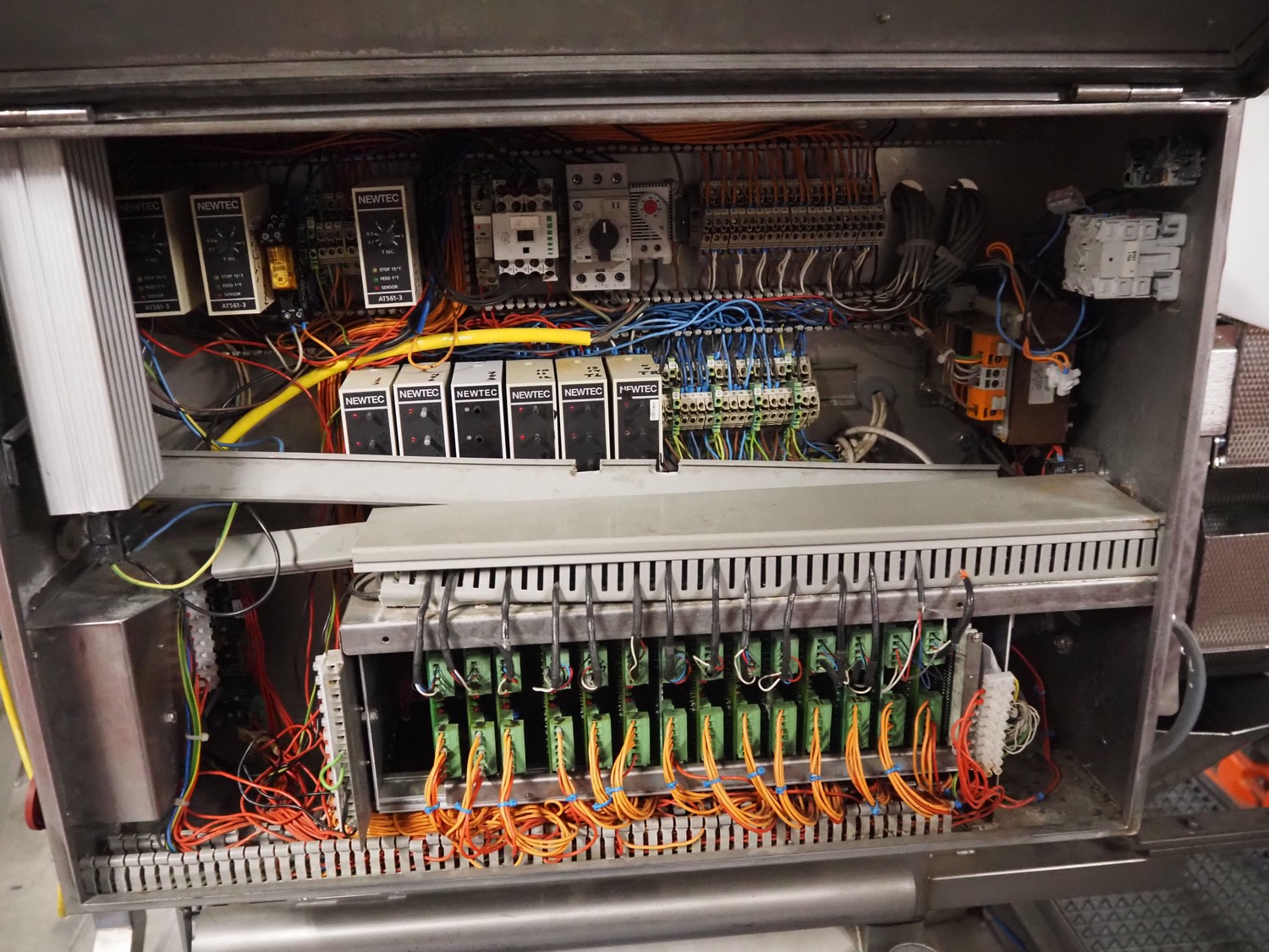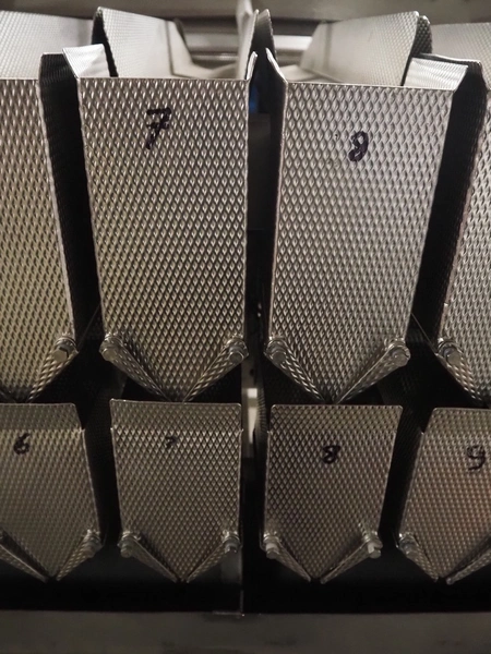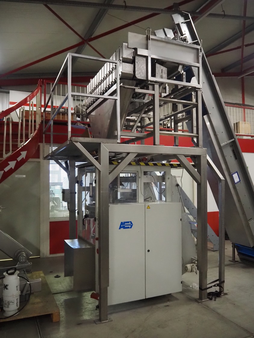 Newtec 14-lanes lineair weigher, type: 2014PC-2B, number: 5543, year of construction: 2000, 400 V, 3 Ph. 50 Hz, 9 A, lane width: 120 mm, dimension weigher: 2050 mm x 1300 mm x 1500 mm, dimensions platform: 3500 mm x 2900 mm x 3050 mm.