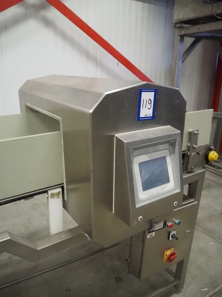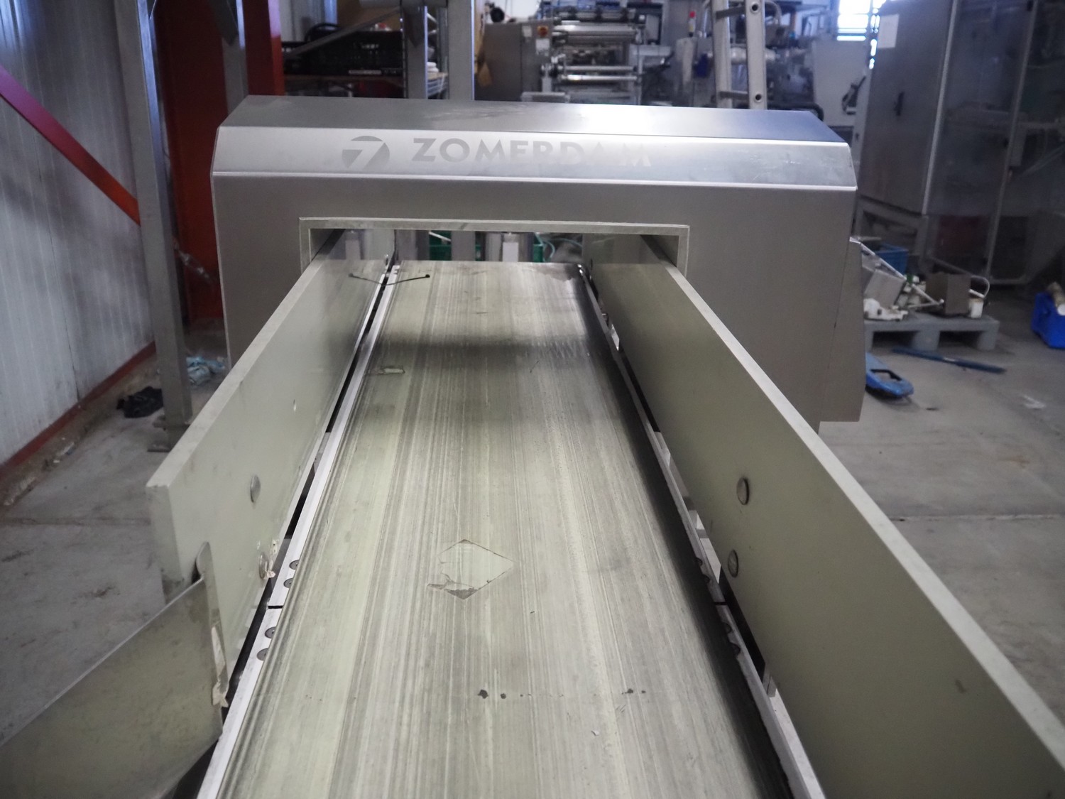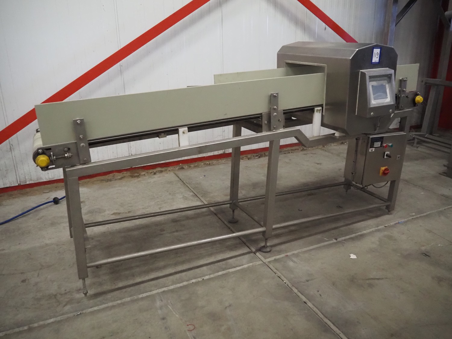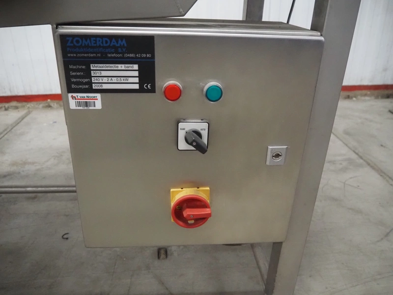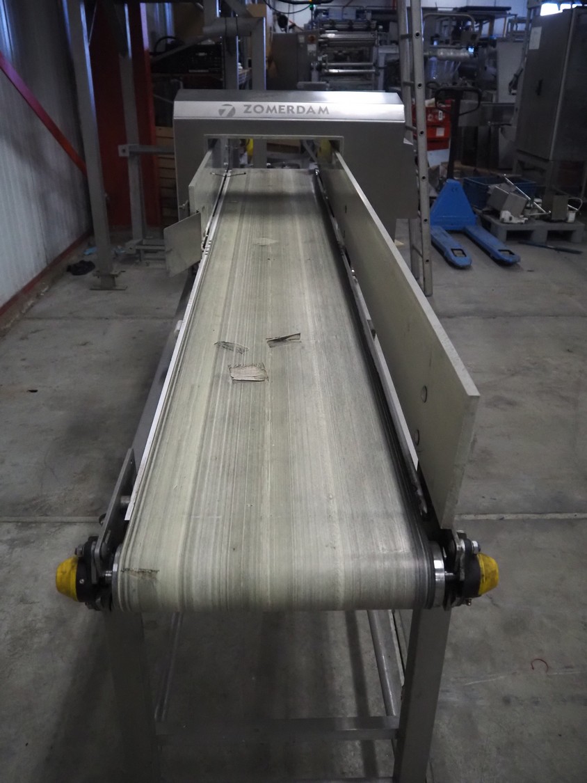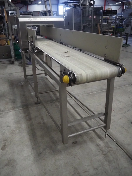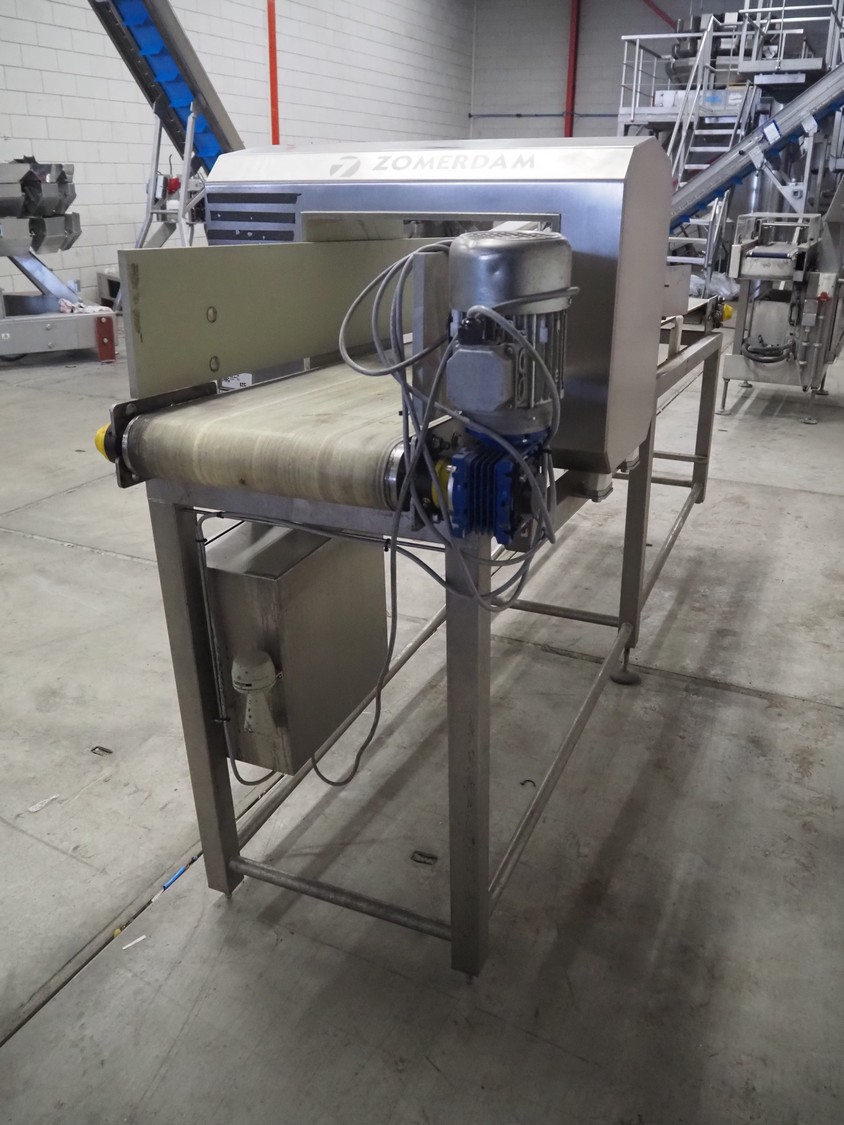 Zomerdam metal detector, type: MN 5.1 CI 450/300, serial number: 920921-CI, 240 V, 50/60 Hz, 2 A, 0.5 kW, plastic belt, belt width: 400 mm, clearance: 350 mm x 260 mm, total dimensions: 2650 mm x 950 mm x 1400 mm.