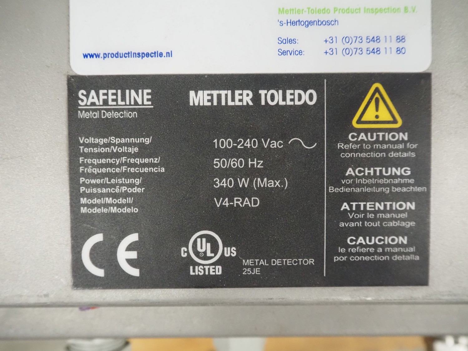 Mettler Toledo / Safeline metal detector head, type: R Series Profile, serial number: 891456, 100-240 V, 50-60 Hz, 340 W, clearance: 300 mm x 175 mm, total dimensions: 830 mm x 280 mm x 420 mm.