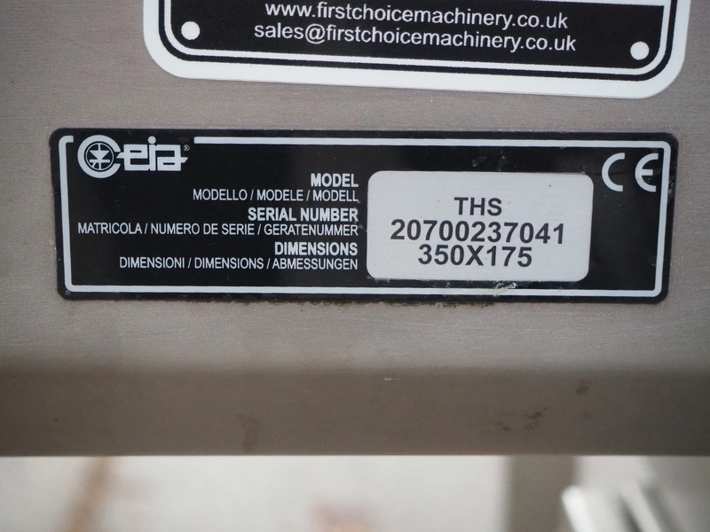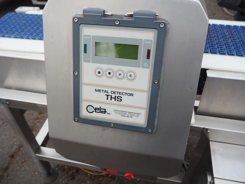 Ceia metal detector, model: THS, serial number: 20700237041, 230 V, 50-60 Hz, plastic mesh belt, belt width: 210 mm, clearance: 350 m x 150 mm, total dimensions: 1430 mm x 850 mm x 1100 mm.