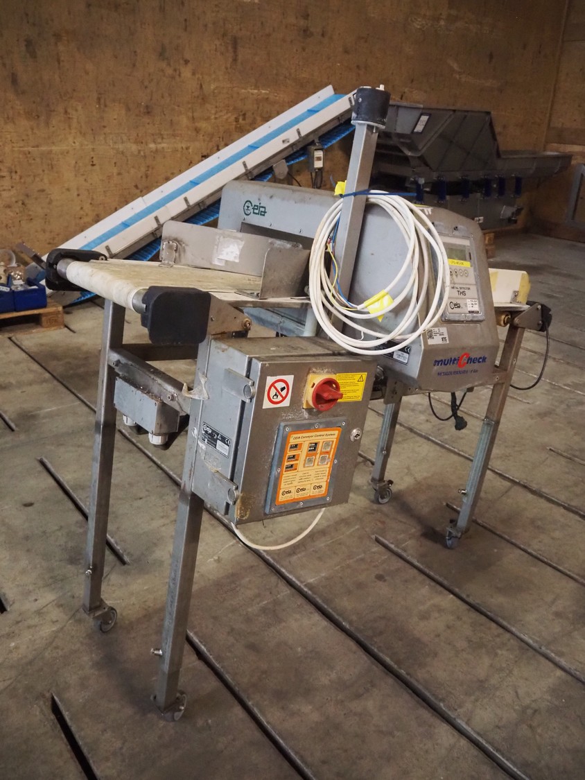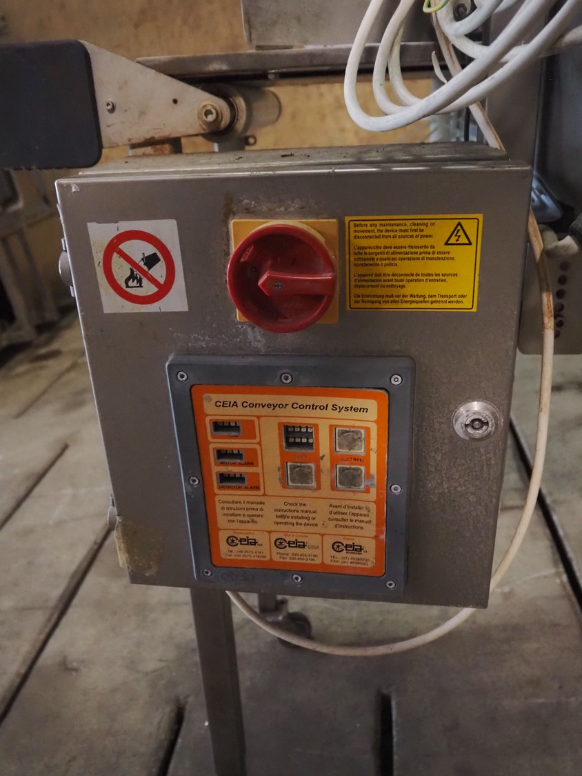 Ceia mobile metal detector, model: THS, serial number: 20300242023, 230 V, 50-60 Hz, plastic belt, belt width: 300 mm, clearance: 350 mm x 125 mm, total dimensions: 1450 mm x 800 mm x 1500 mm. Last calibrated: 2018.