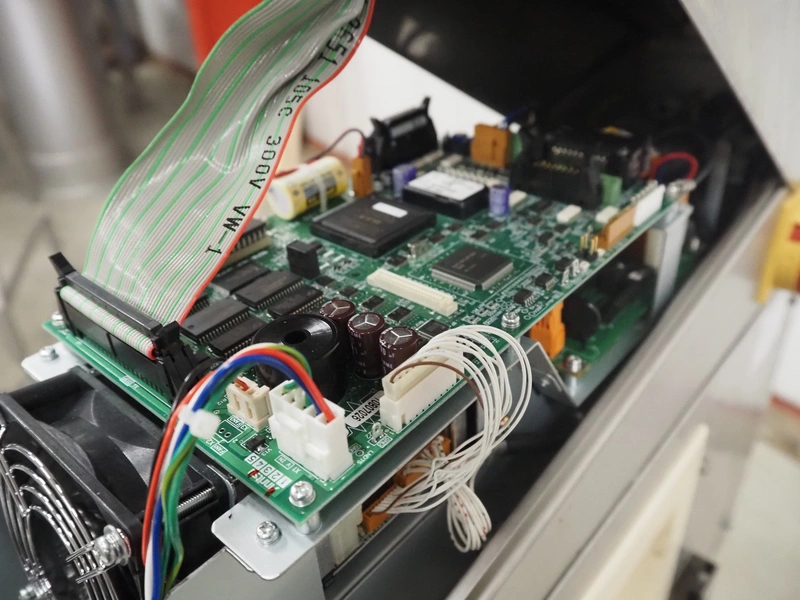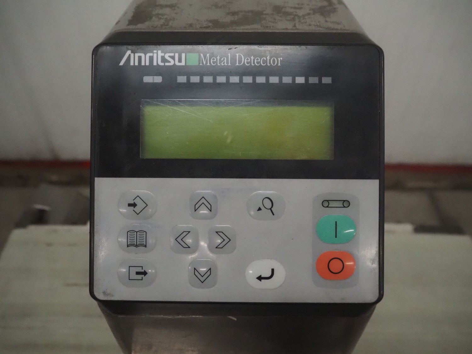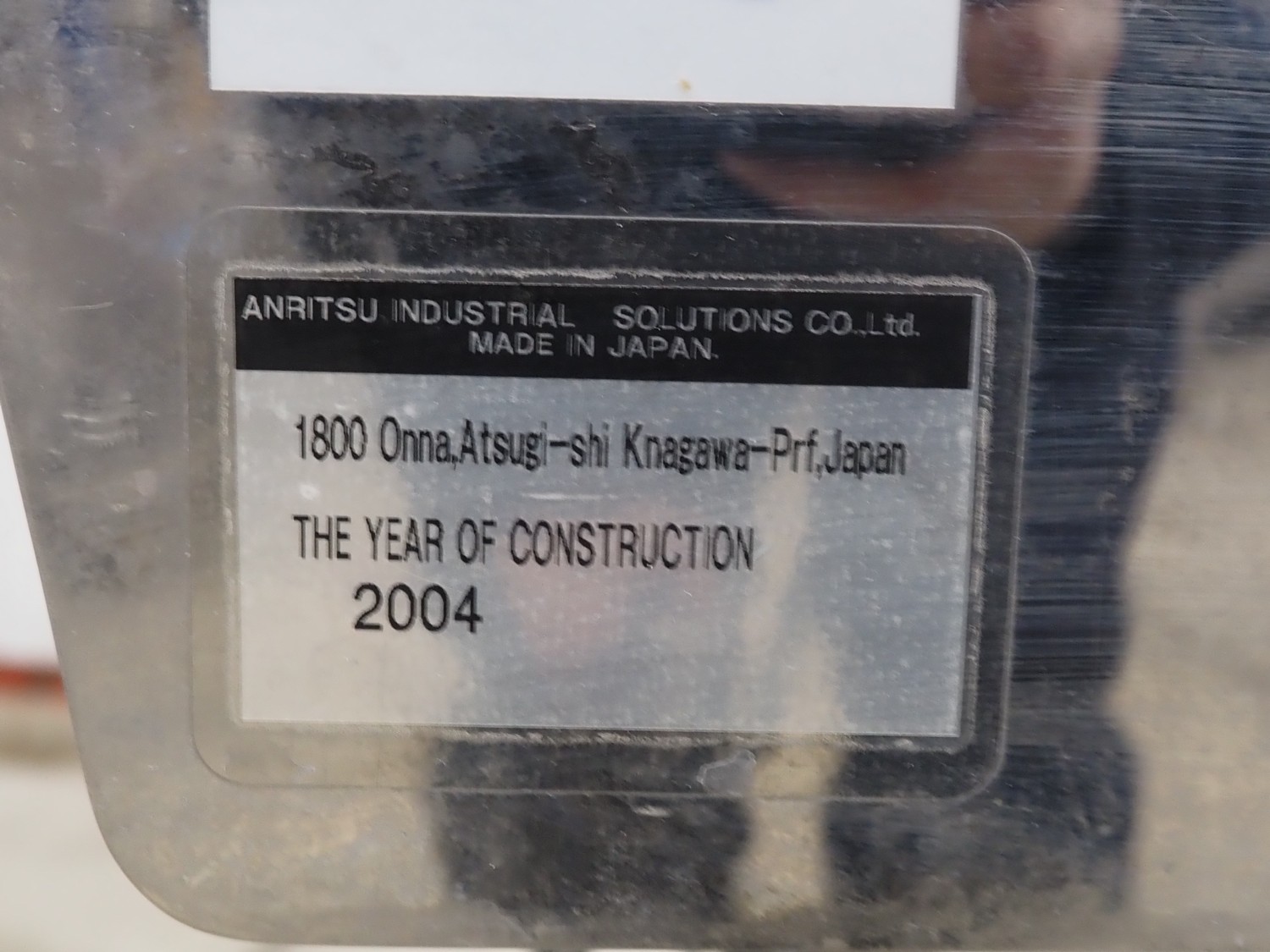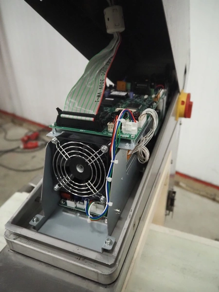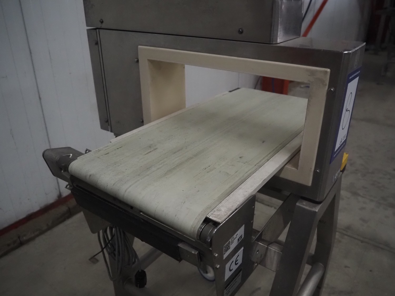 Anritsu mobile metal detector, type: KD8026AW, serial number: 4100049545, year of construction: 2004, 100-240 V, 1 Ph, 50/60 Hz, maximum product weight: 5 kg, plastic belt, belt width: 350 mm, clearance: 450 mm x 170 mm, total dimensions: 760 mm x 750 mm x 1130 mm.