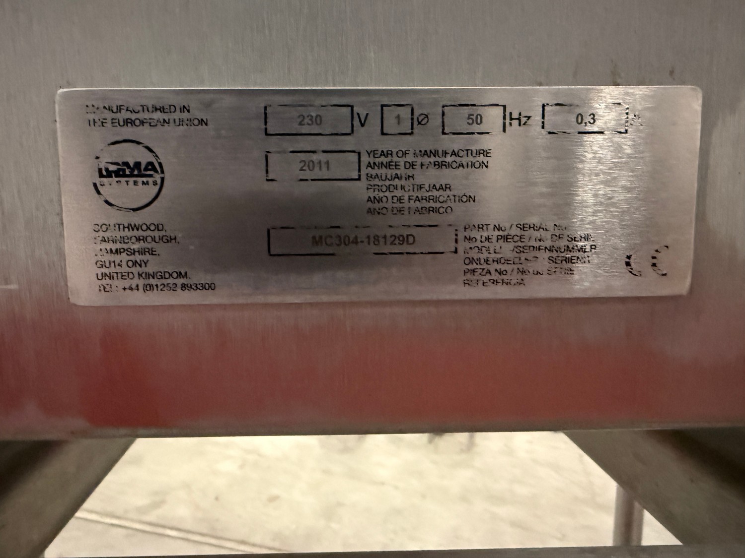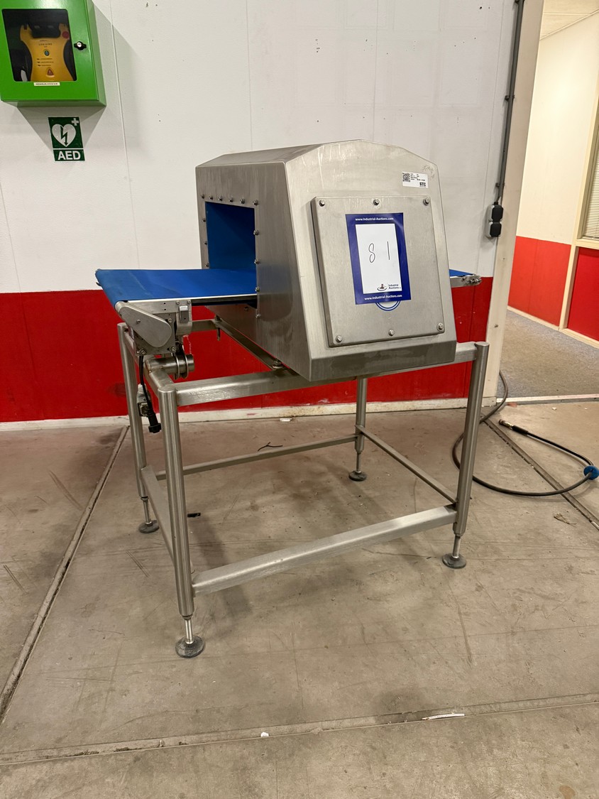 Loma Systems metal detector, model: IQ3, serial number: MC304-18129D, year of construction: 2011, 230 V, 1 Ph, 50 Hz, 0.3 A, plastic belt, belt width: 400 mm, clearance: 450 mm x 210 mm, total dimensions: 1050 mm x 900 mm x 1350 mm.