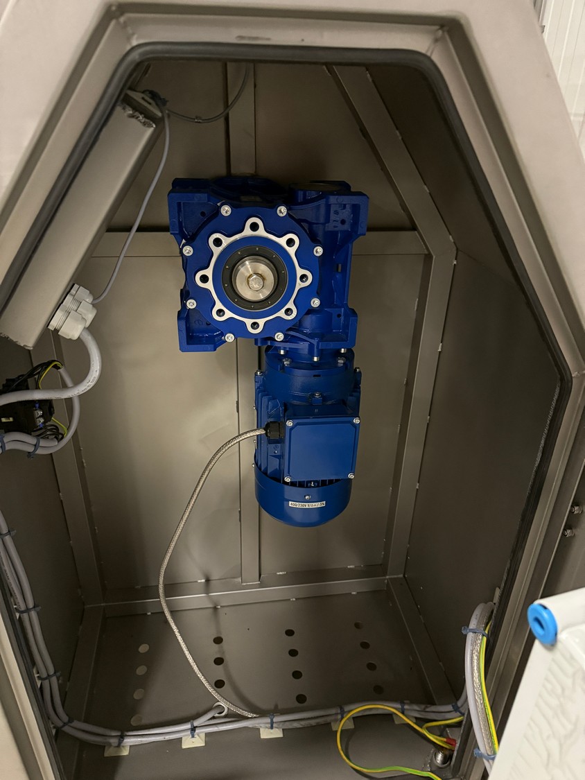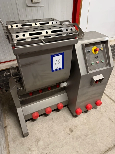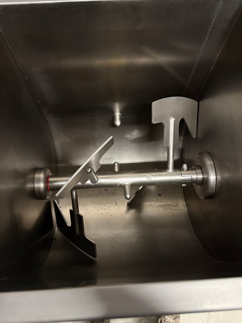 Niro-tech tiltable paddle-mixer, type: RX-150, inside dimensions: 520 mm x 500 mm x 500 mm, total dimensions: 700 mm x 1400 mm x 1640 mm.
