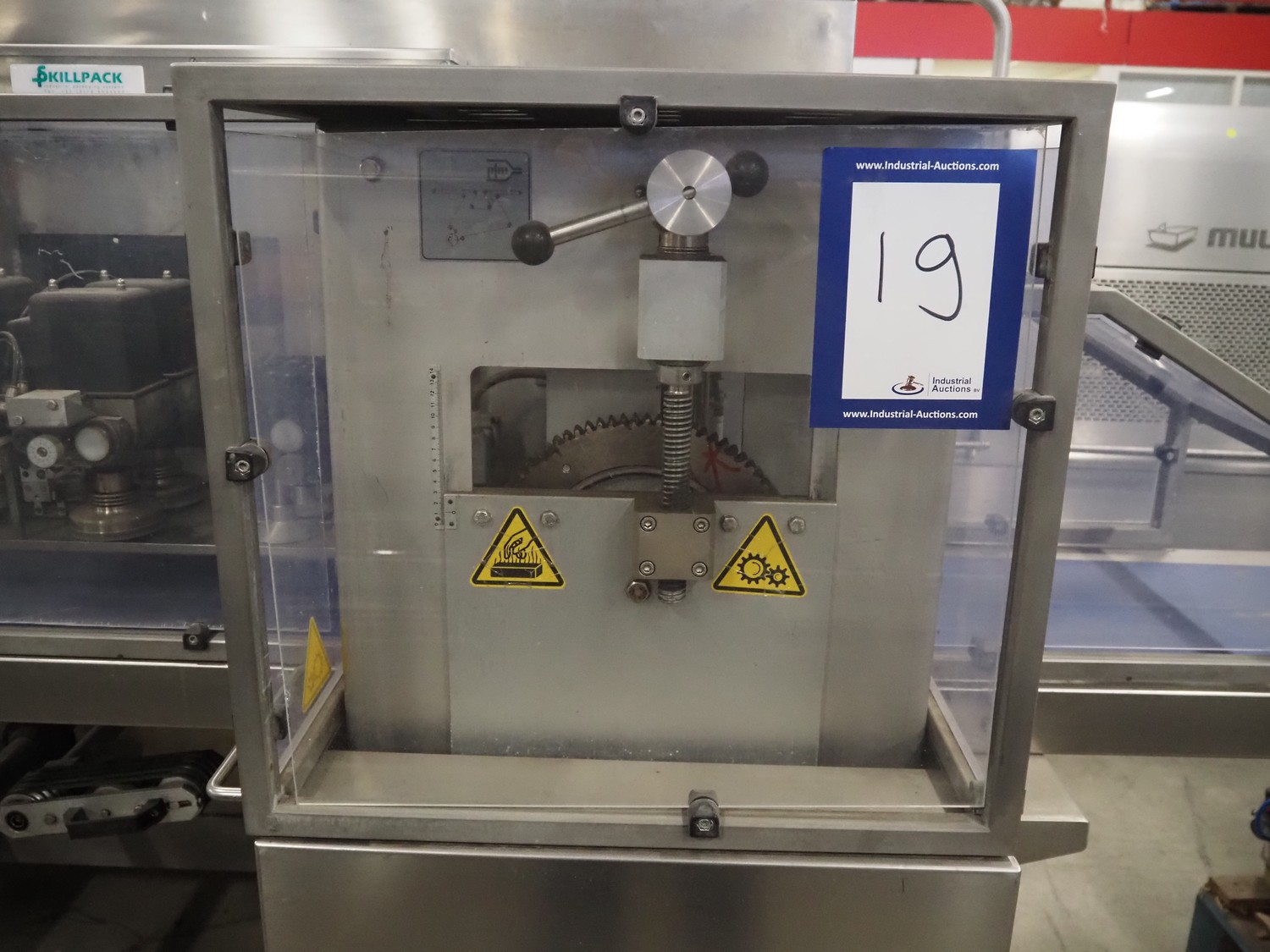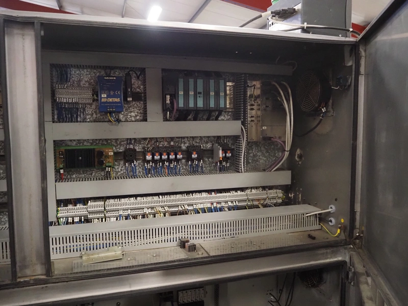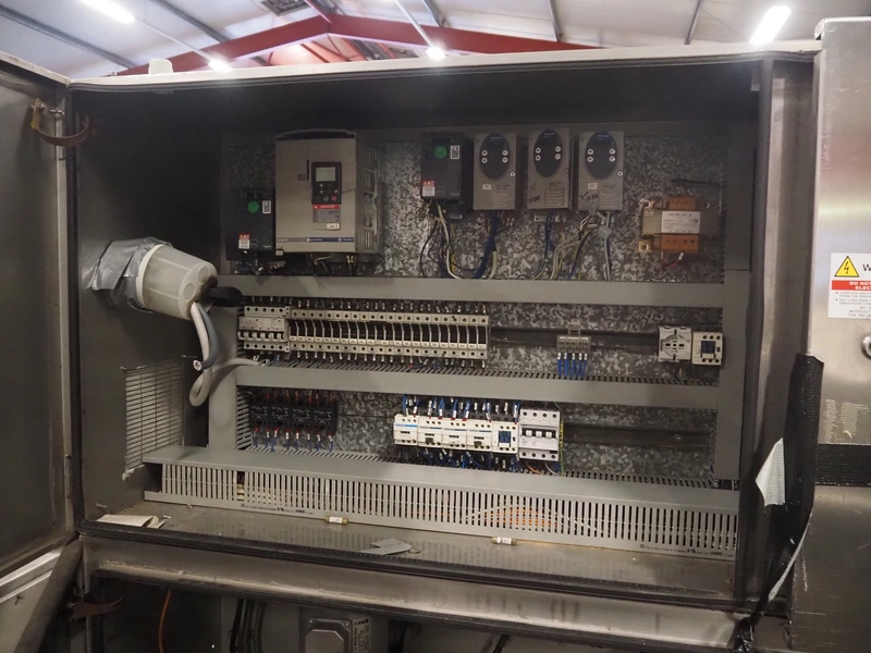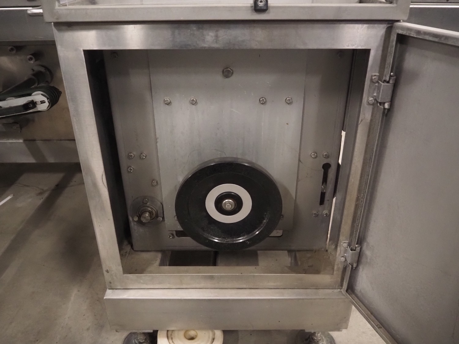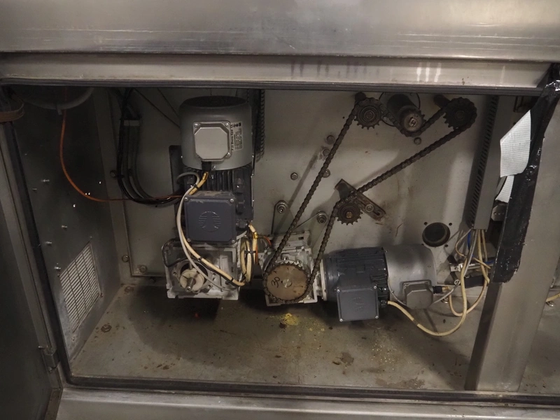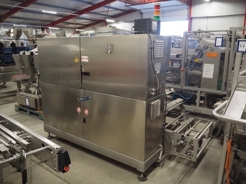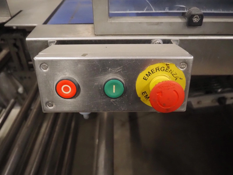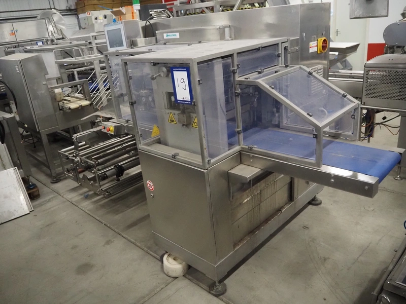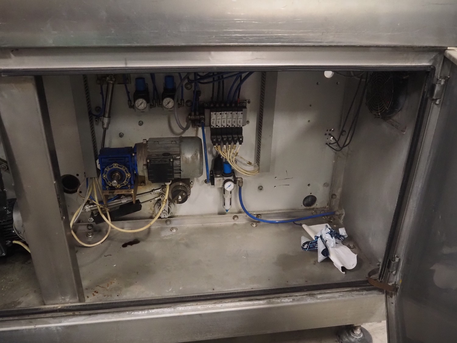 PFM flowpacker, model: SHAMAL INOX S, serial number: C. 7506, year of construction: 2005, 380 V, 50 Hz, 13.4 A, 7.5 kW, weight: 1050 kg, plastic belt, belt width: 350 mm, seal length: 350 mm, total dimensions: 3300 mm x 1500 mm x 1800 mm.