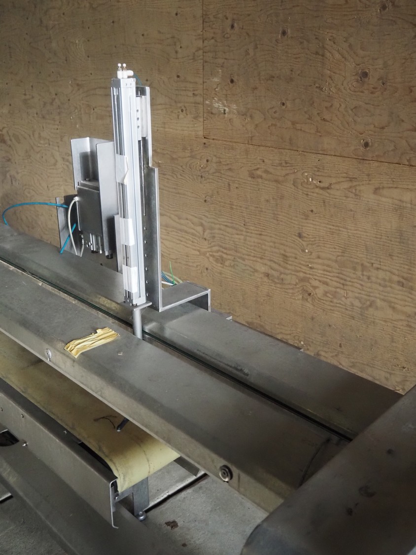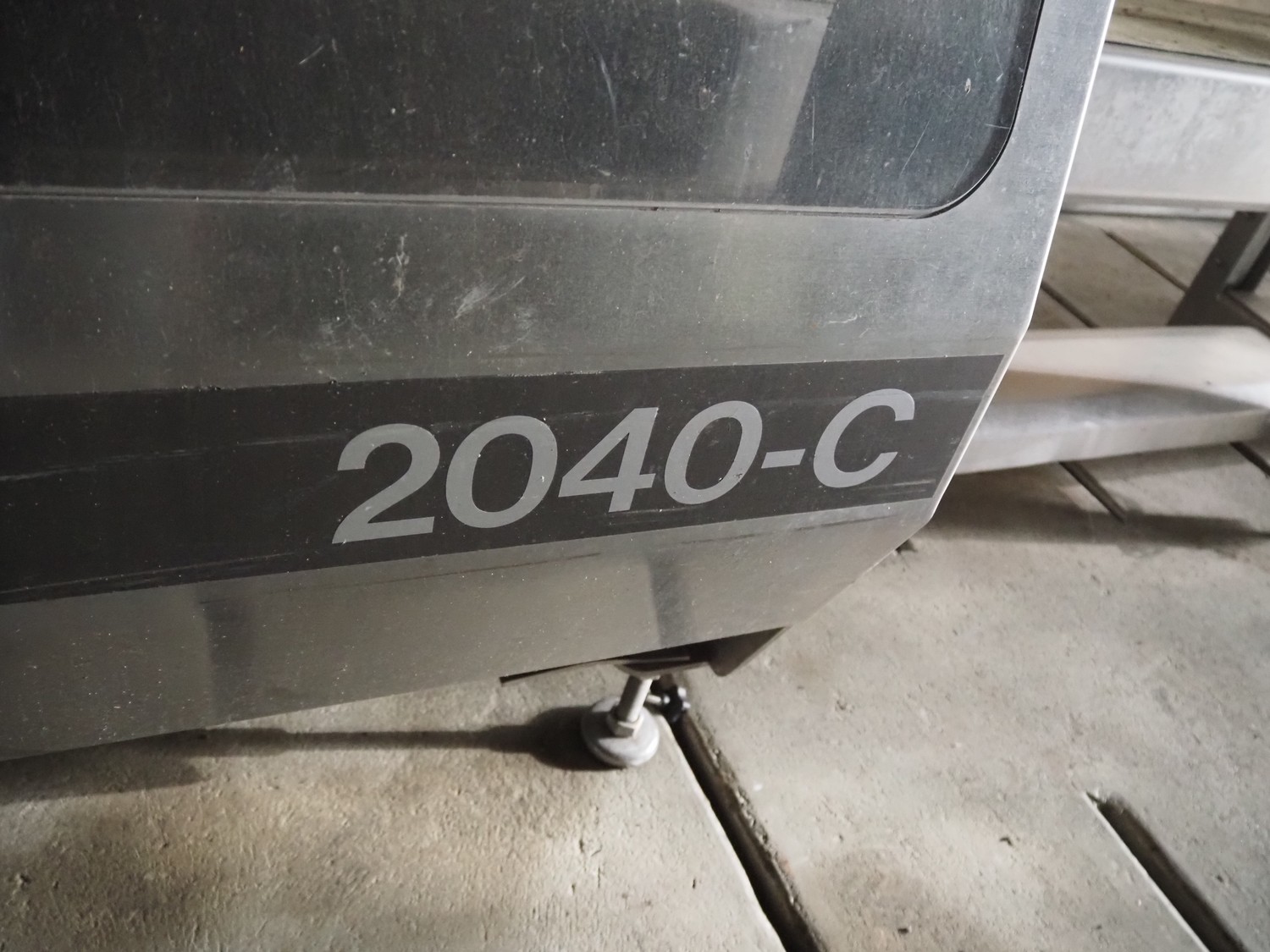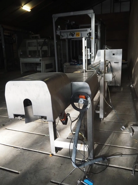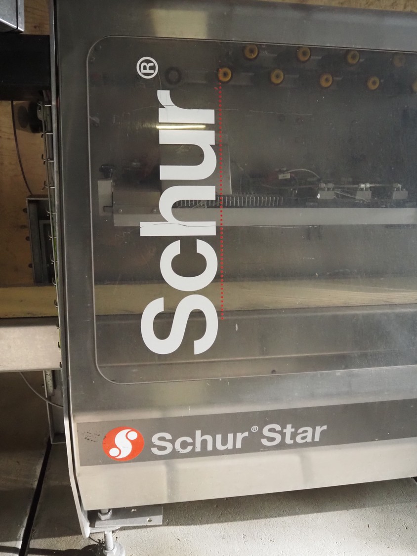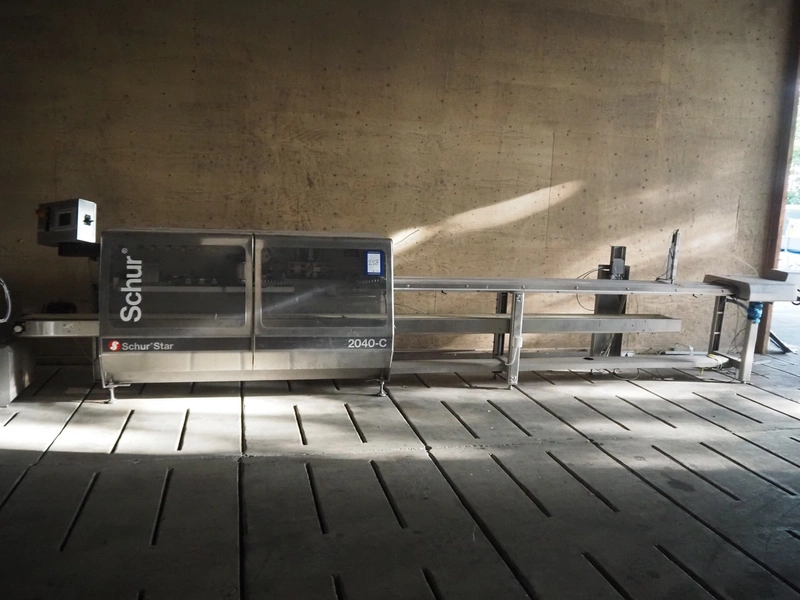 Schur Technology a/s bagging machine, type: 2040-C, number: 513 Y061, year of construction: 2010, plastic belt, belt width: 200 mm, seal length: 300 mm, total dimensions: 7100 mm x 1000 mm x 1550 mm.