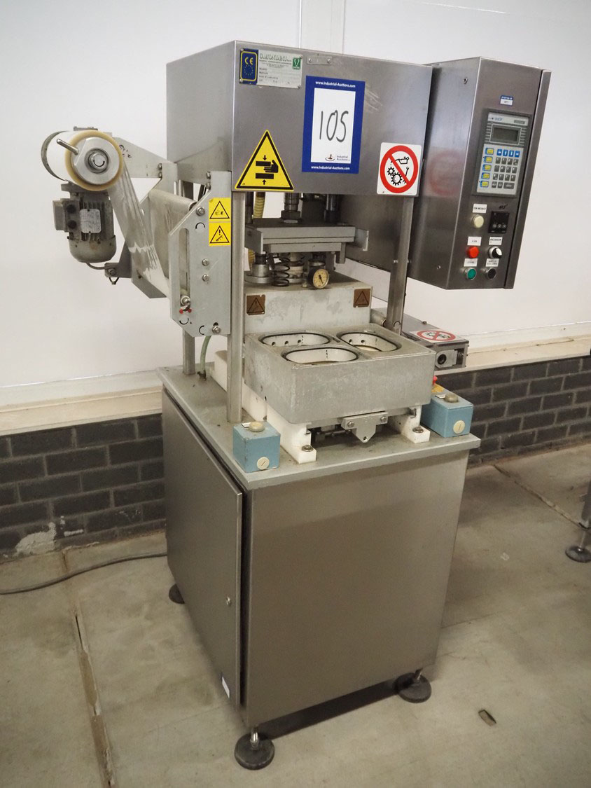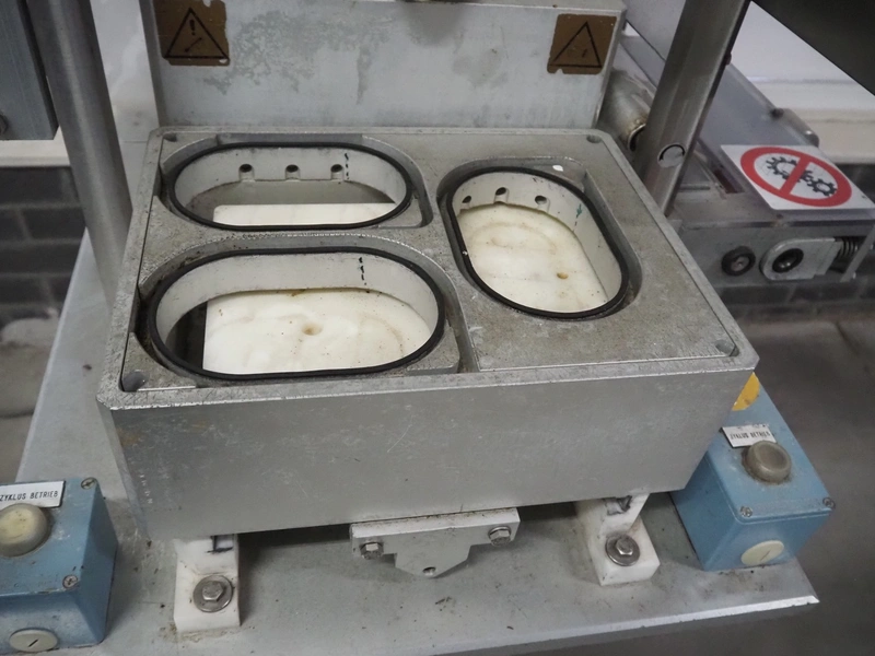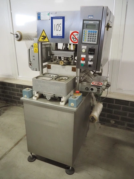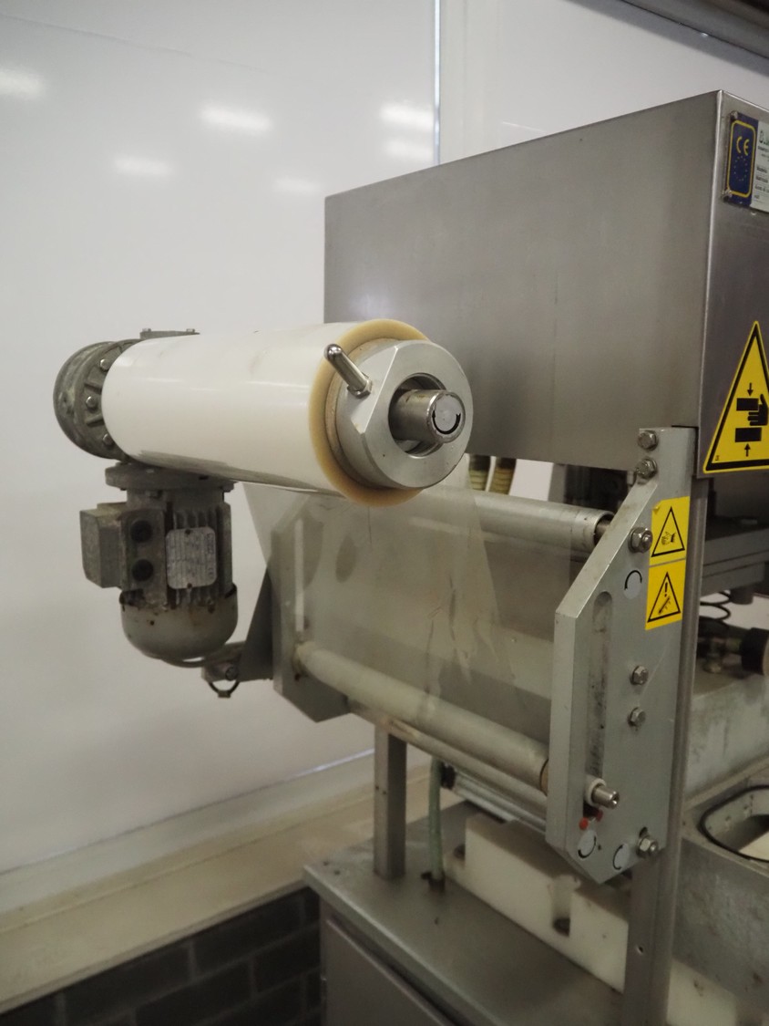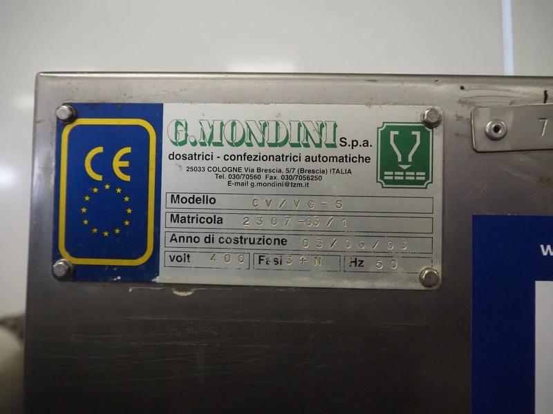 G. Mondini S.p.a. traysealer, model: CV/VG-S, machine number: 2307-03/1, year of construction: 2003, 400 V, 3 Ph, 50 Hz, Busch vacuum pump, type: RA 0040 E 501, film width: 330 mm, dimensions dye: (3x) oval 170 mm x 110 mm, total dimensions: 950 mm x 1150 mm x 1650 mm.