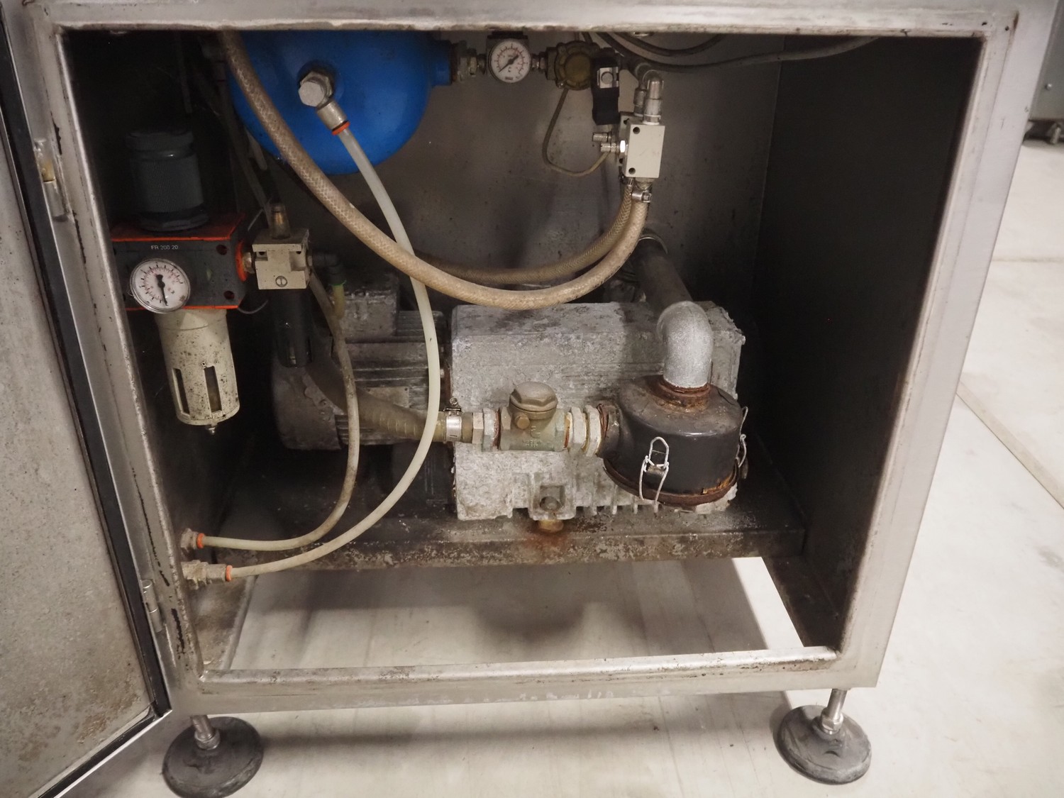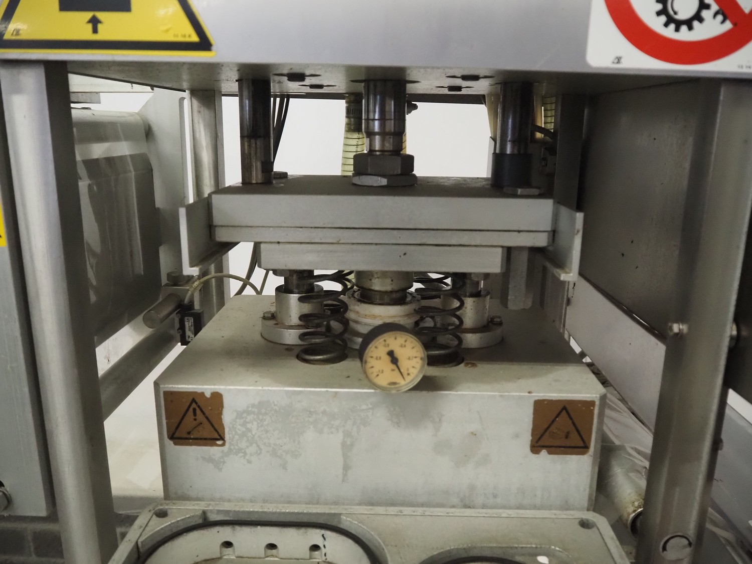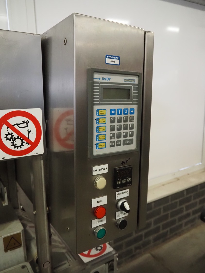 G. Mondini S.p.a. traysealer, model: CV/VG-S, machine number: 2307-03/1, year of construction: 2003, 400 V, 3 Ph, 50 Hz, Busch vacuum pump, type: RA 0040 E 501, film width: 330 mm, dimensions dye: (3x) oval 170 mm x 110 mm, total dimensions: 950 mm x 1150 mm x 1650 mm.