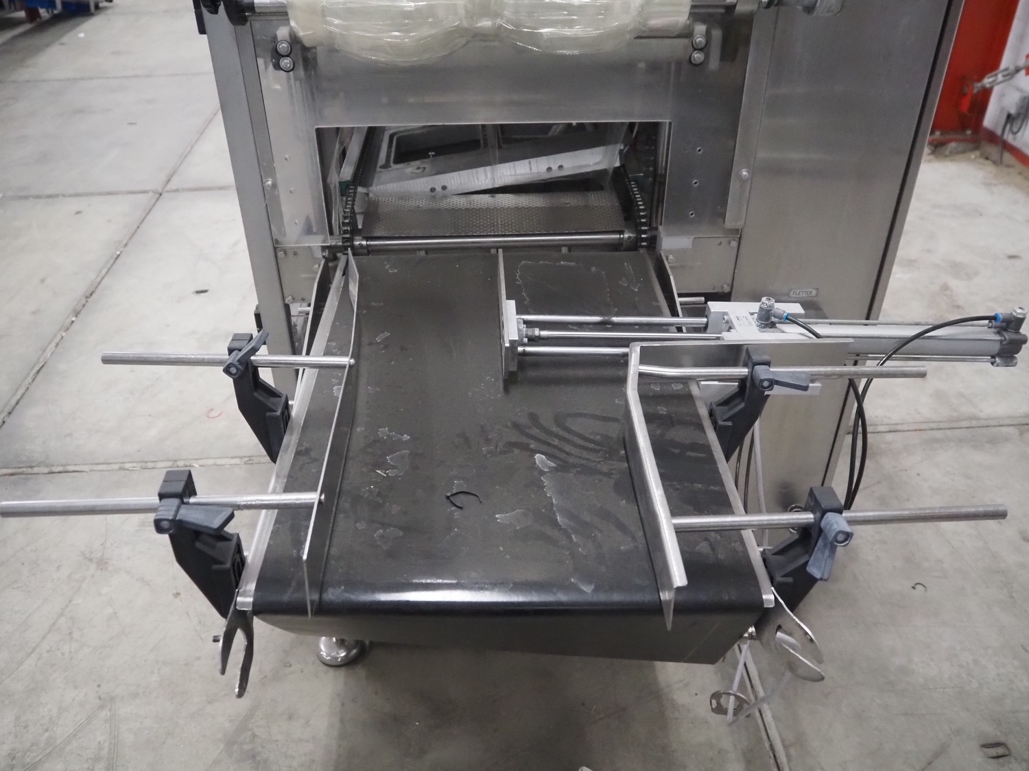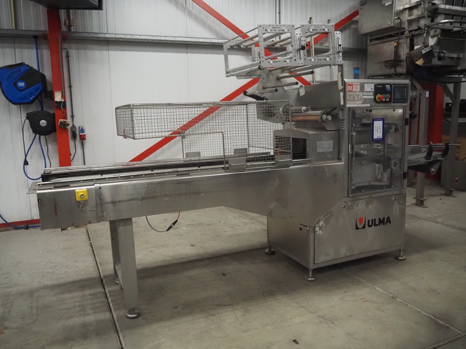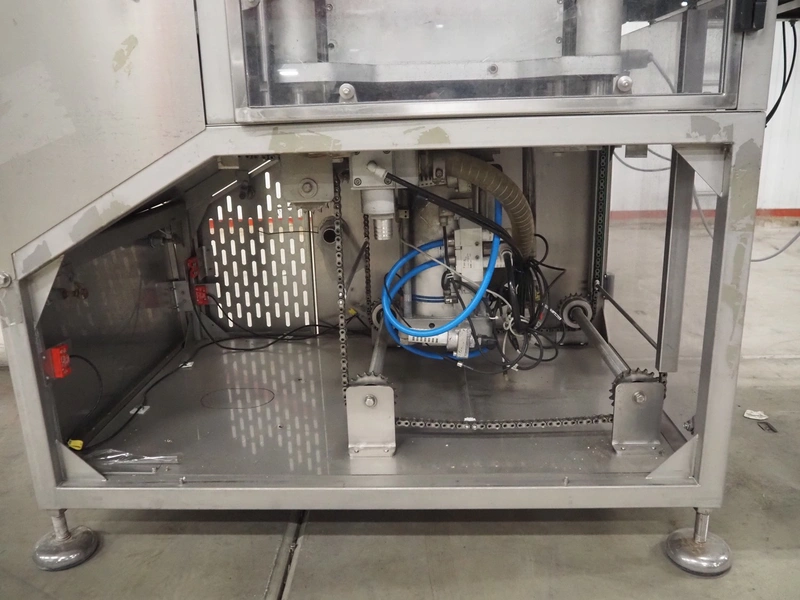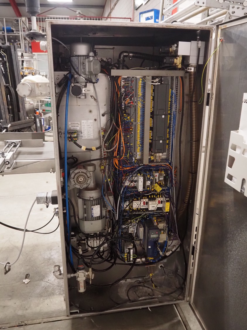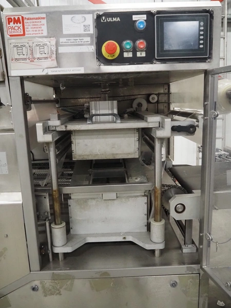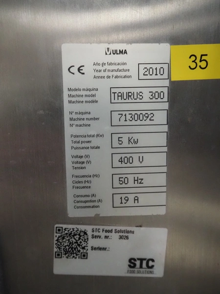 Ulma traysealer, model: TAURUS 300, serial number: 7130092, year of construction: 2010, 400 V, 50 Hz, 19 A, 5 kW, barcode printer, belt width: (2x) 160 mm, clearance: 520 mm x 240 mm, dye: (2x) 175 mm x 175 mm, index: 280 mm, plastic belt, belt width: 450 mm, total dimensions: 4150 mm x 1100 mm x 2100 mm. Without vacuum pump.