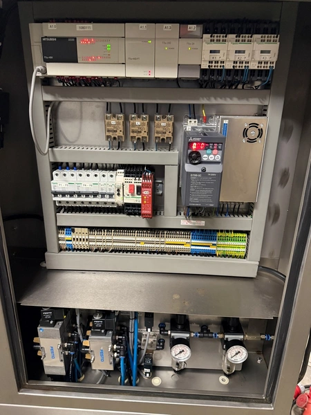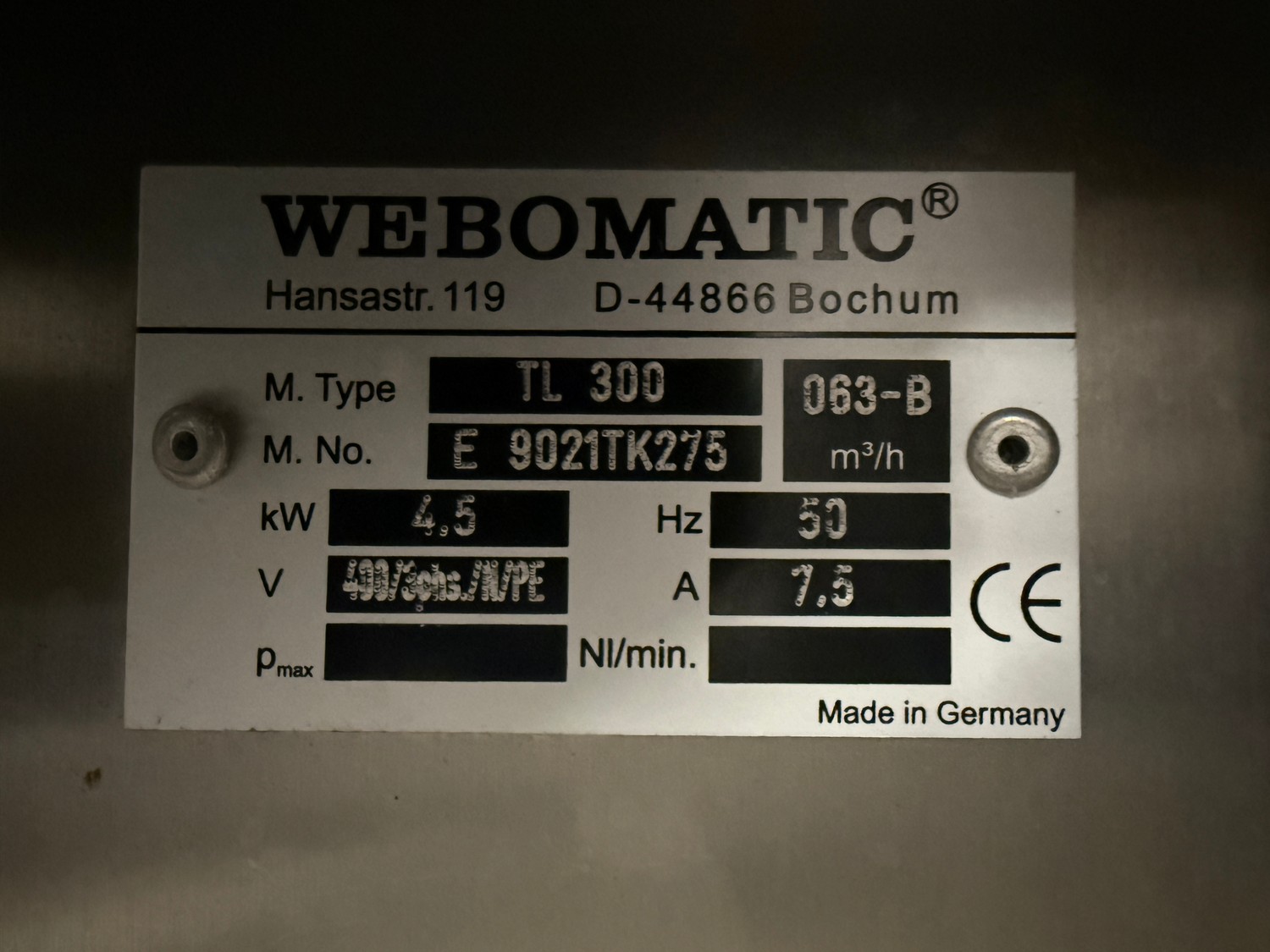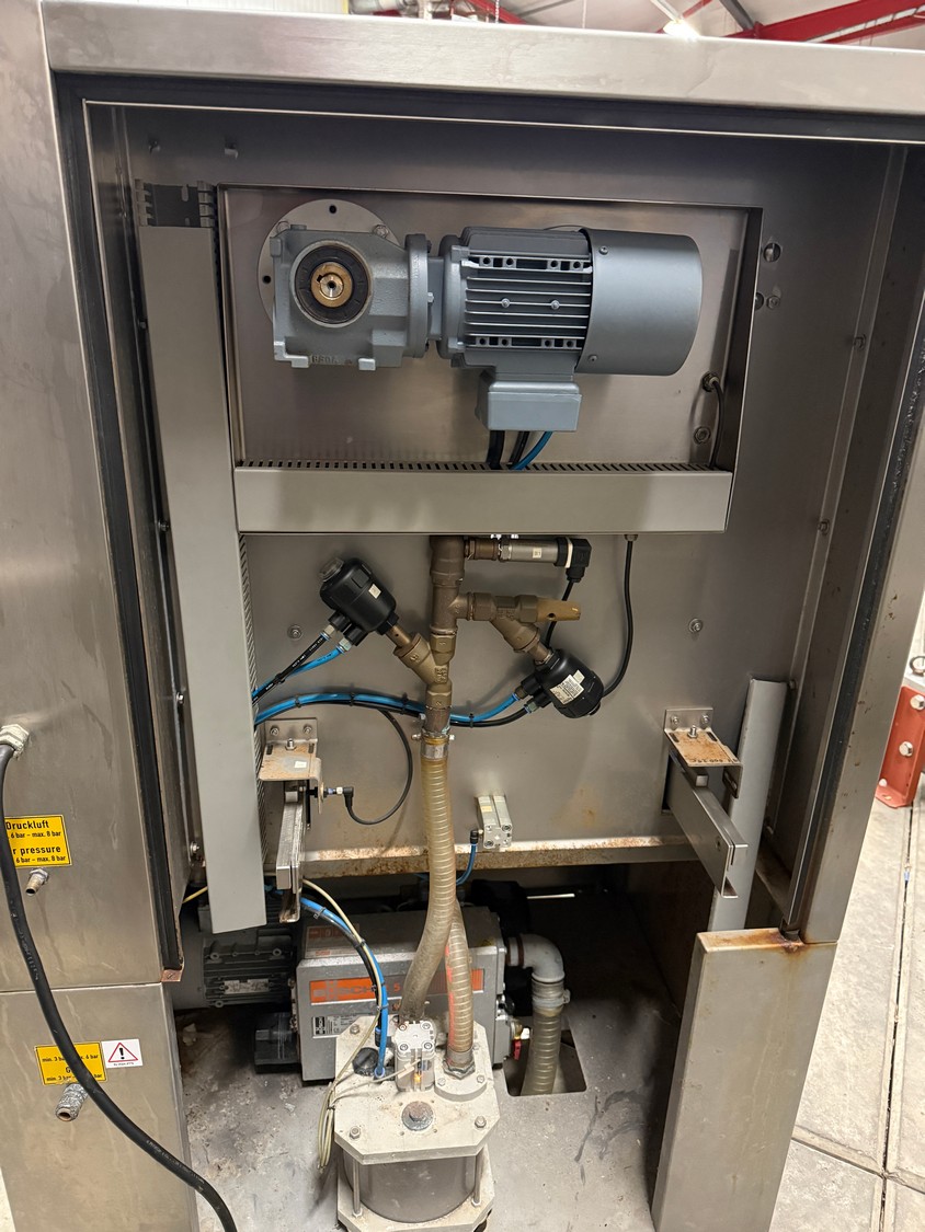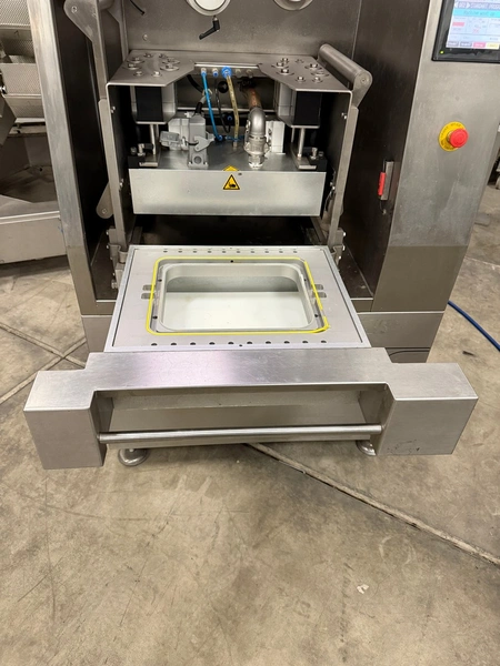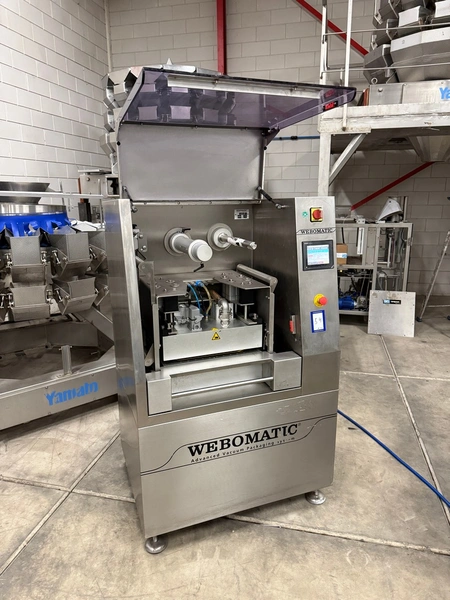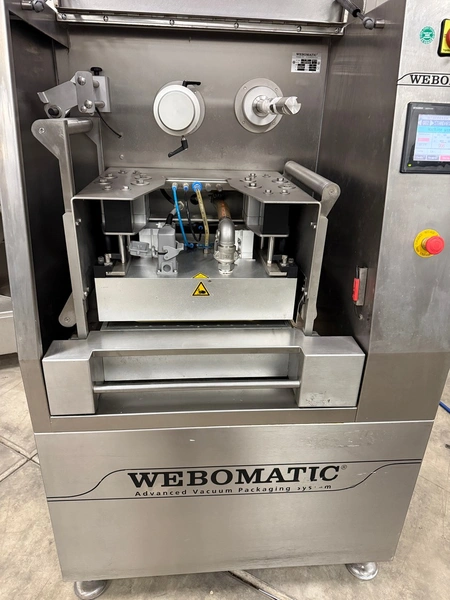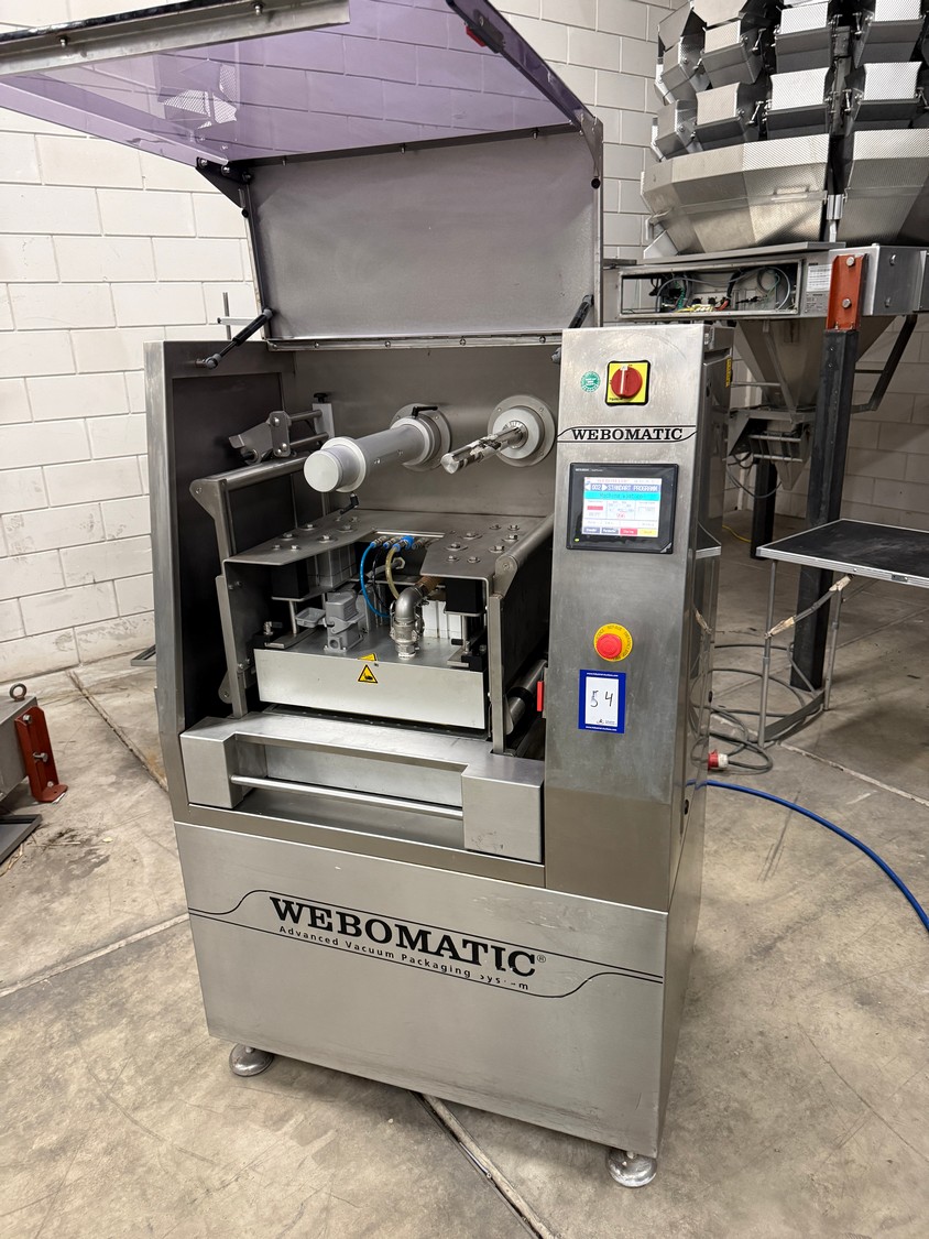 Webomatic traysealer, type: TL 300, number: E 9021TK275, 400 V, 3 Ph, 50 Hz, 7.5 A, 4.5 kW, dye: 320 mm x 260 mm, Busch vacuum pump, type: RA 0055 F 503, capacity: 55 m³ per hour, total dimensions: 1000 mm x 800 mm x 600 mm.