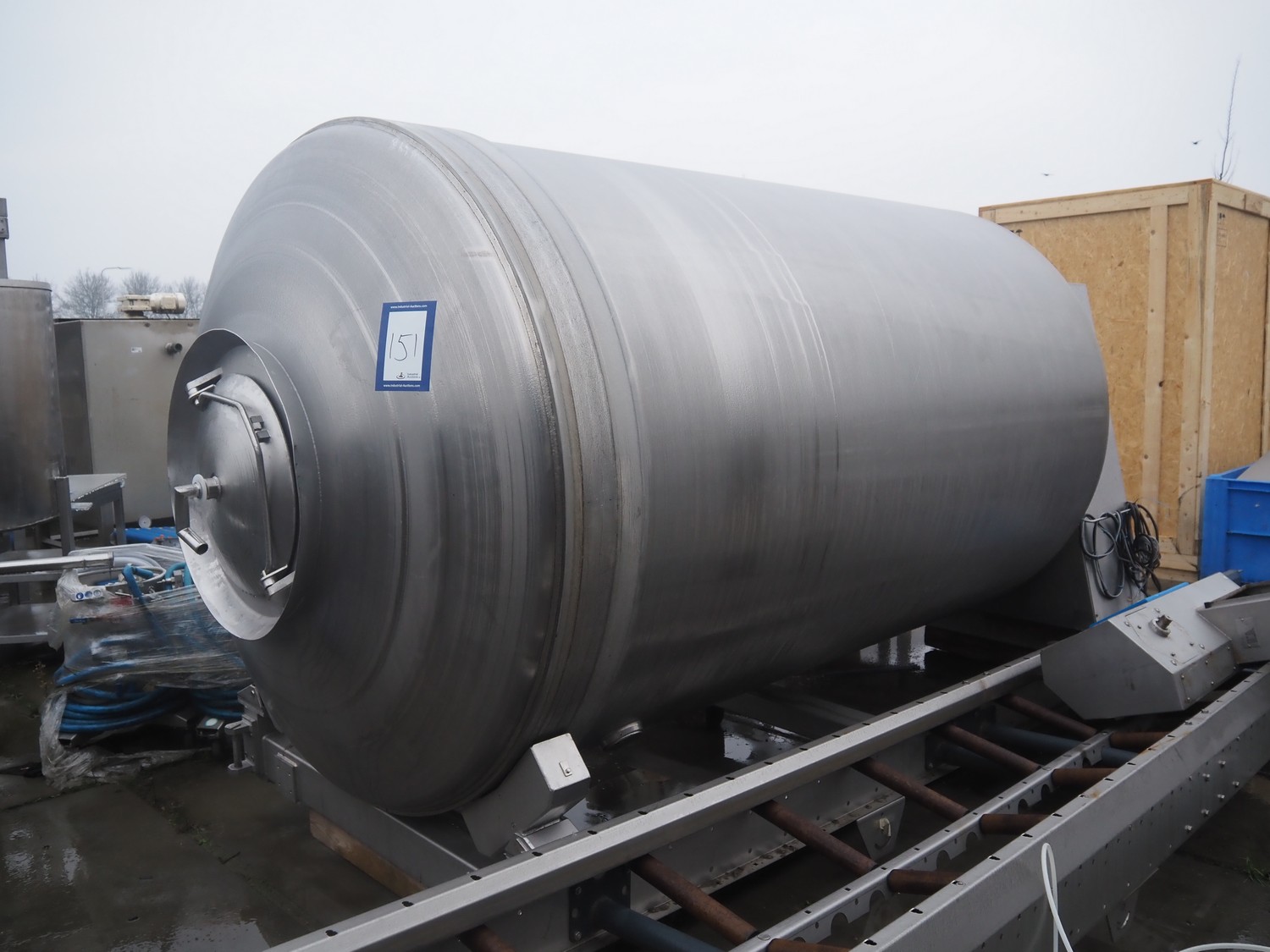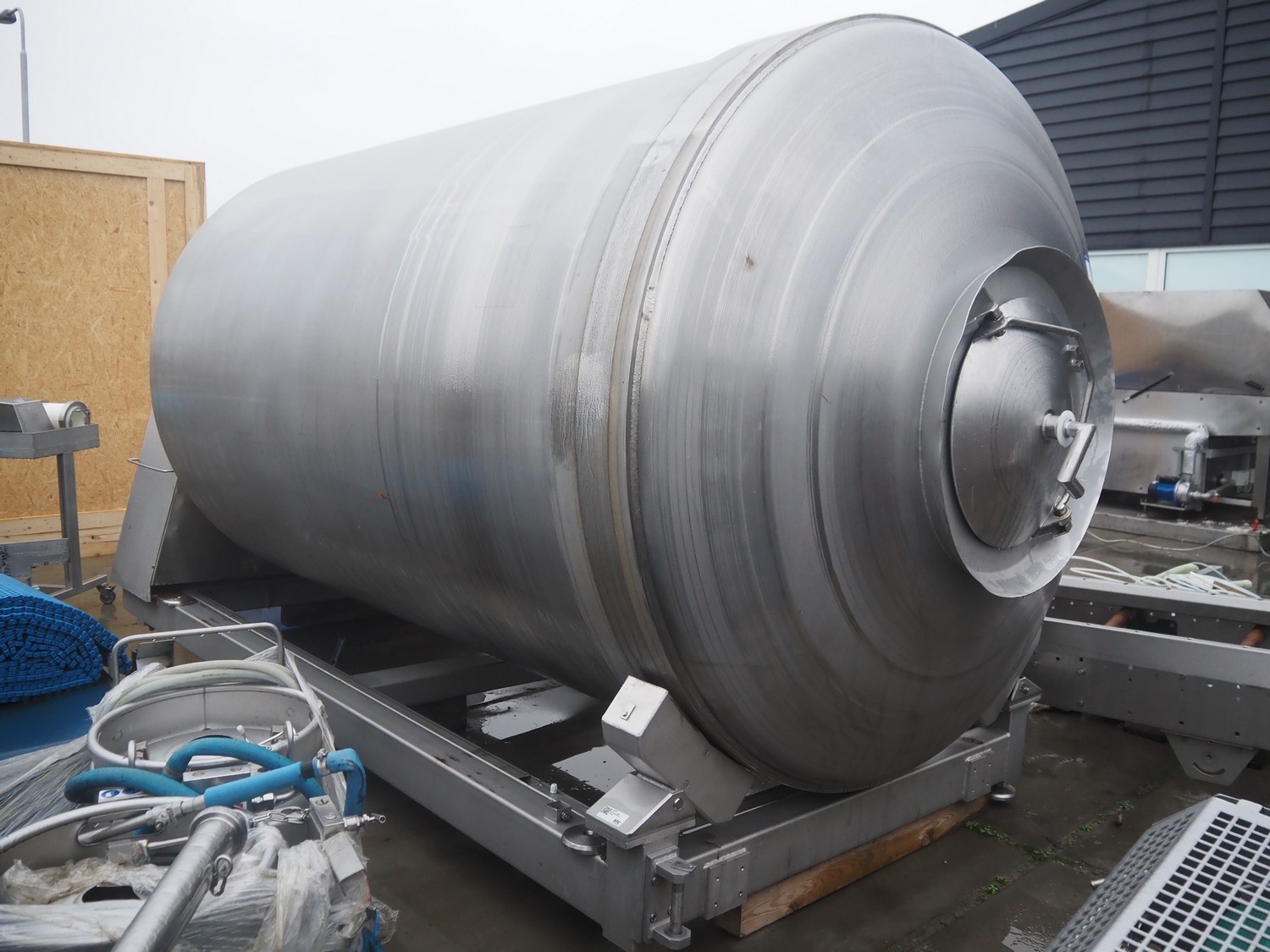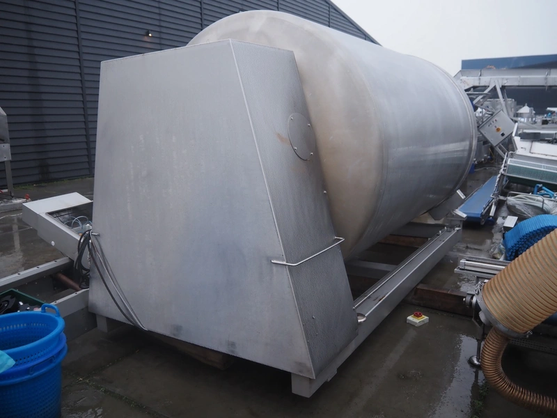 S/s tumbler, tub dimensions: Ø 1850 mm x 3200 mm, total dimensions: 4000 mm x 1850 mm x 2200 mm.