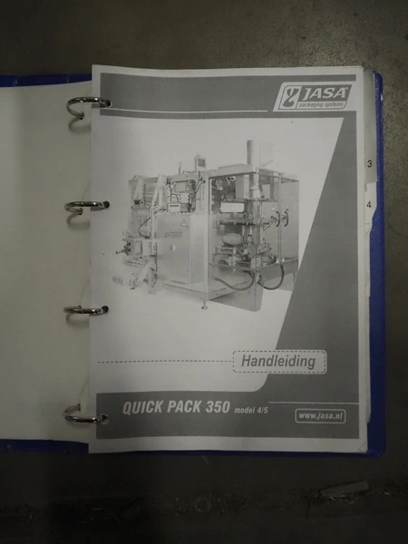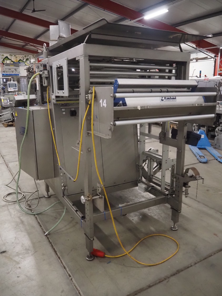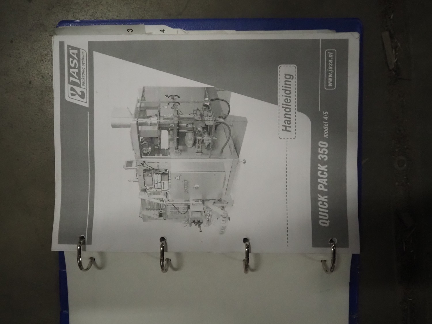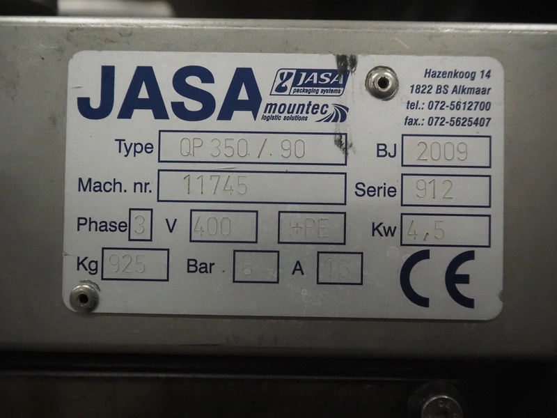 Jasa Packaging Systems vertical form- fill- and seal machine, type: QP 350/90, machine number: 11745, year of construction: 2009, 400 V, 3 Ph, 50 Hz, 18 A, 4.5 kW, vertical seal length: 480 mm, horizontal seal length: 395 mm, total dimensions: 2700 mm x 1700 mm x 2400 mm.