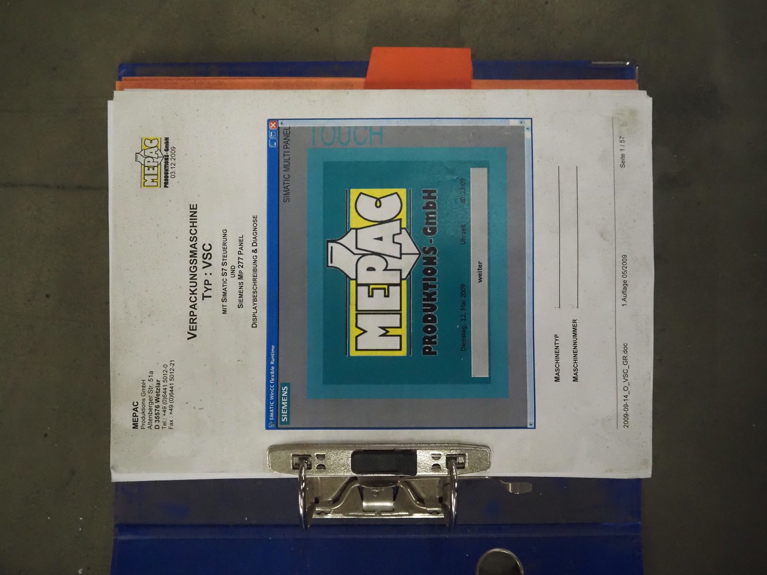 Mepac Productions GmbH vertical form- fill- and seal machine, type: VSC 420 IS, serial number: 25.11.08.01, year of construction: 2009, seal length: 130 mm and 450 mm, dimensions: 2950 mm x 1850 mm x 2900 mm.