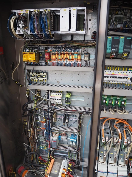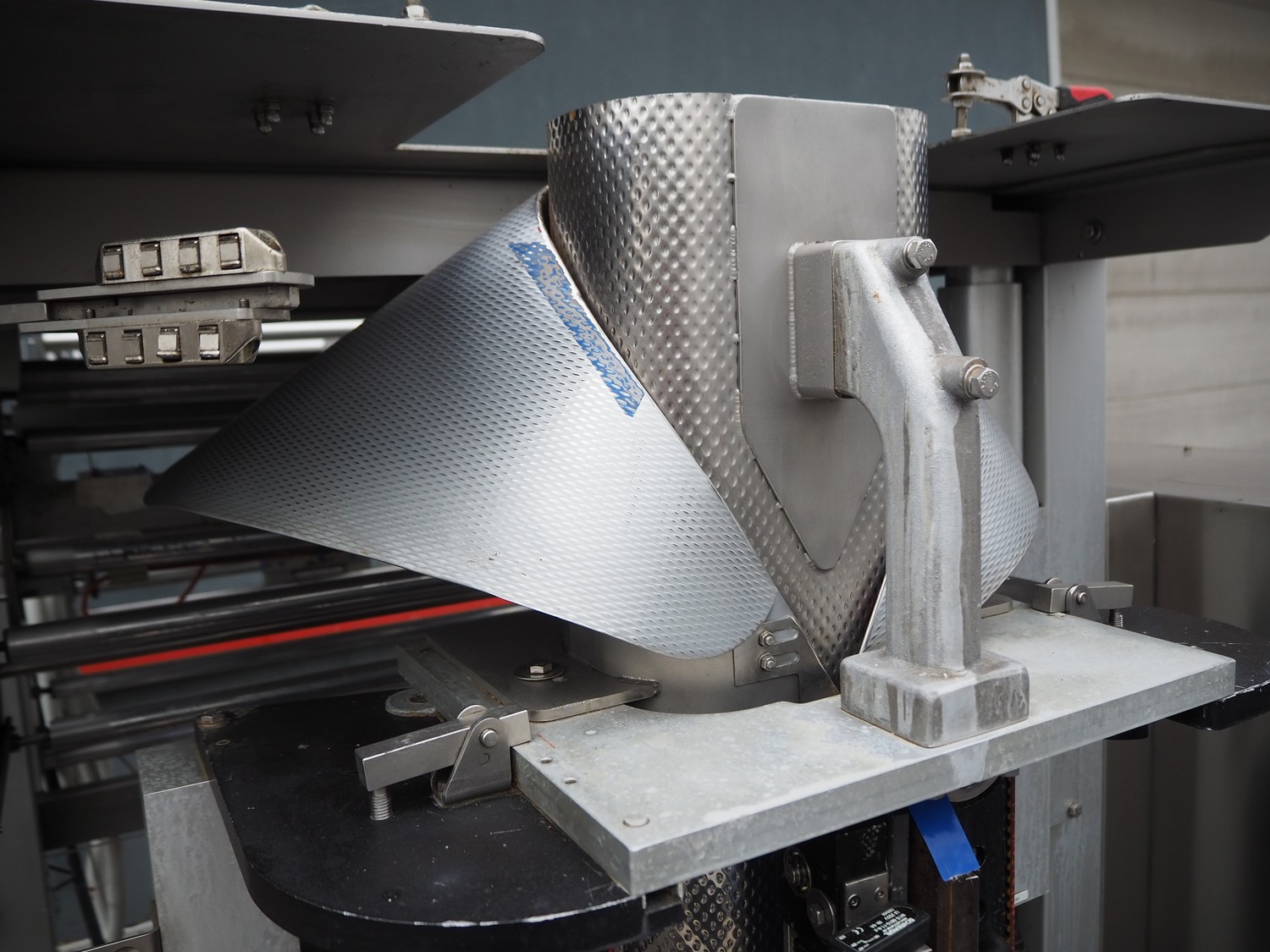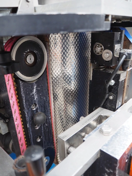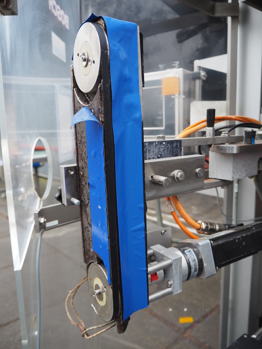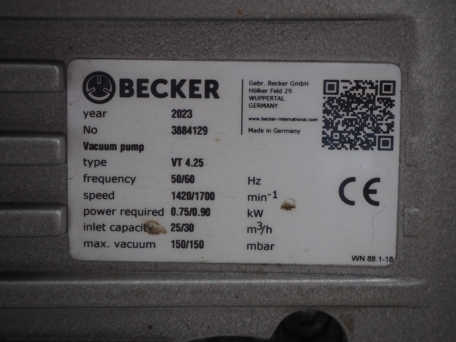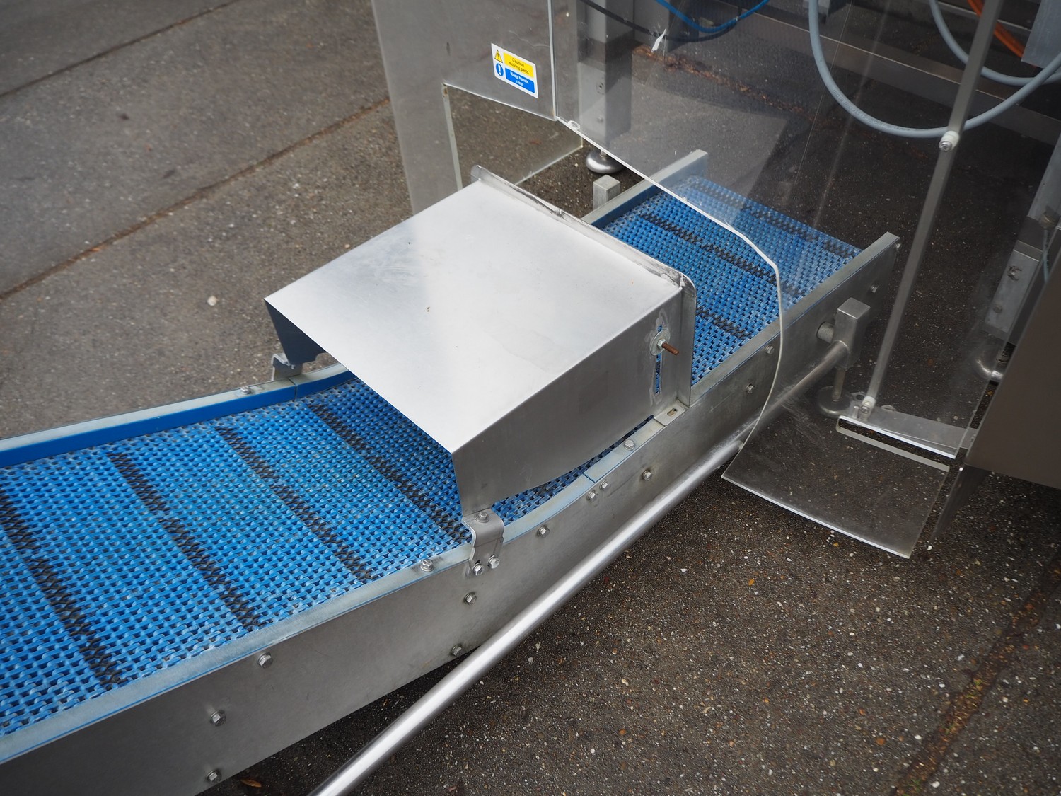 Bosch vertical bag form-, fill-, and seal machine, type: SVE 3615 LR, number: 705950MS7536N, year of construction: 2008, Becker vacuum pump, type: VT 4.25, weight: 1450 kg, film width: 710 mm, dimensions pipe: 230 mm x 155 mm, horizontal seal length: 375 mm, total dimensions: 1850 mm x 2550 mm x 2000 mm. Incomplete, vertical seal is missing. Including outfeed elevating belt with plastic mesh belt , belt width: 455 mm, elevating height: 860 mm, total dimensions outfeed belt: 2800 mm x 800 mm x 890 mm.