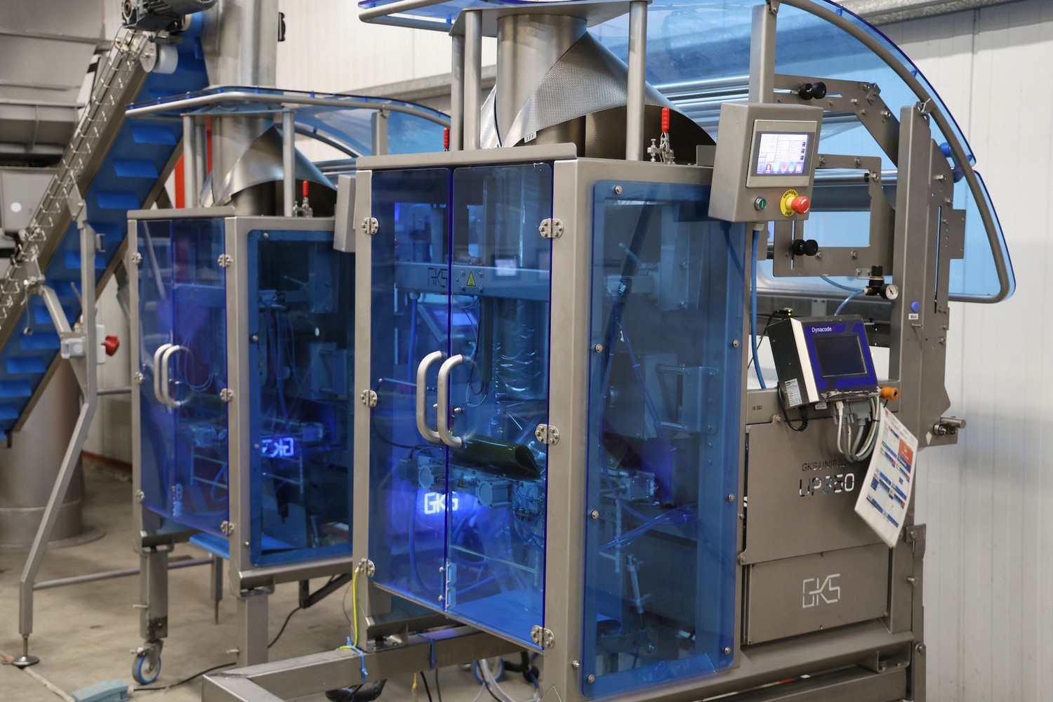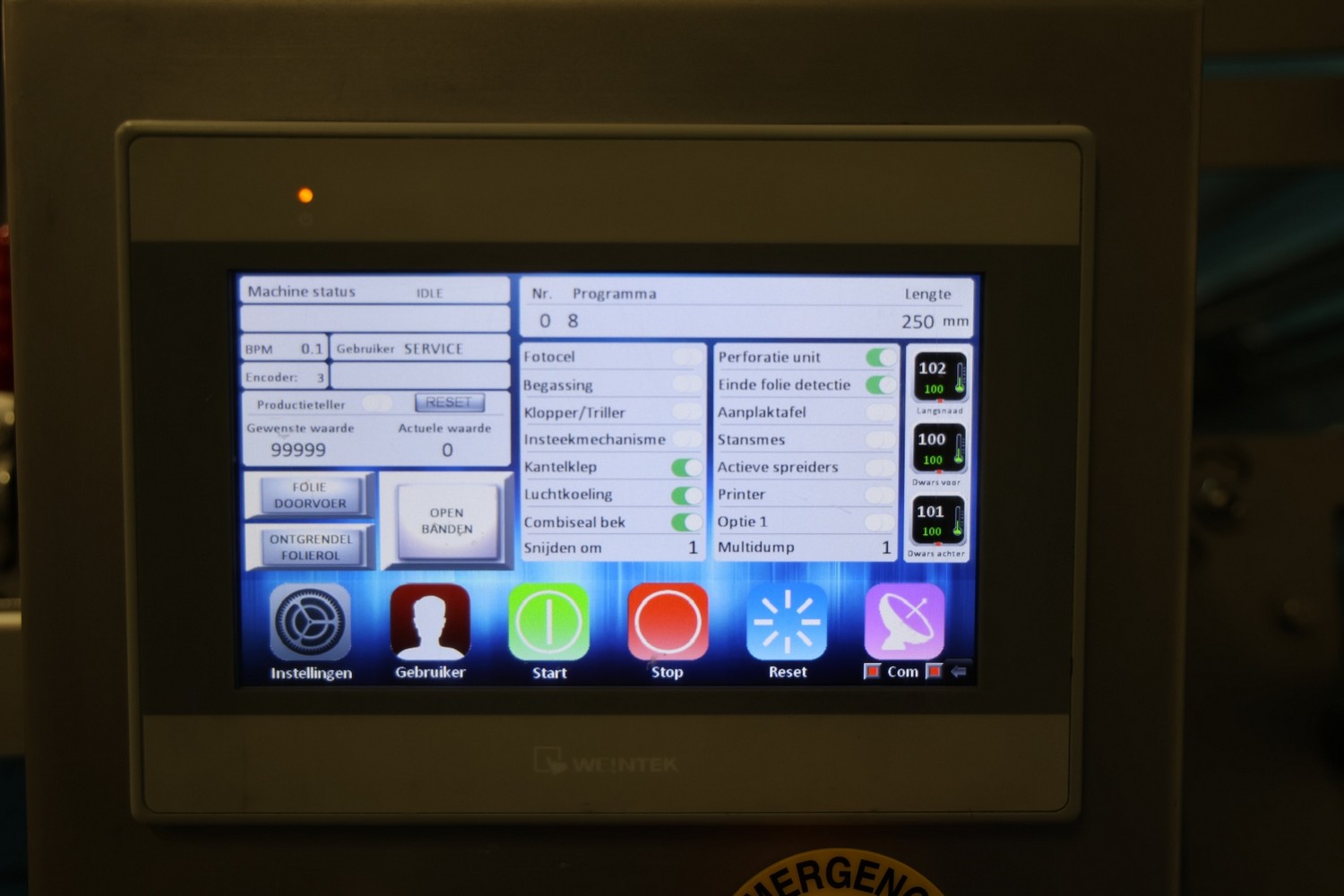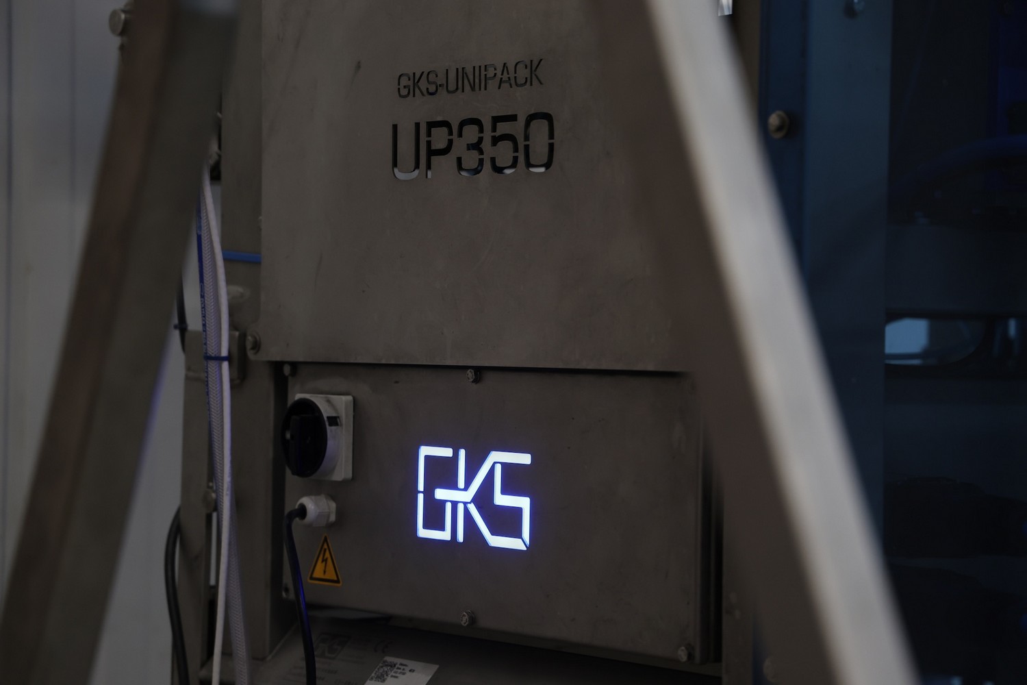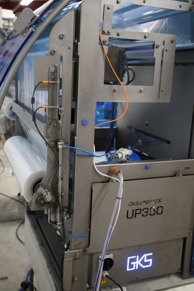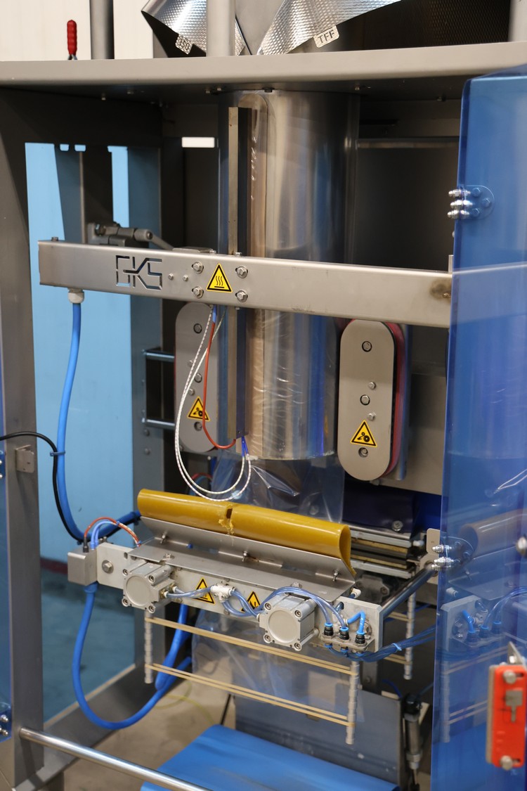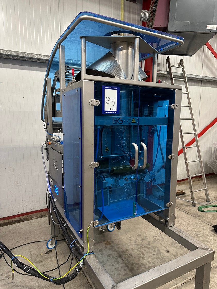 GKS Packaging mobile vertical form- fill- and seal machine, type: UP350HS, serial number: 04674, year of construction: 11-2015, diameter filling pipe: 200 mm, vertical seal length: 480 mm, horizontal seal length: 360 mm, total dimensions: 1550 mm x 930 mm x 2300 mm.