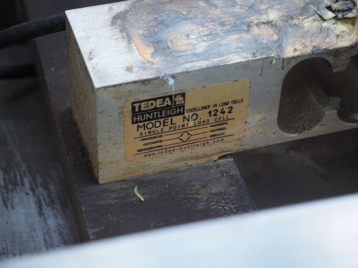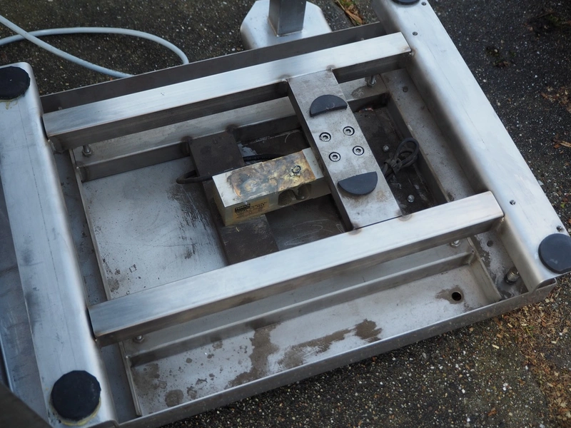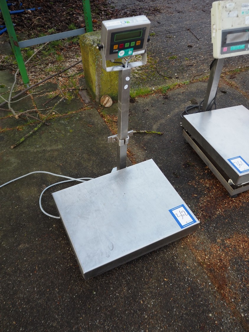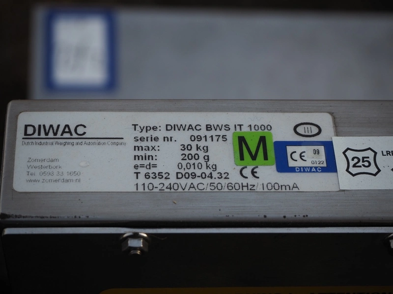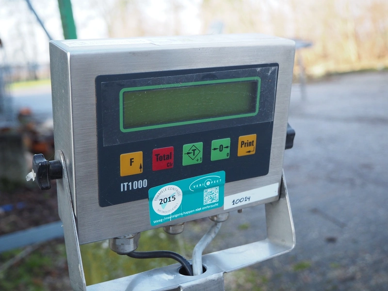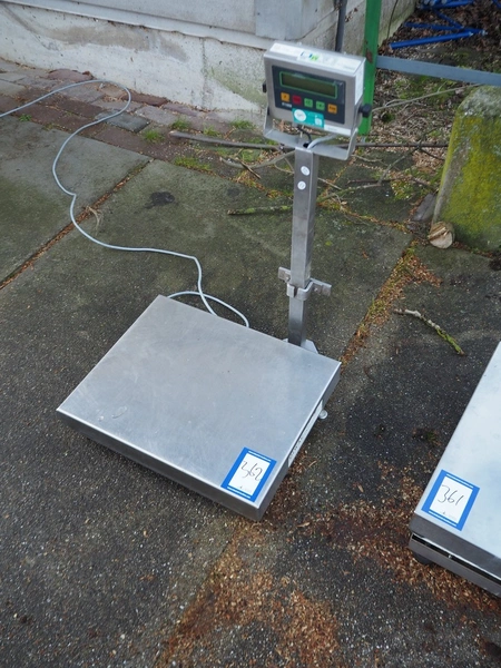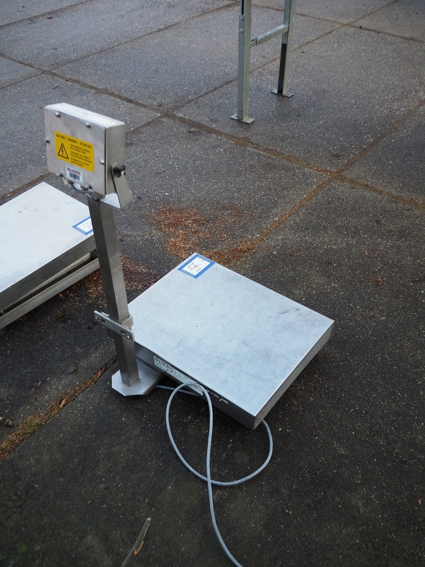 Diwac b.v. weighing scale and indicator, type: IT1000, serial number: 091175, 110-240 V, 50-60 Hz, 100 mA, with Tedea Huntleigh load cell, model: 1242, scale dimensions: 500 mm x 400 mm, total dimensions: 500 mm x 500 mm x 800 mm.