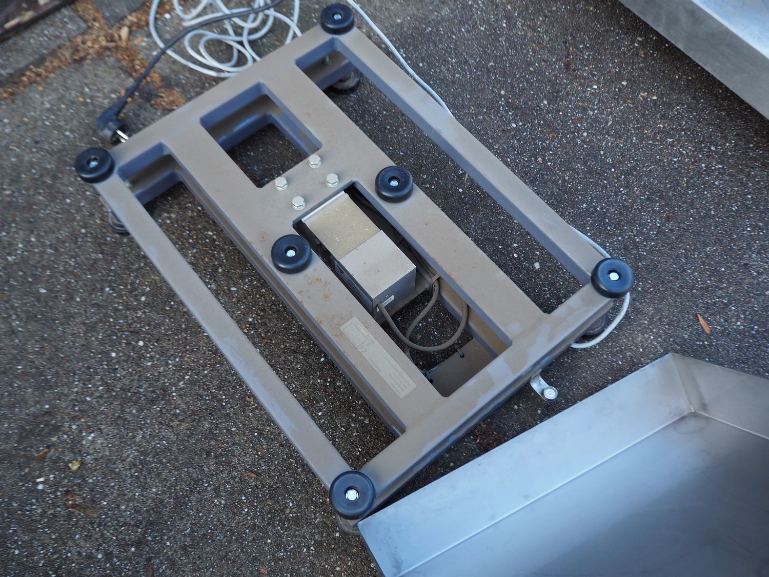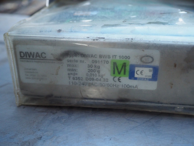 Ohaus weighing scale, model: D60BL, serial number: 1623184-6CK, capacity: 60 kg / 150 lb, Diwac indicator, type: Diwac BWS IT 1000, serial number: 091170, weighing range: 200 g - 30 kg, 110-240 V, 50-60 Hz, 100 mA, with Teda Huntleigh load cell, model: 1260, dimensions: 550 mm x 420 mm x 130 mm.