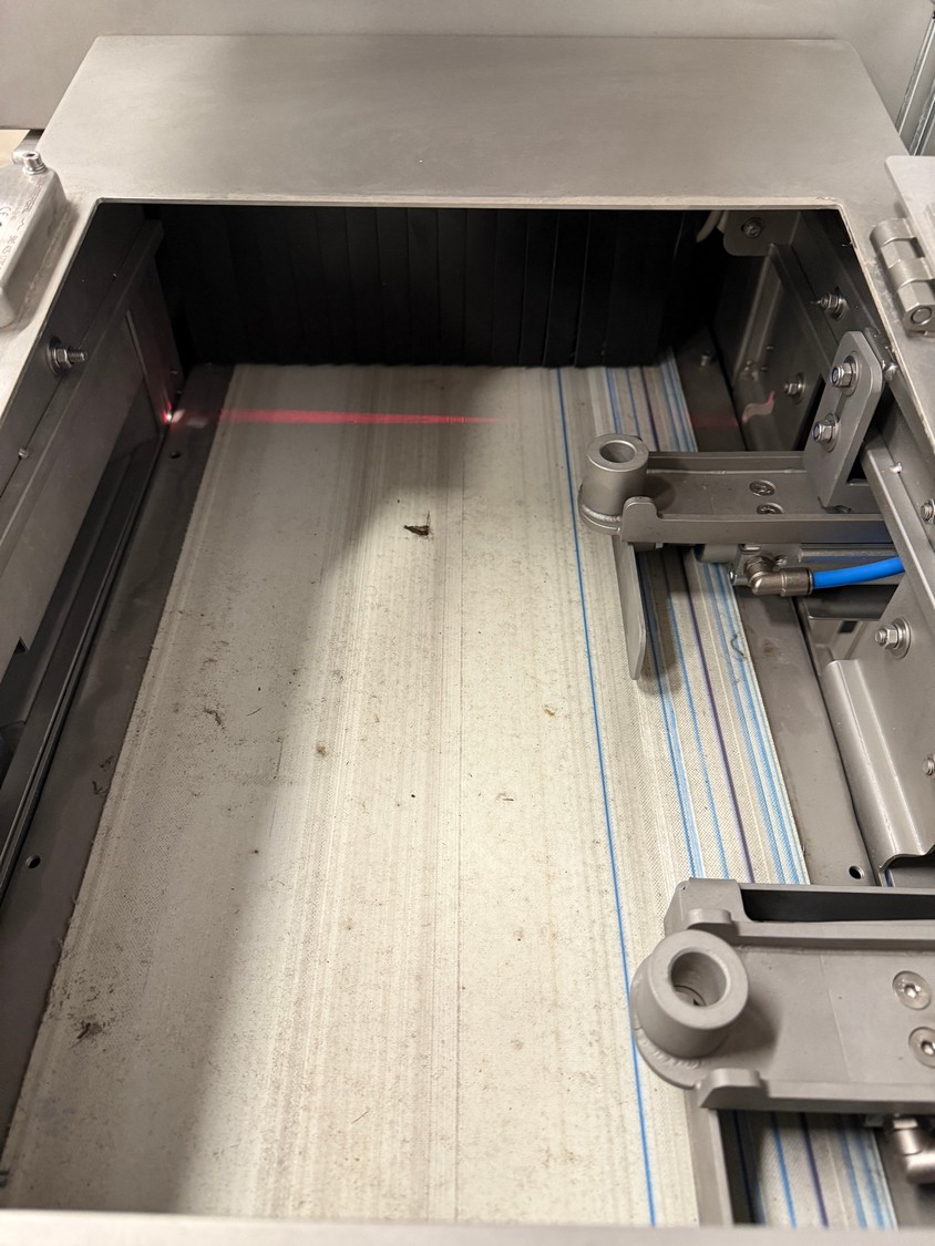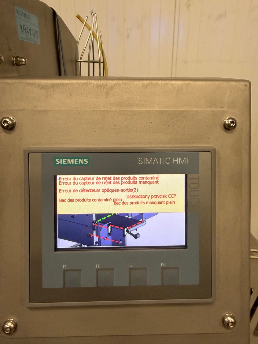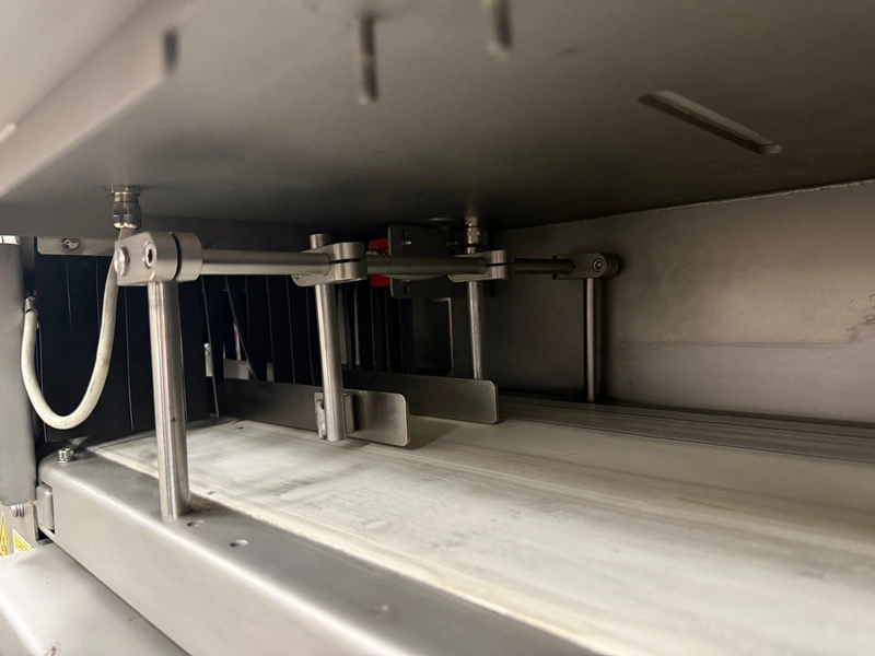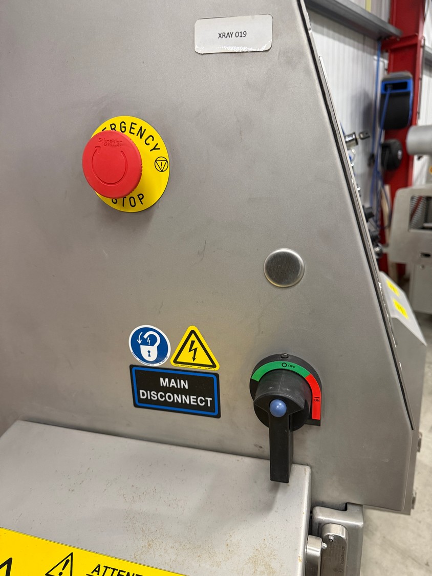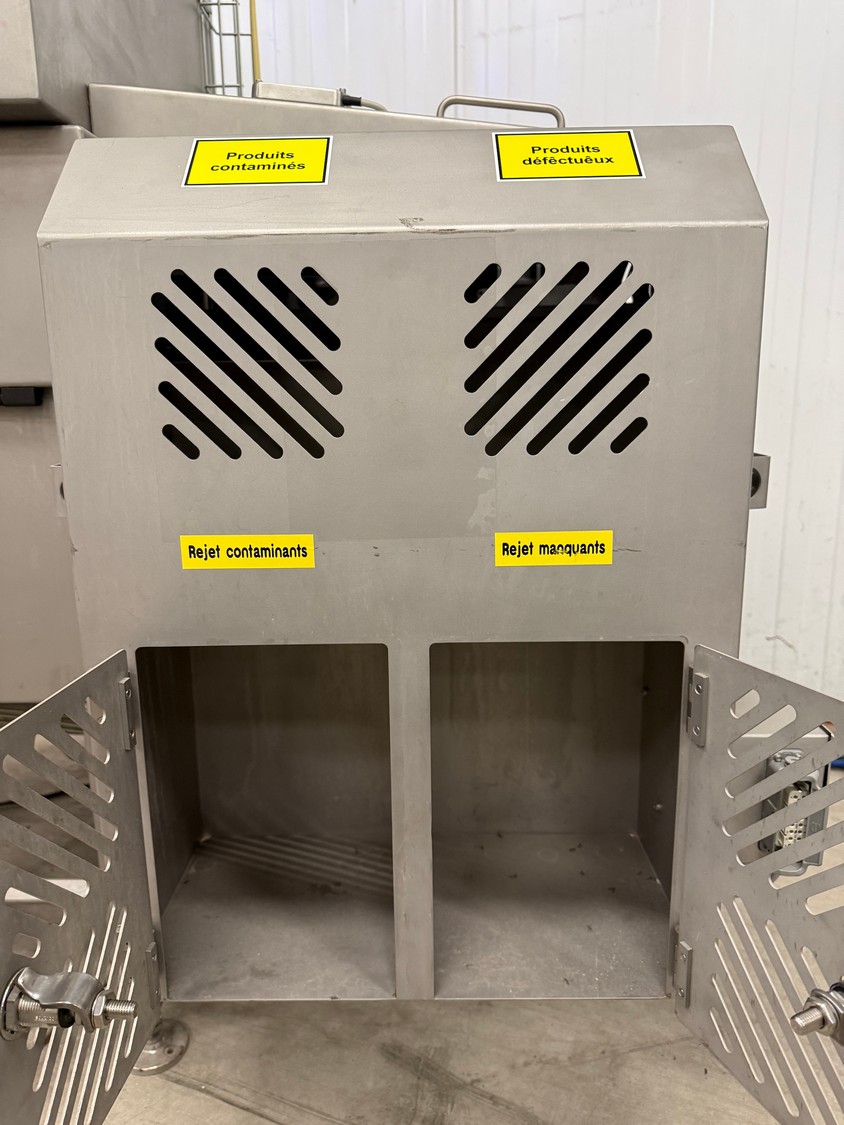 Mclean x-ray scanner with rejector, model: CR29-0426-G084, serial number: 11009048-10, 230 V, 1 Ph, 50-60 Hz, plastic belt, belt width: 300 mm, total dimensions: 1600 mm x 1000 mm x 2000 mm.
