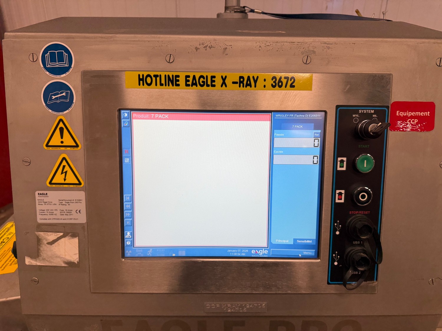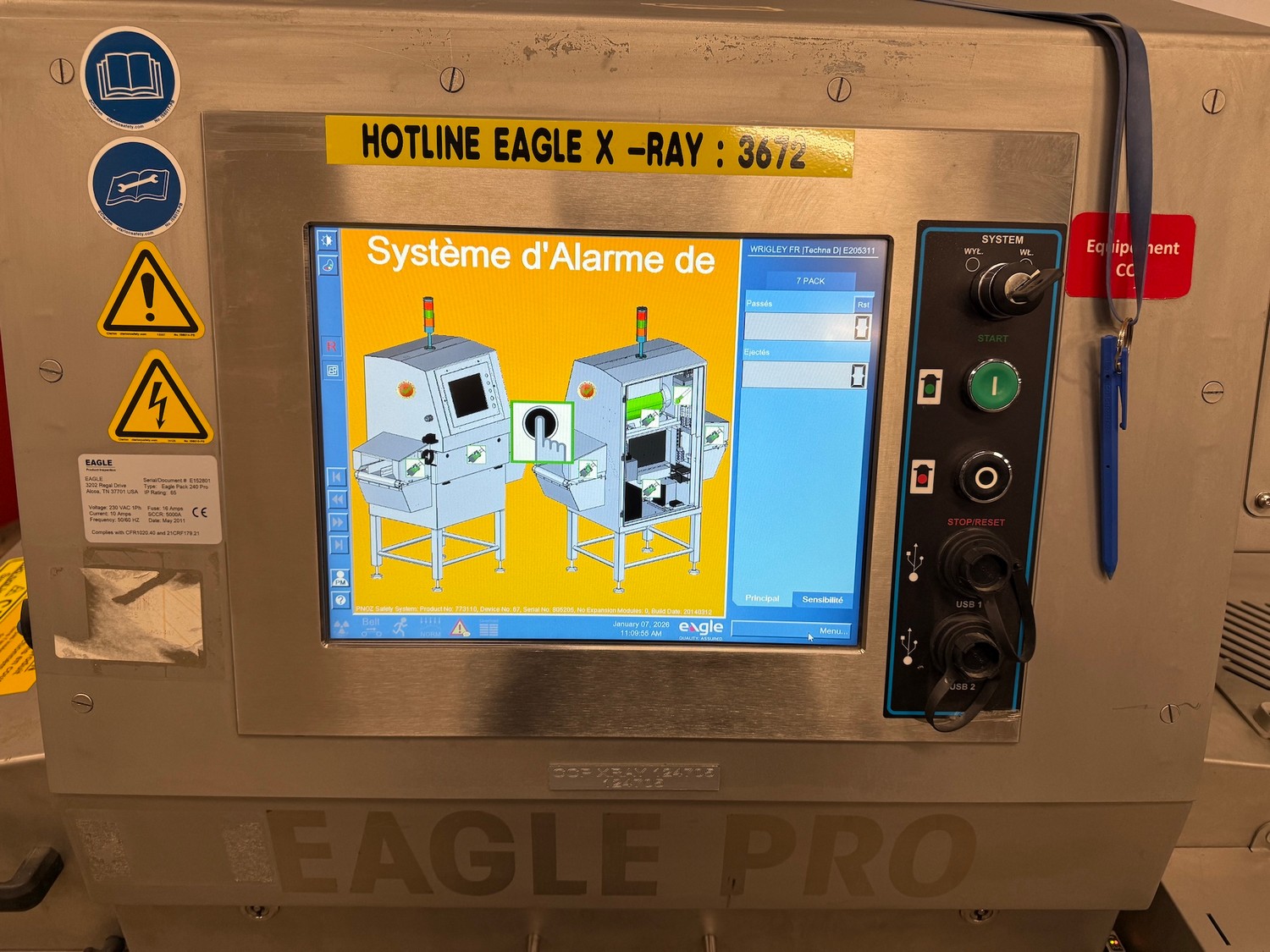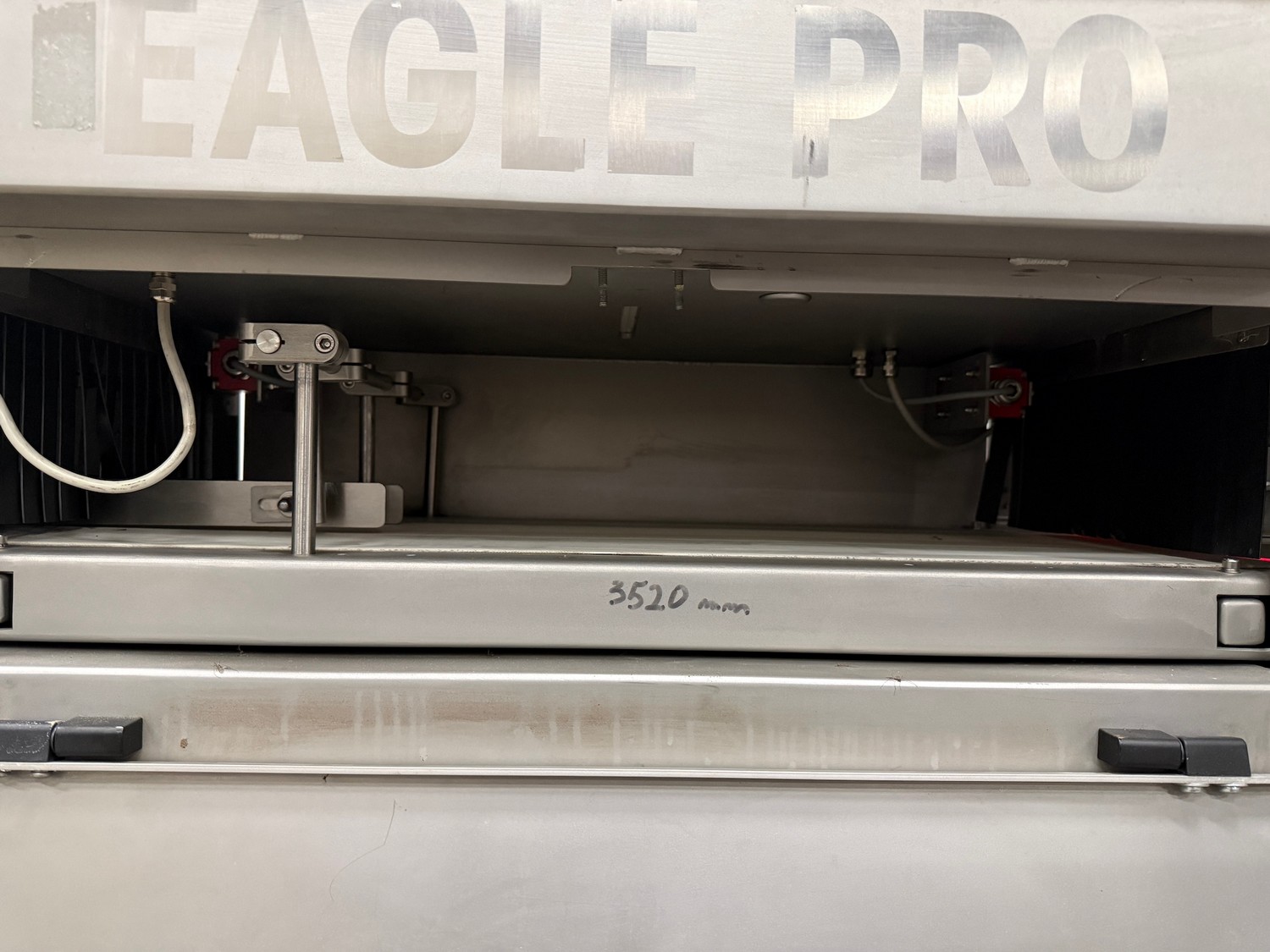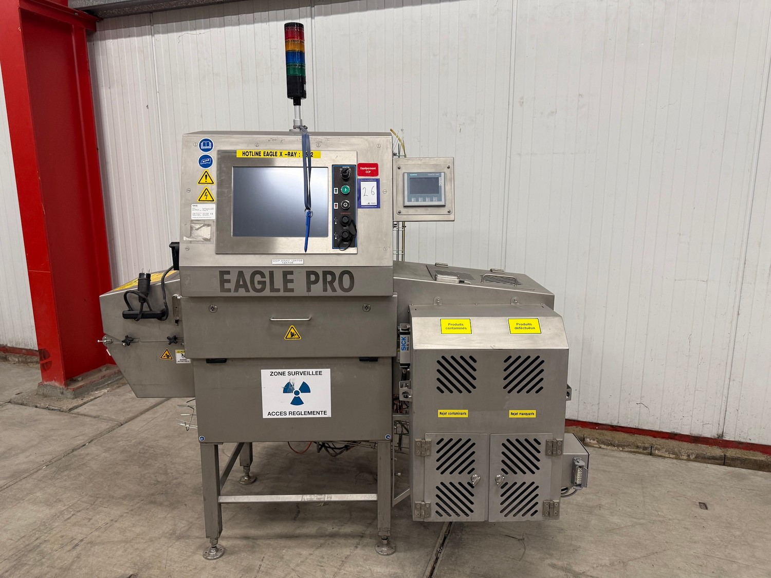 Mclean x-ray scanner with rejector, model: CR29-0426-G084, serial number: 11009048-10, 230 V, 1 Ph, 50-60 Hz, plastic belt, belt width: 300 mm, total dimensions: 1600 mm x 1000 mm x 2000 mm.