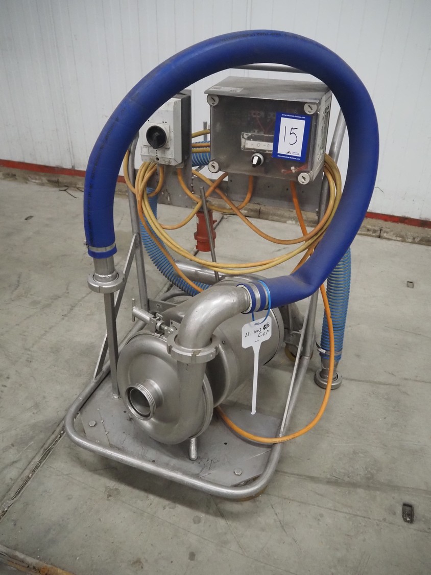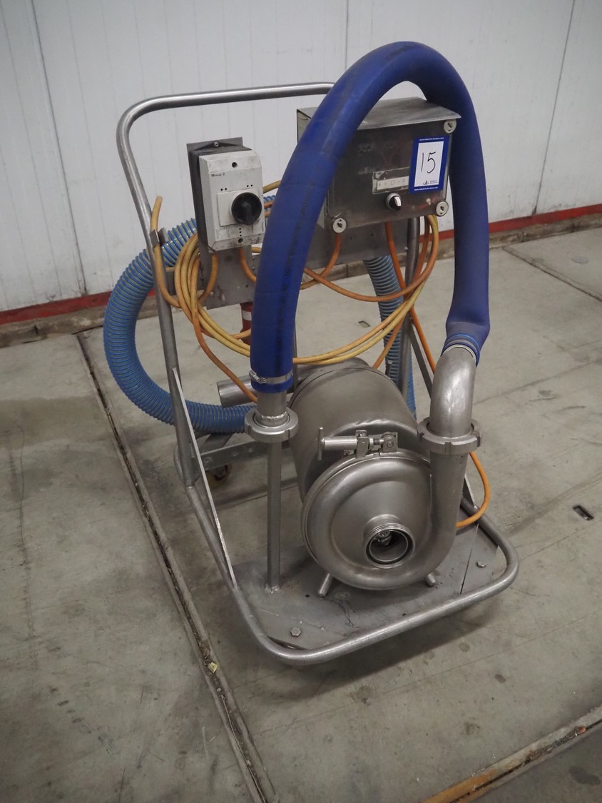 Centrifugal pump on s/s trolley, dimensions: 600 mm x 850 mm x 960 mm.