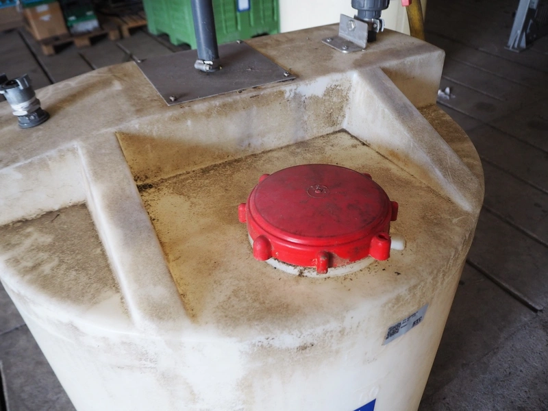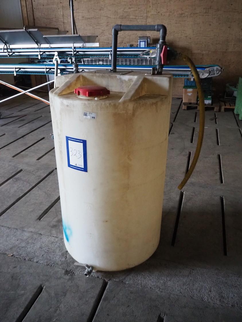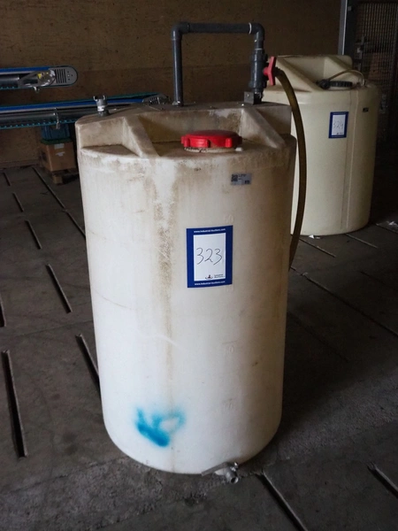 Plastic tank, volume: 500 liter, dimensions: Ø 770 mm x 1600 mm.